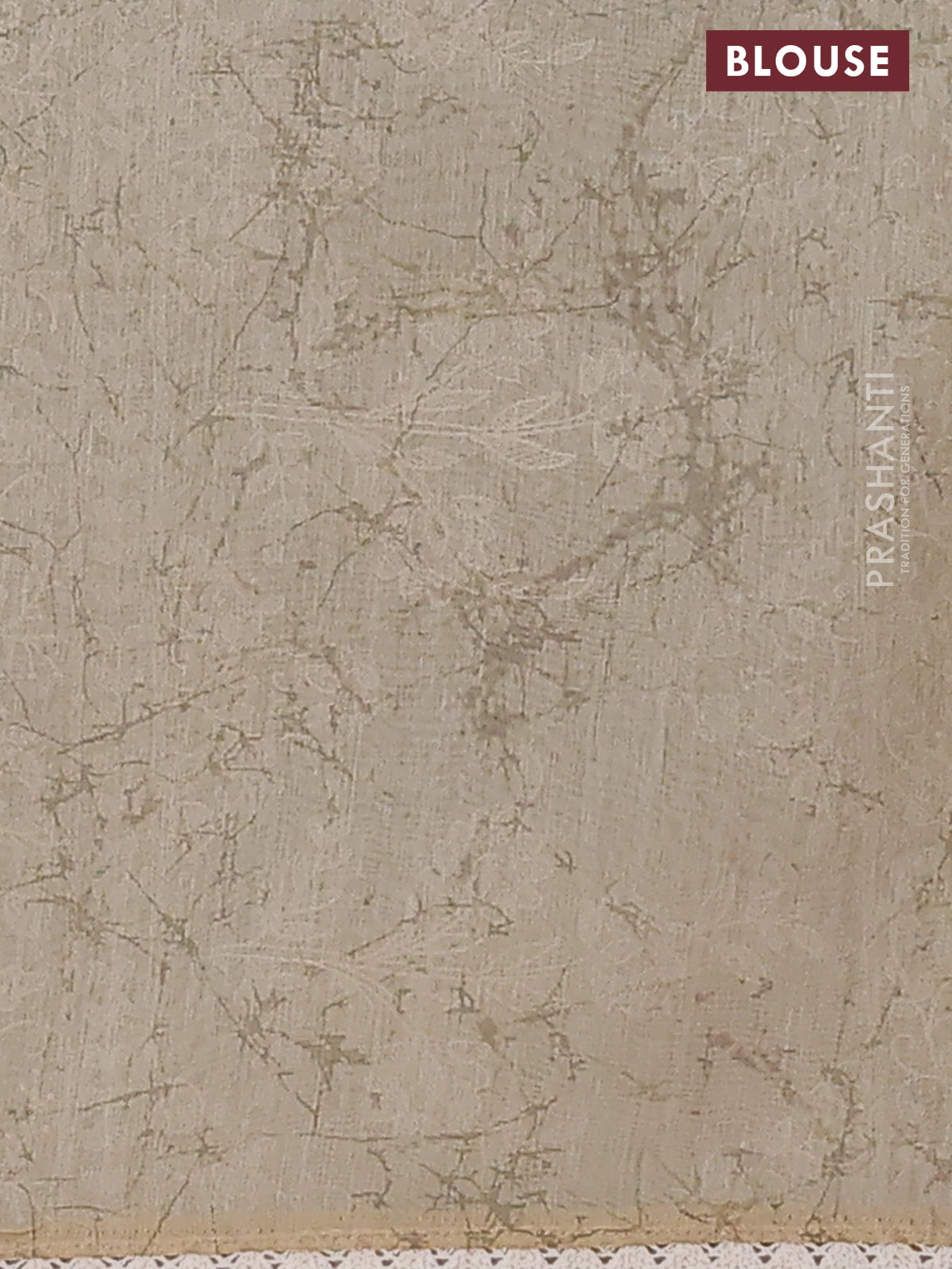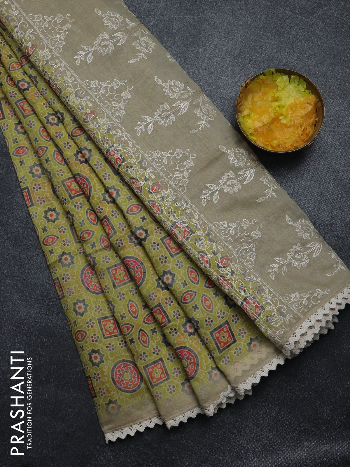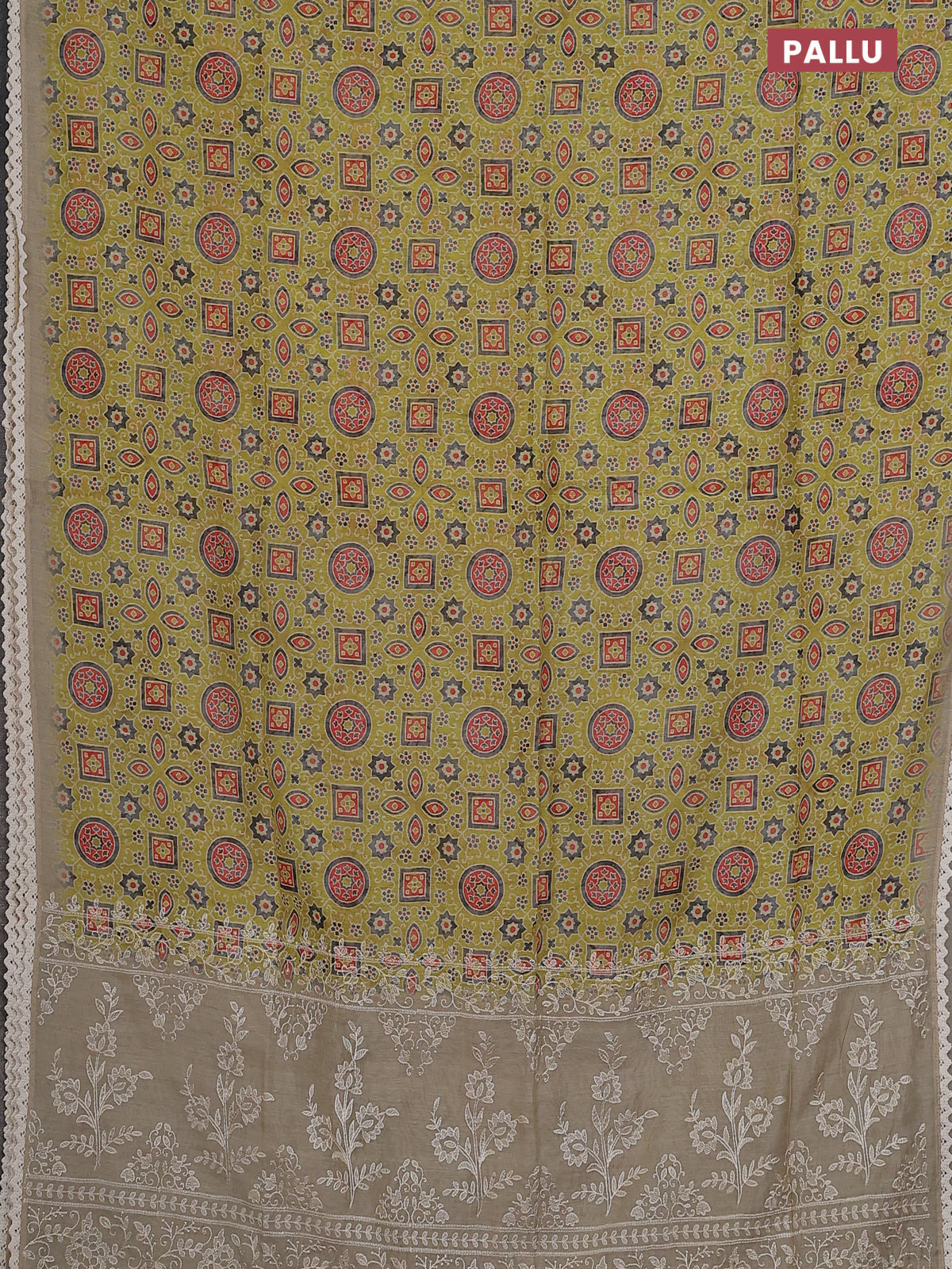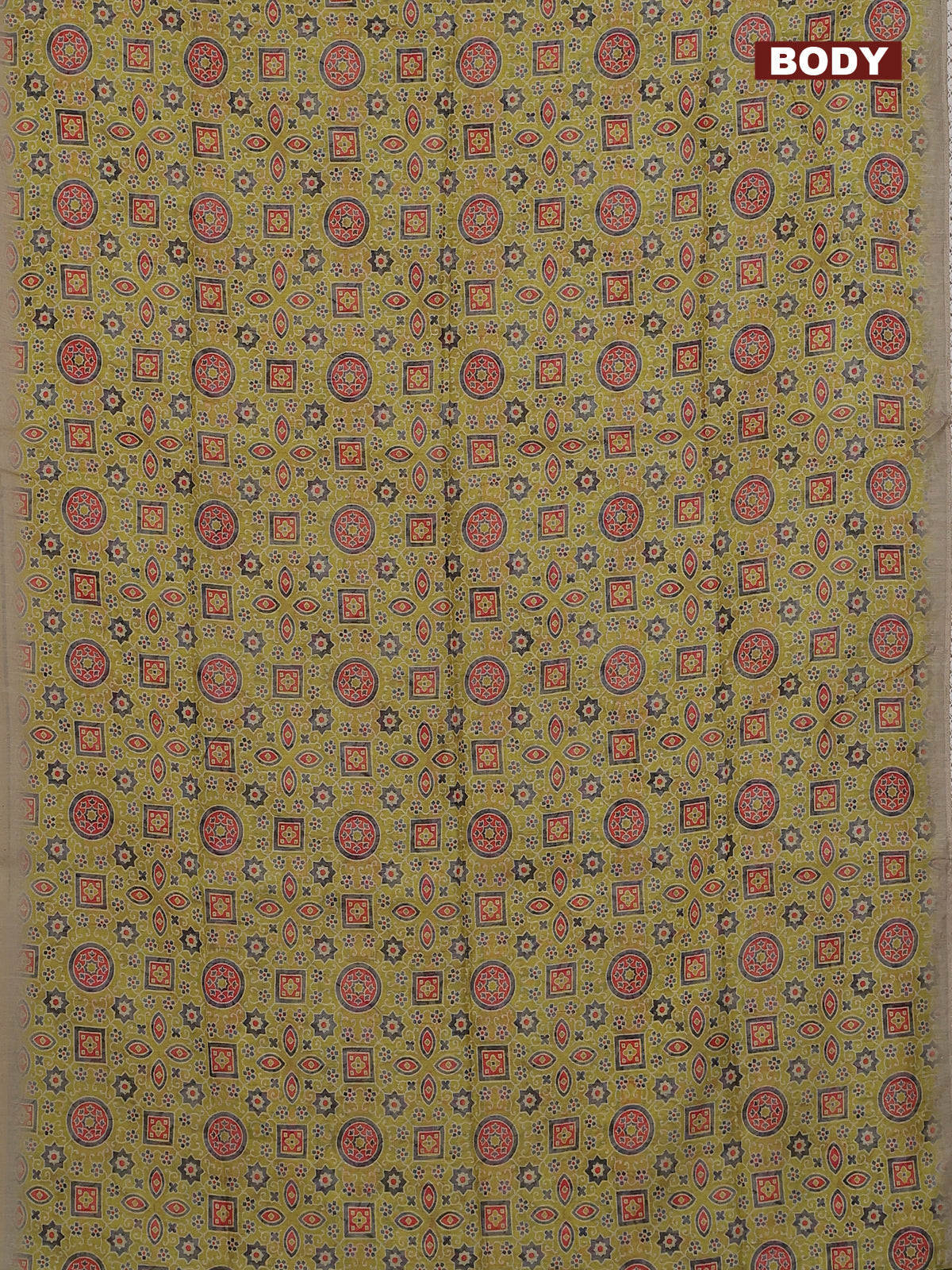 Semi chanderi saree lime green and beige with allover ajrakh prints and embroidery pallu