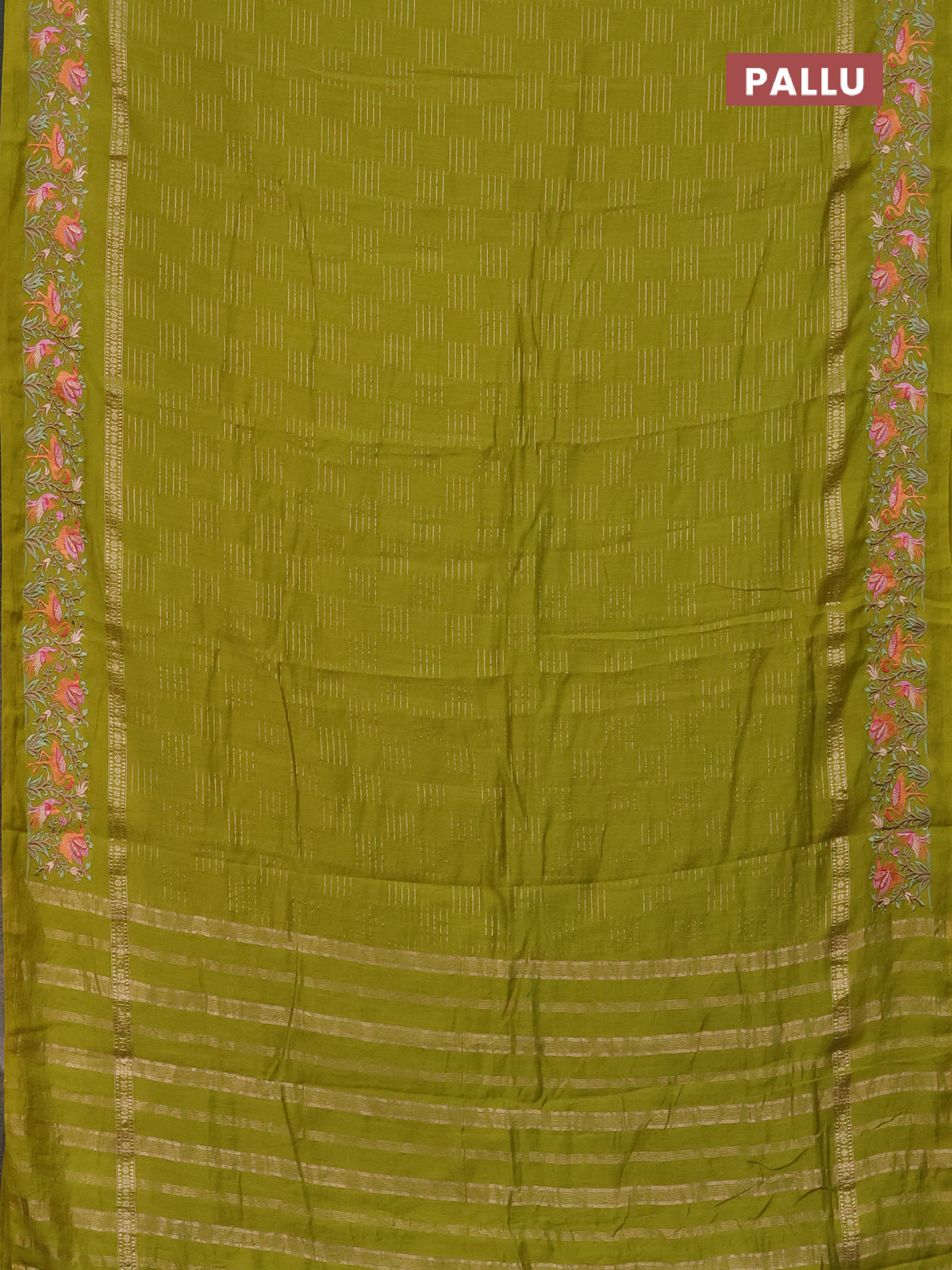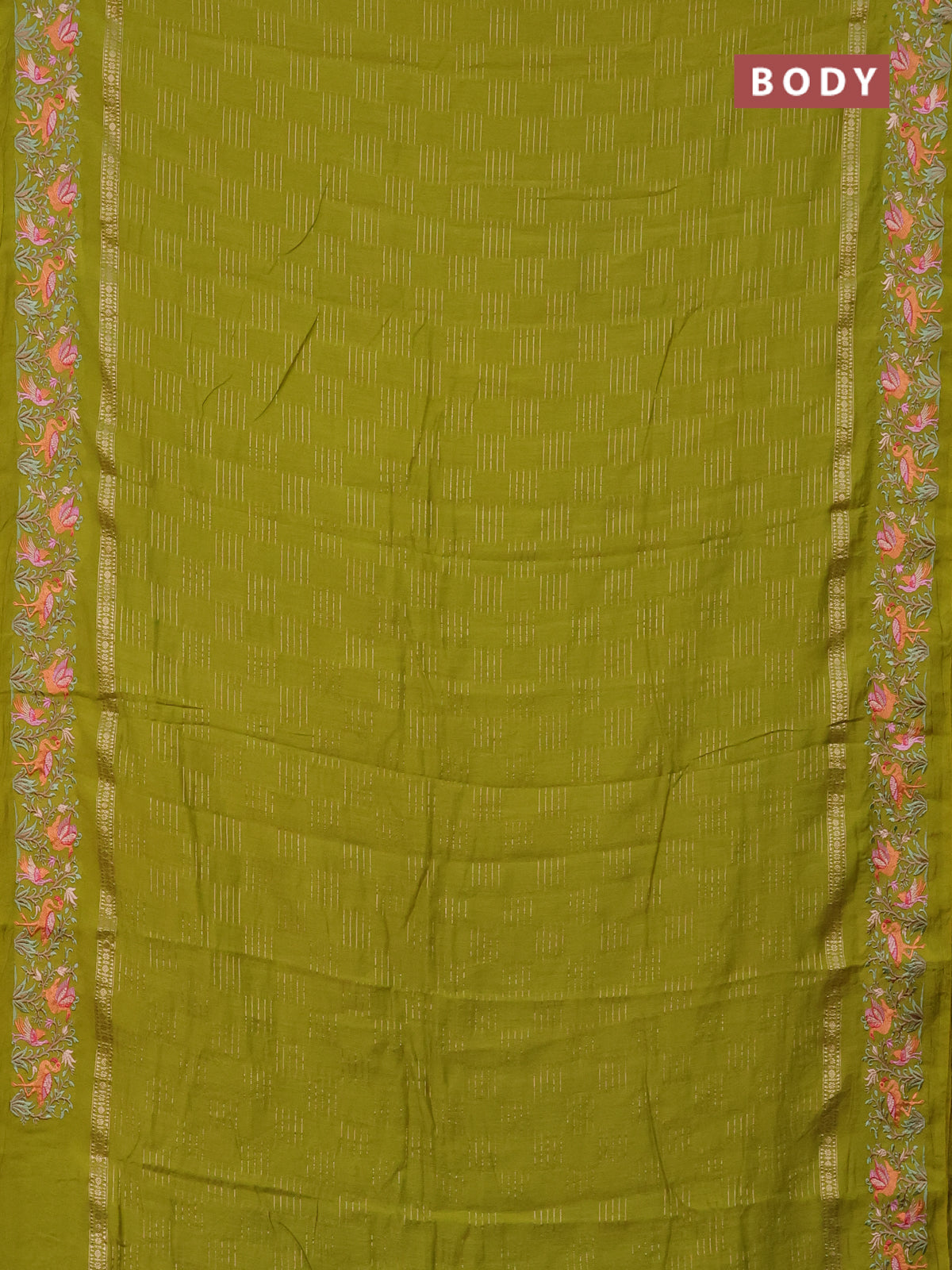 Semi chanderi saree lime green with allover zari weaves and embroidery border