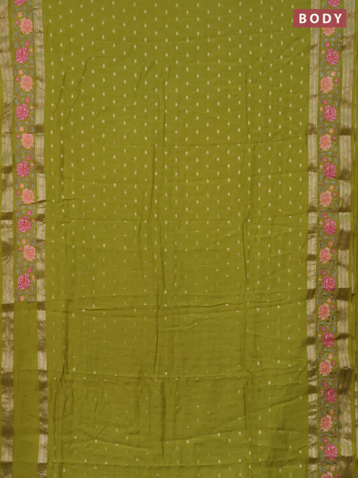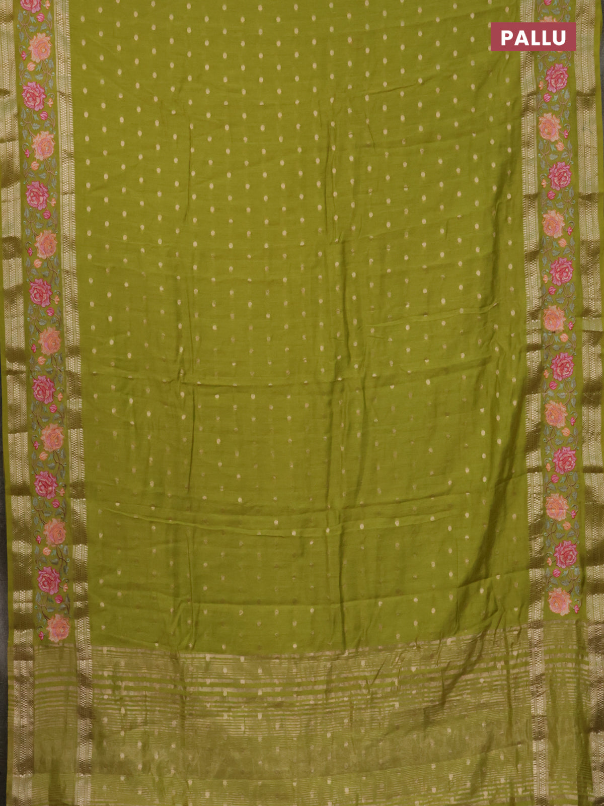 Semi chanderi saree lime green with allover zari woven buttas and floral embroidery border