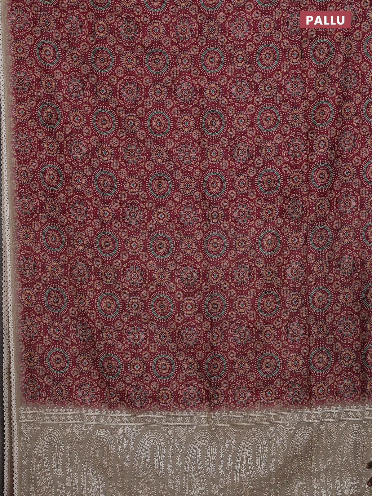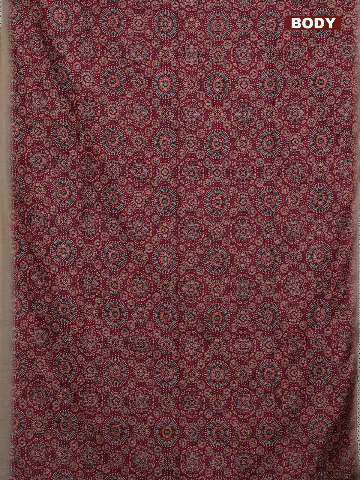 Semi chanderi saree maroon and beige with allover ajrakh prints and embroidery pallu