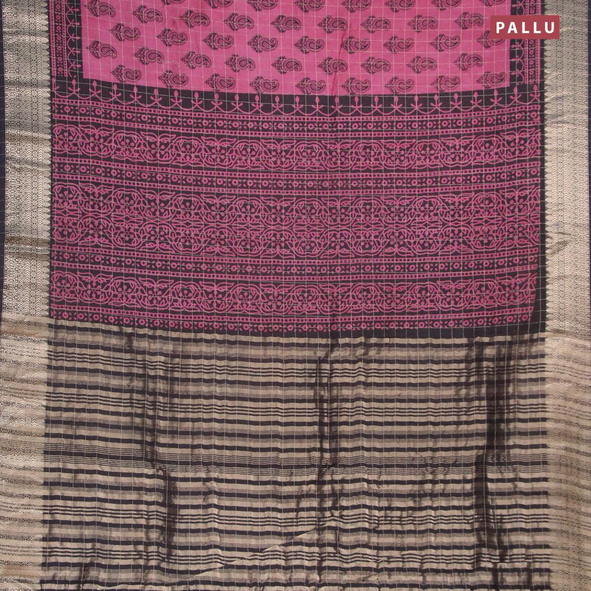 Semi chanderi saree maroon shade and black with allover paisley prints & zari checked pattern and zari woven border