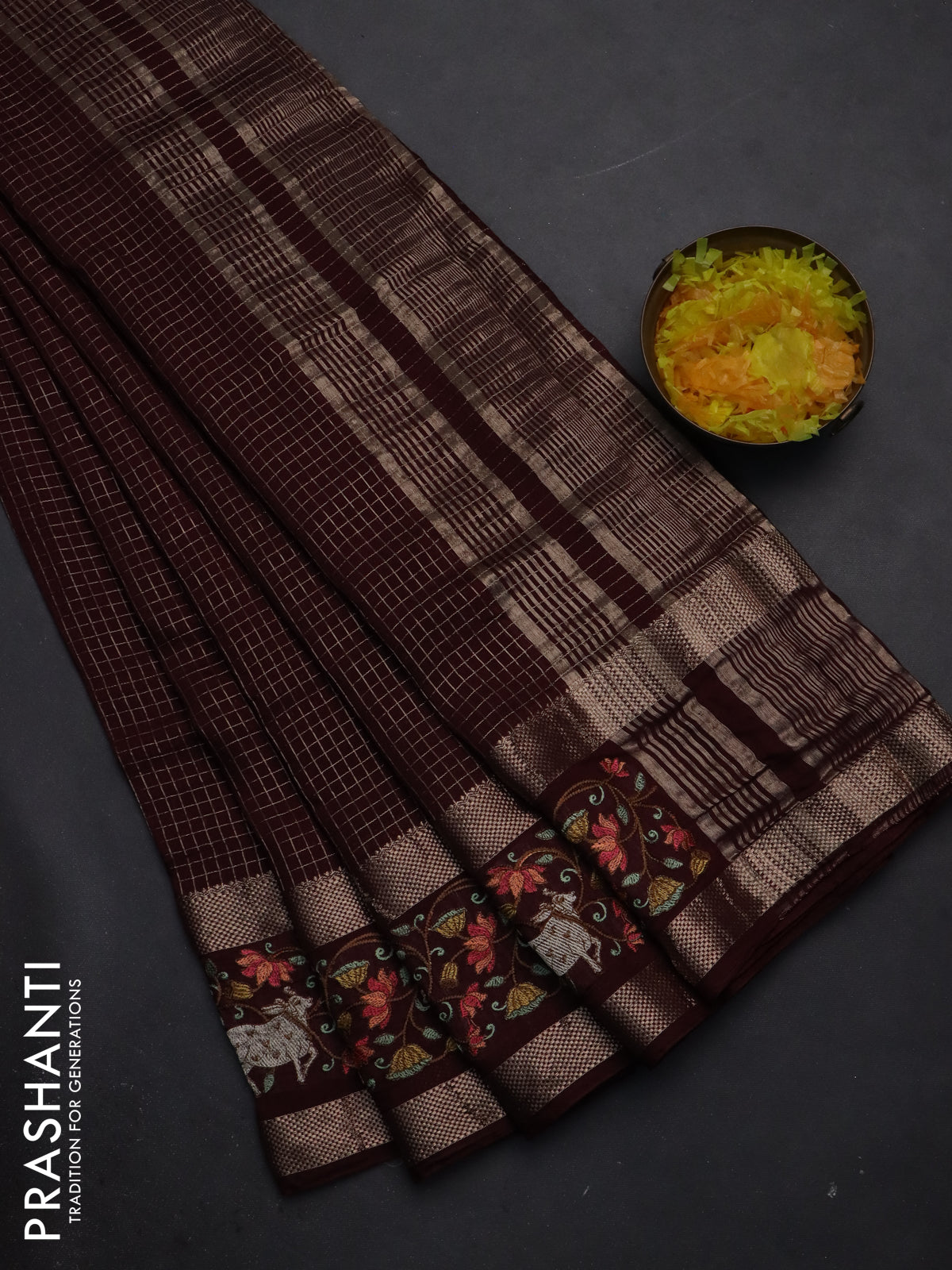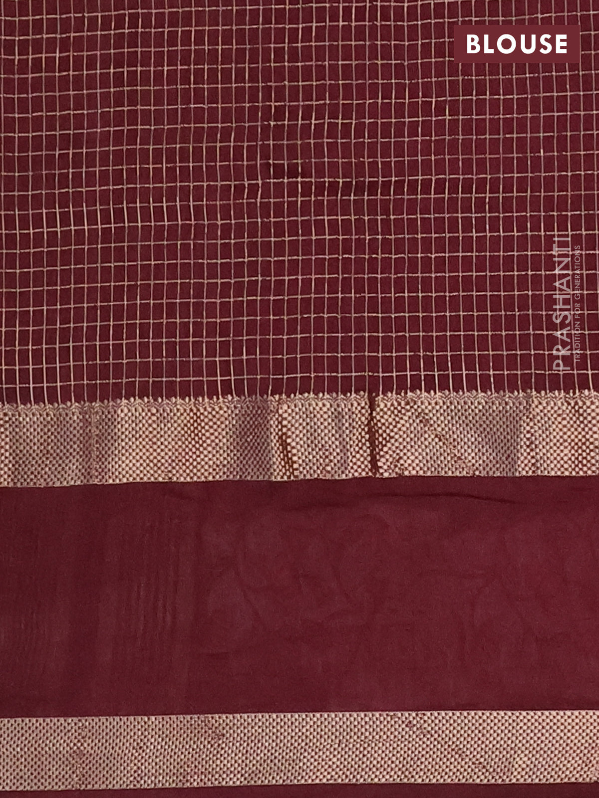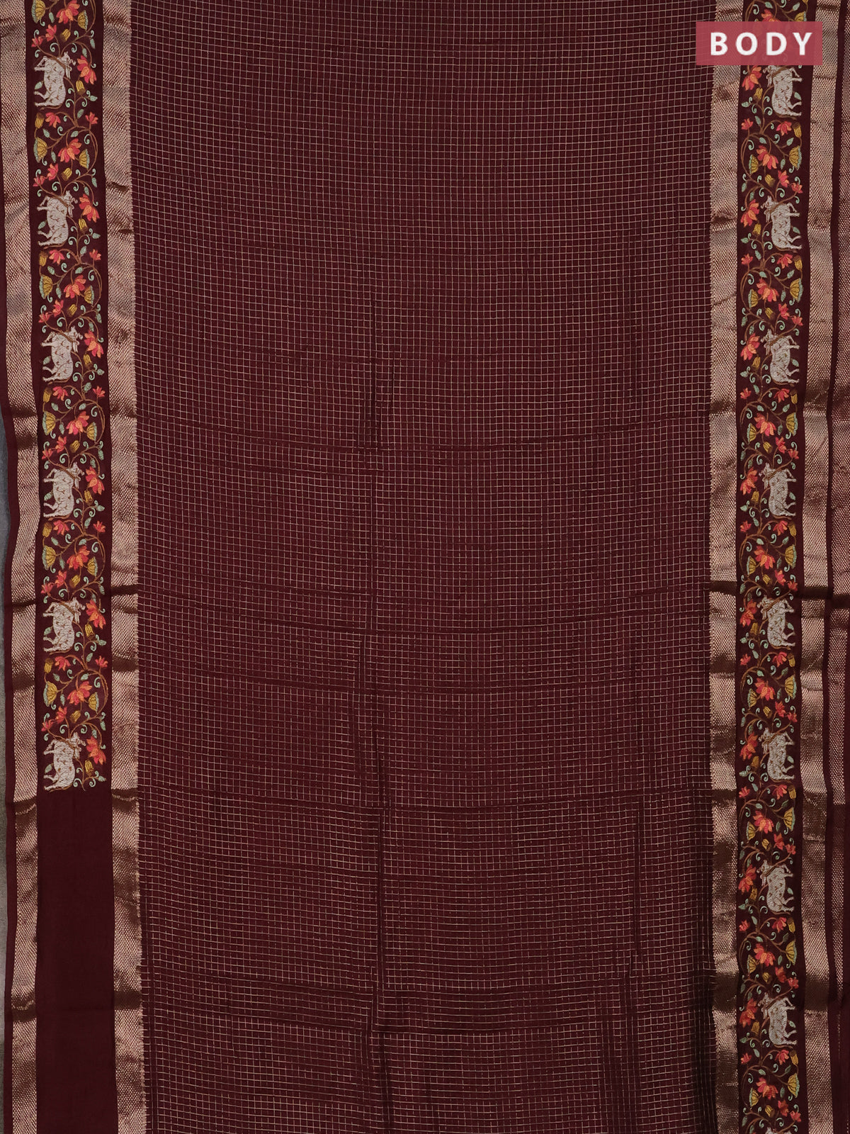 Semi chanderi saree maroon with allover zari checked pattern and pichwai embroidery border