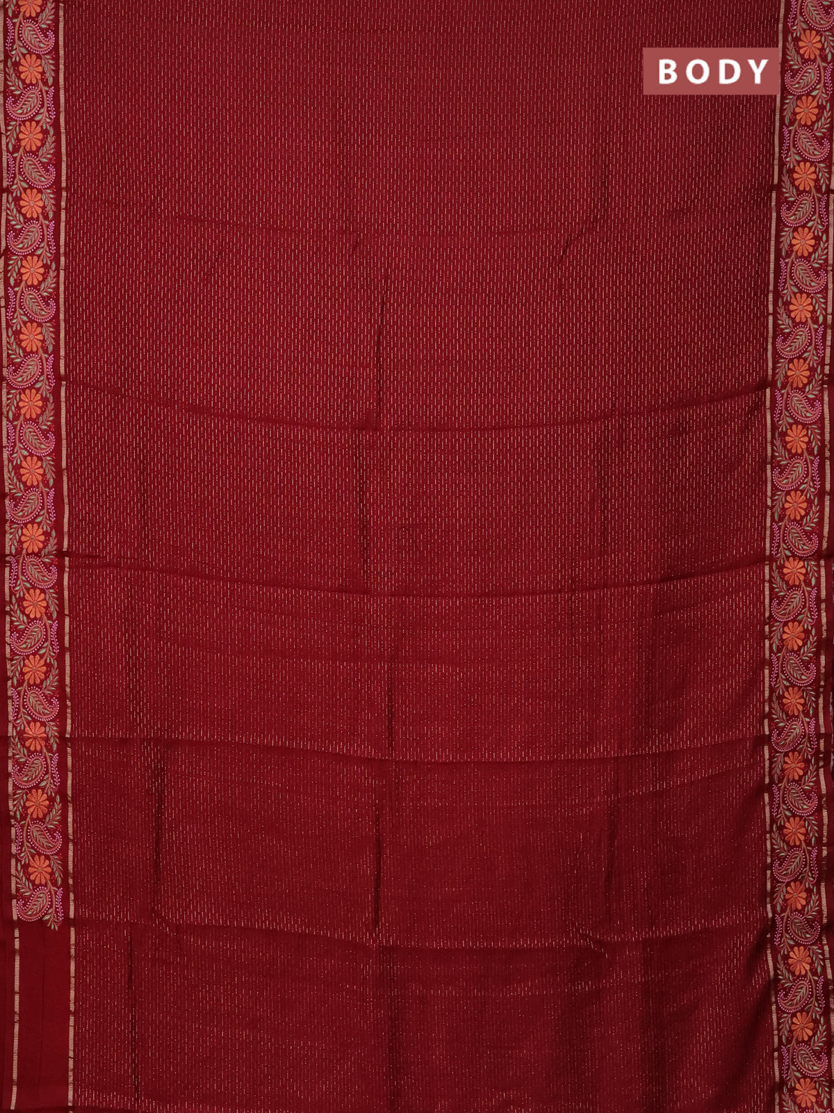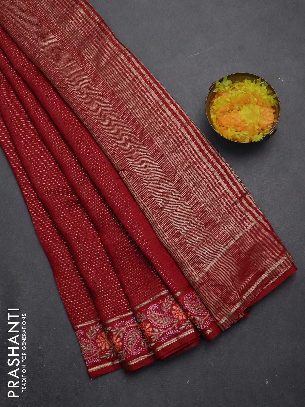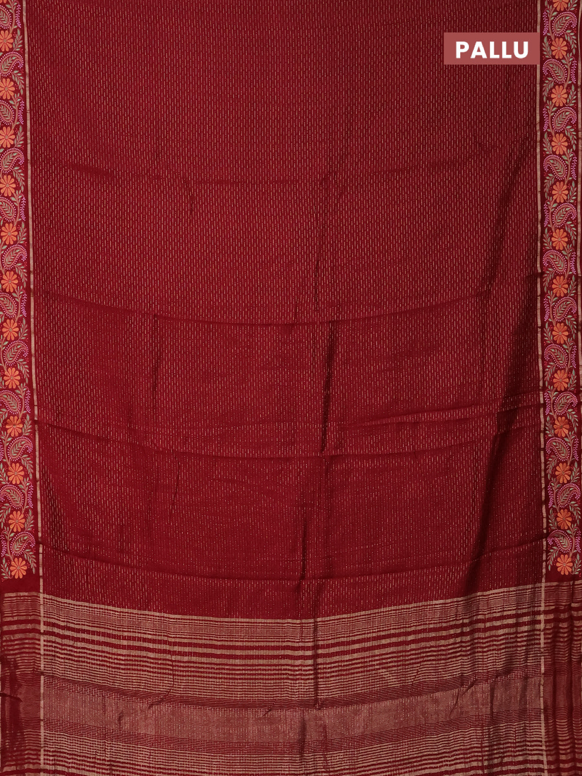 Semi chanderi saree maroon with allover zari woven stripes pattern and embroidery border