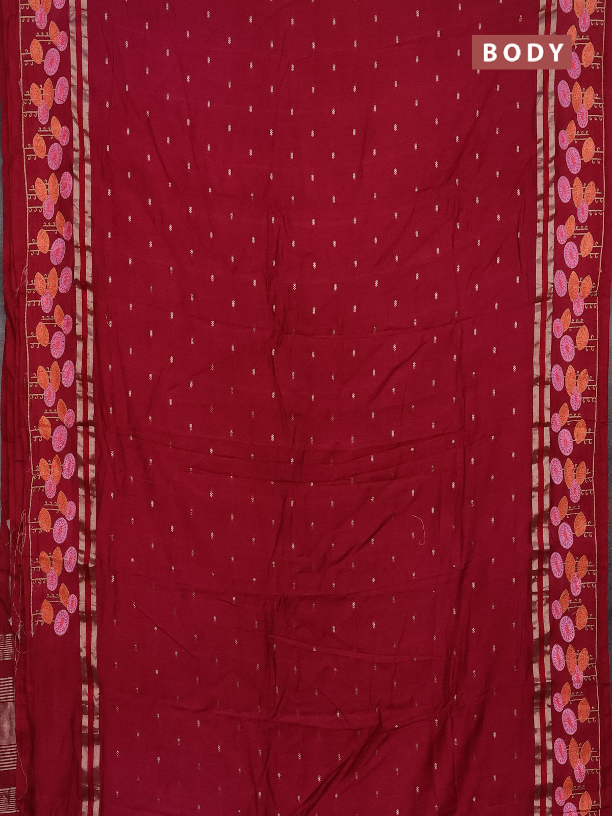Semi chanderi saree Maroon with zari buttas and embroidery border