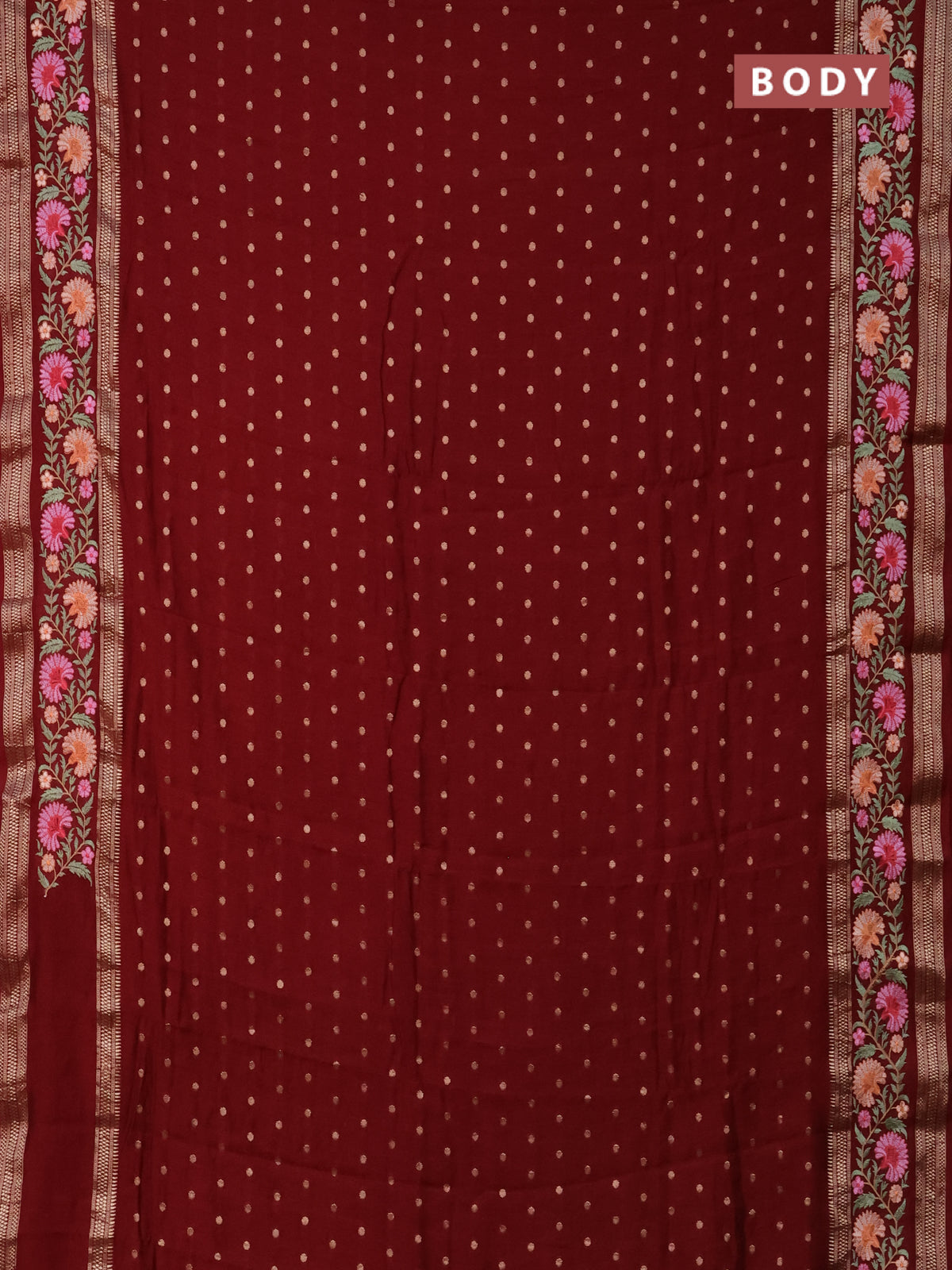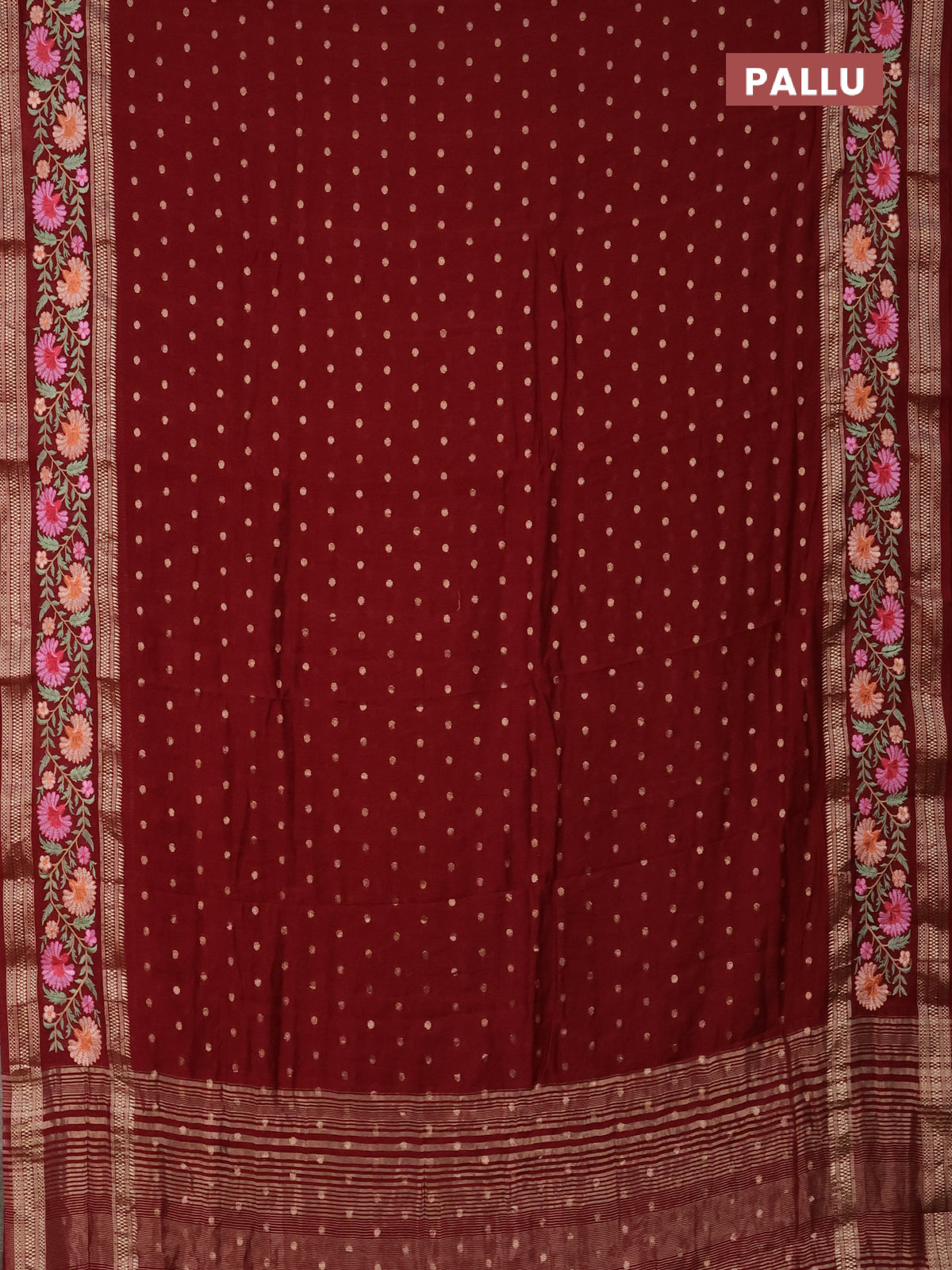 Semi chanderi saree maroon with zari woven buttas and floral embroidery border