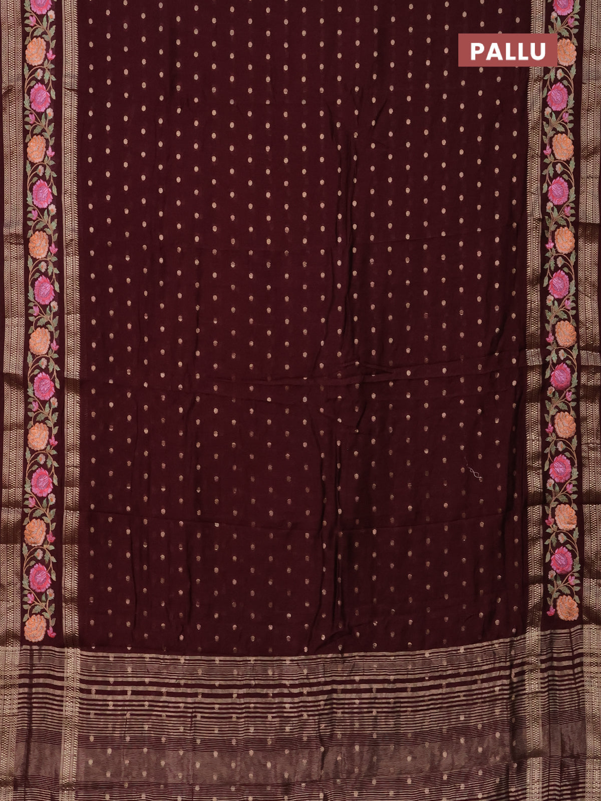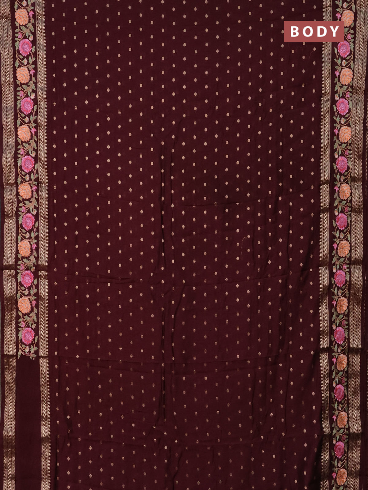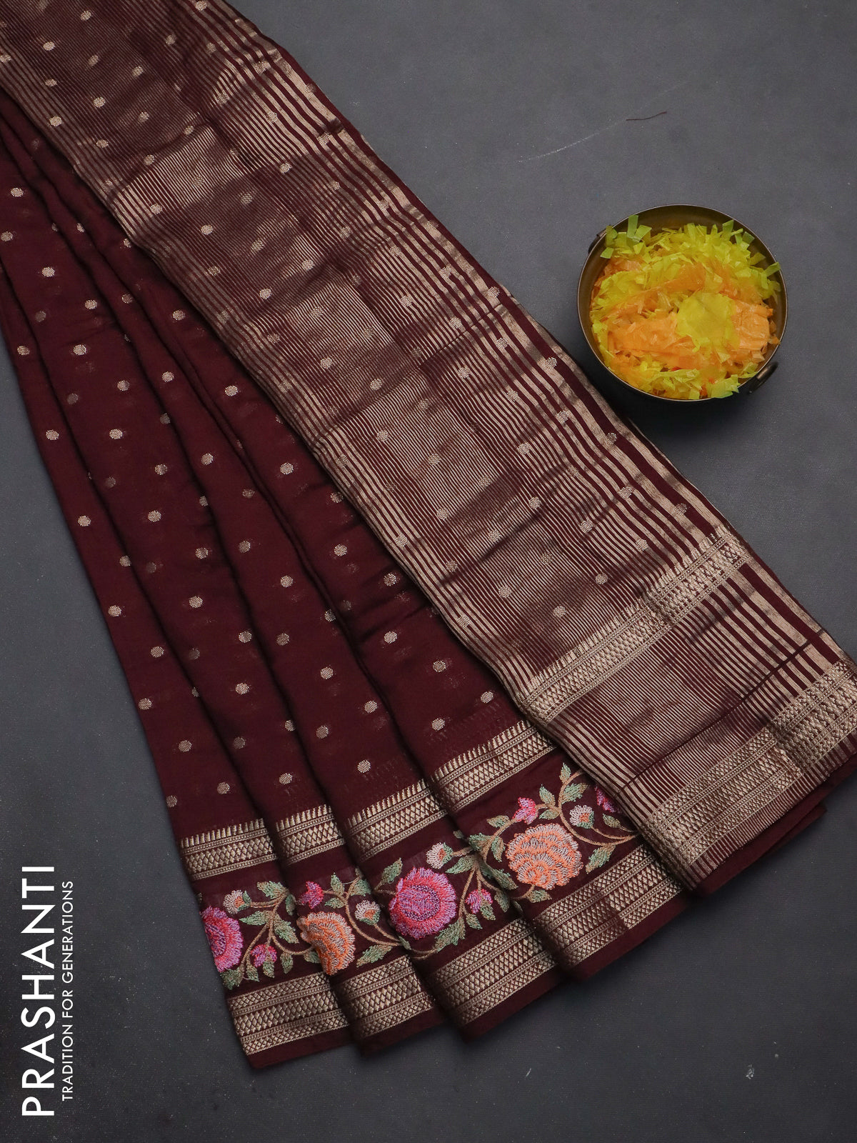 Semi chanderi saree maroon with zari woven buttas and floral embroidery border