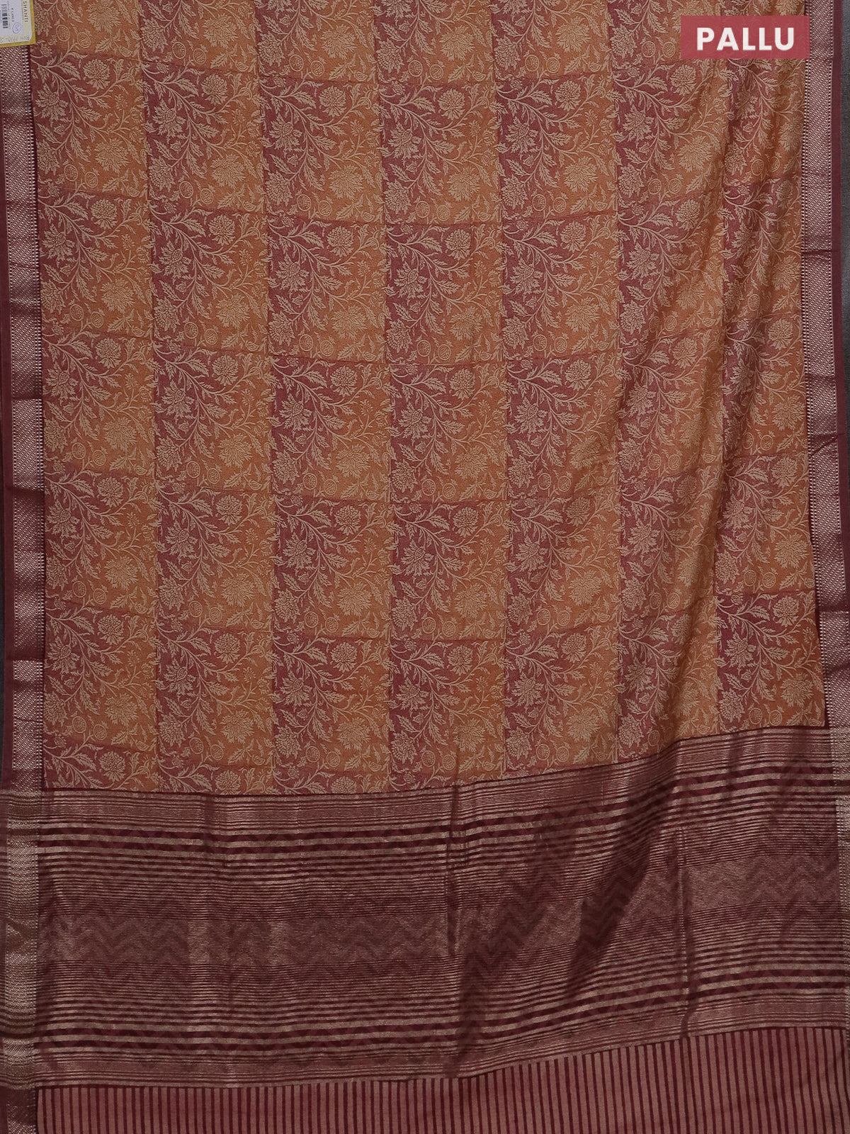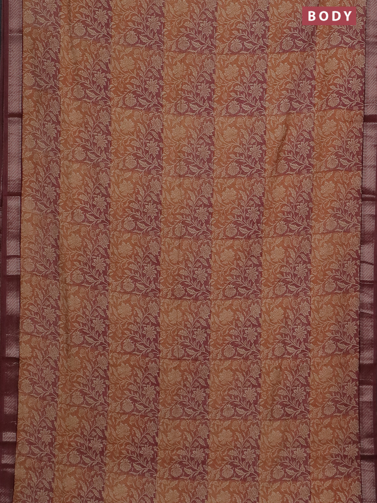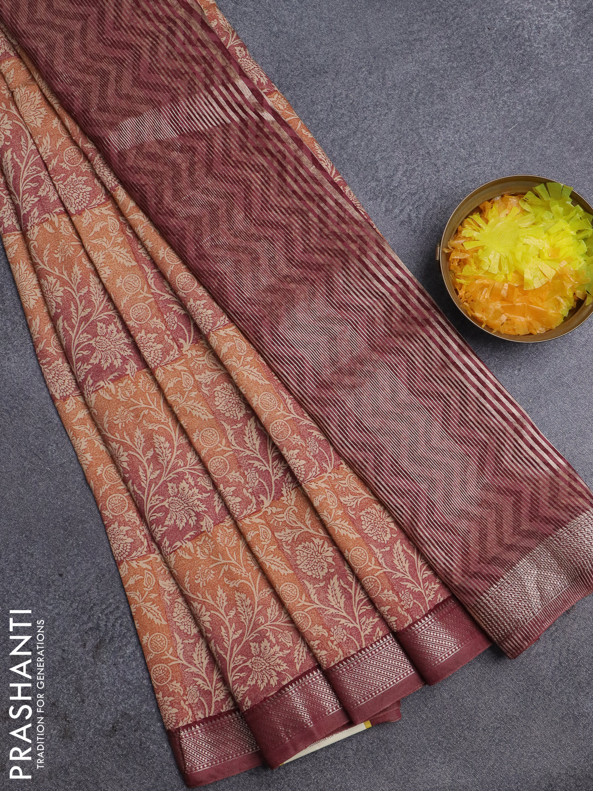 Semi chanderi saree pale orange and maroon with allover kalamkari prints and zari woven border