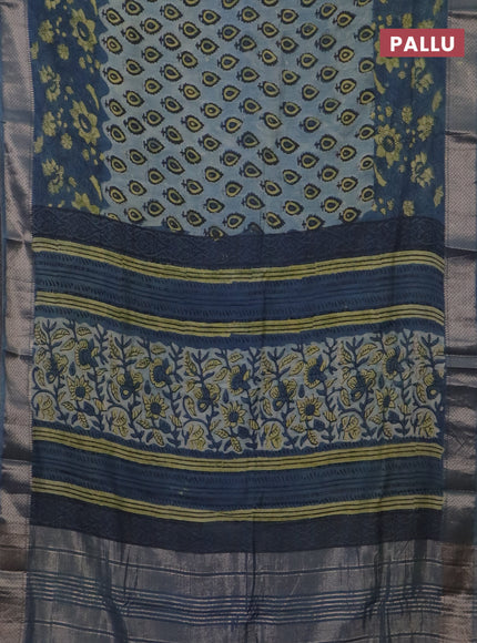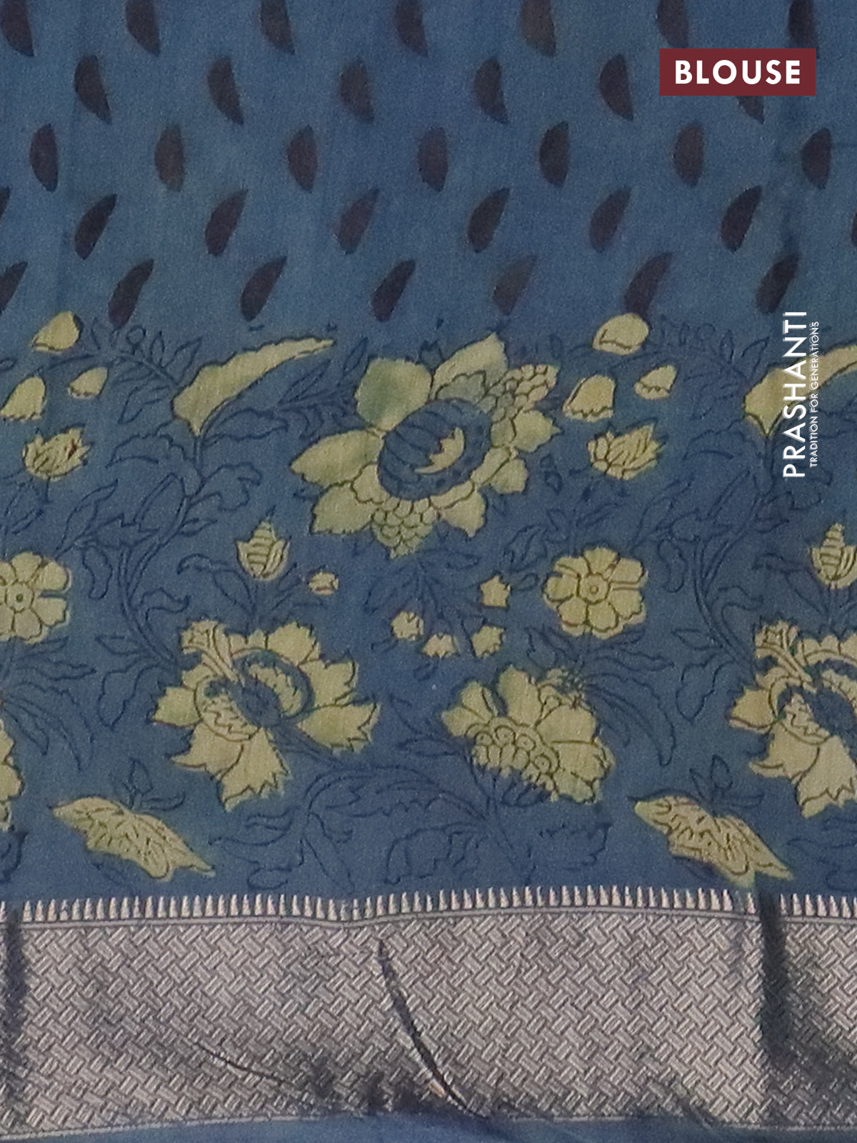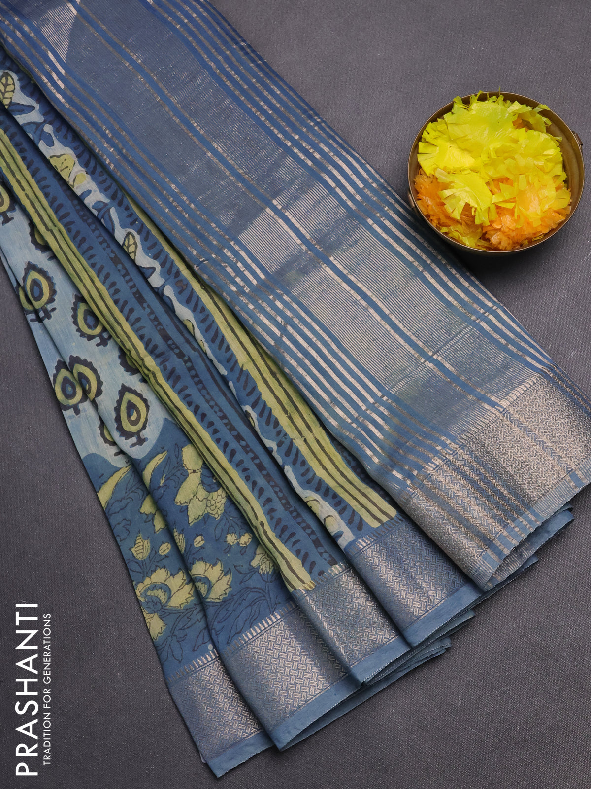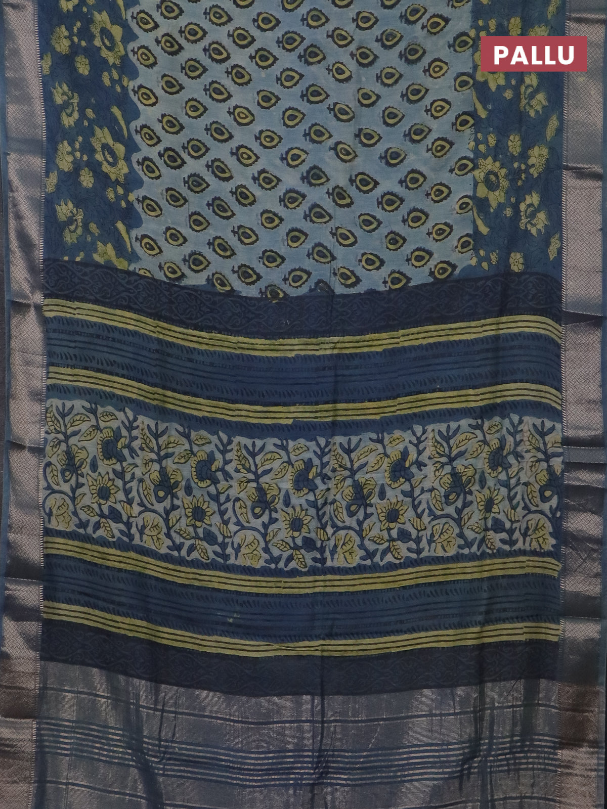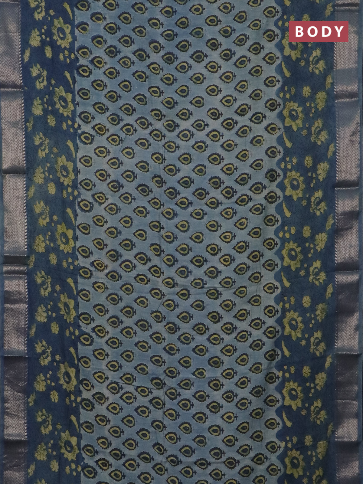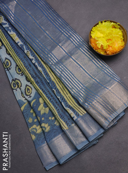 Semi chanderi saree pastel blue and blue shade with allover vanaspathi prints and zari woven border