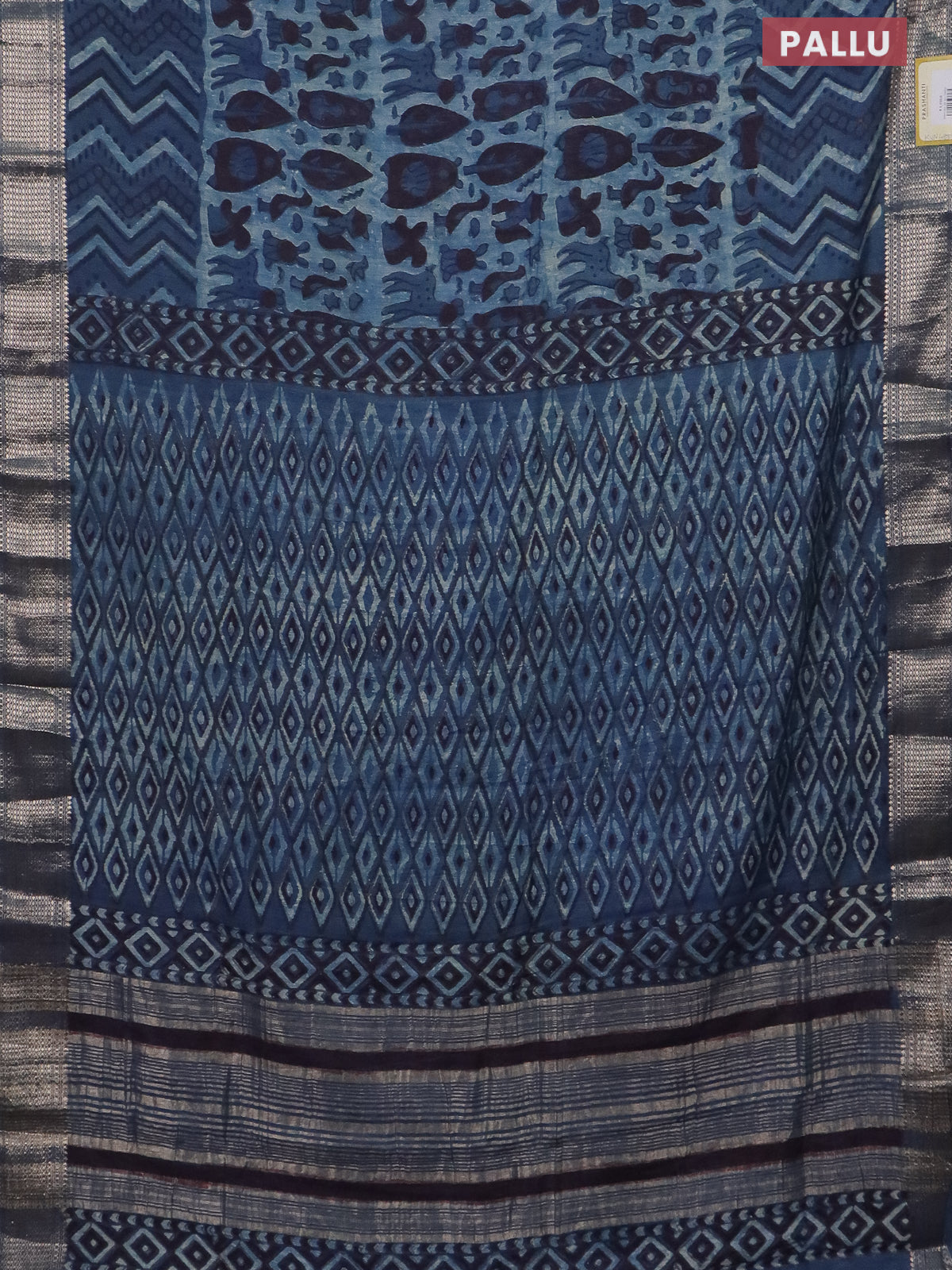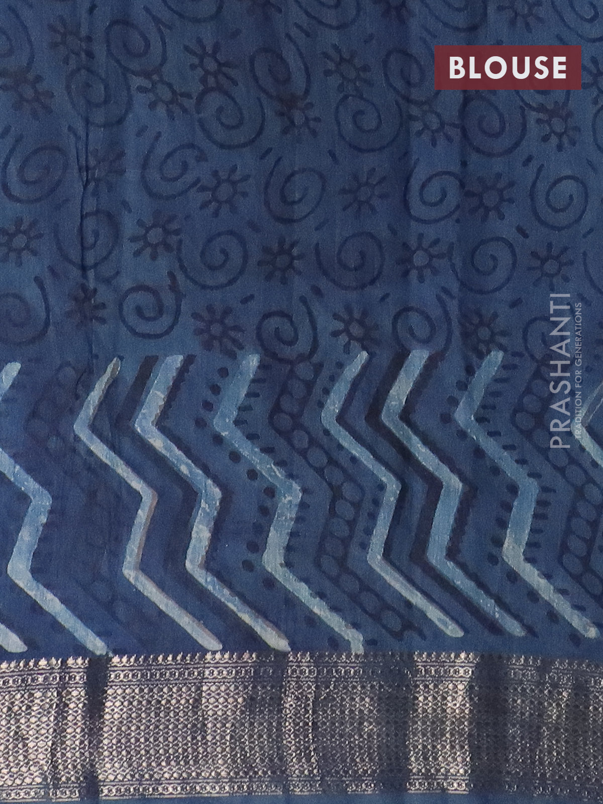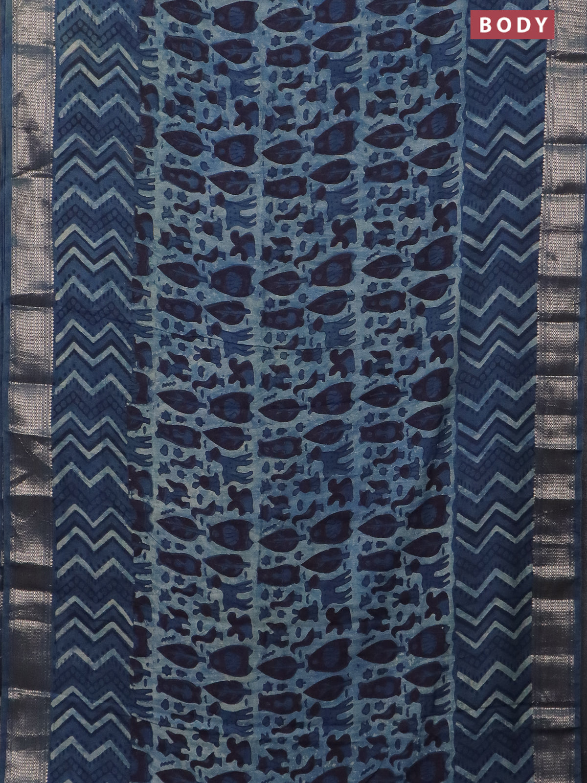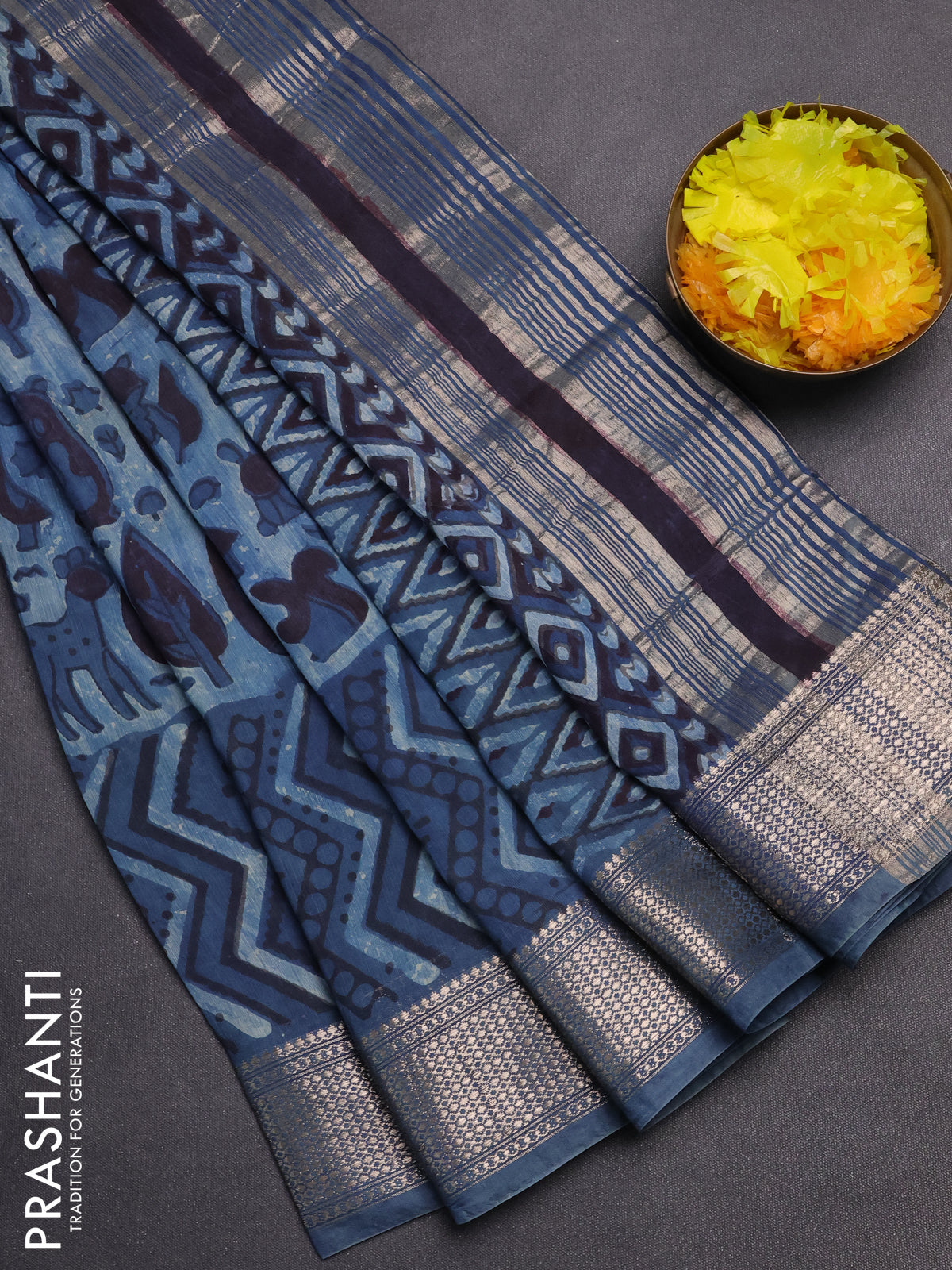 Semi chanderi saree pastel blue and blue with allover vanaspathi prints and zari woven border