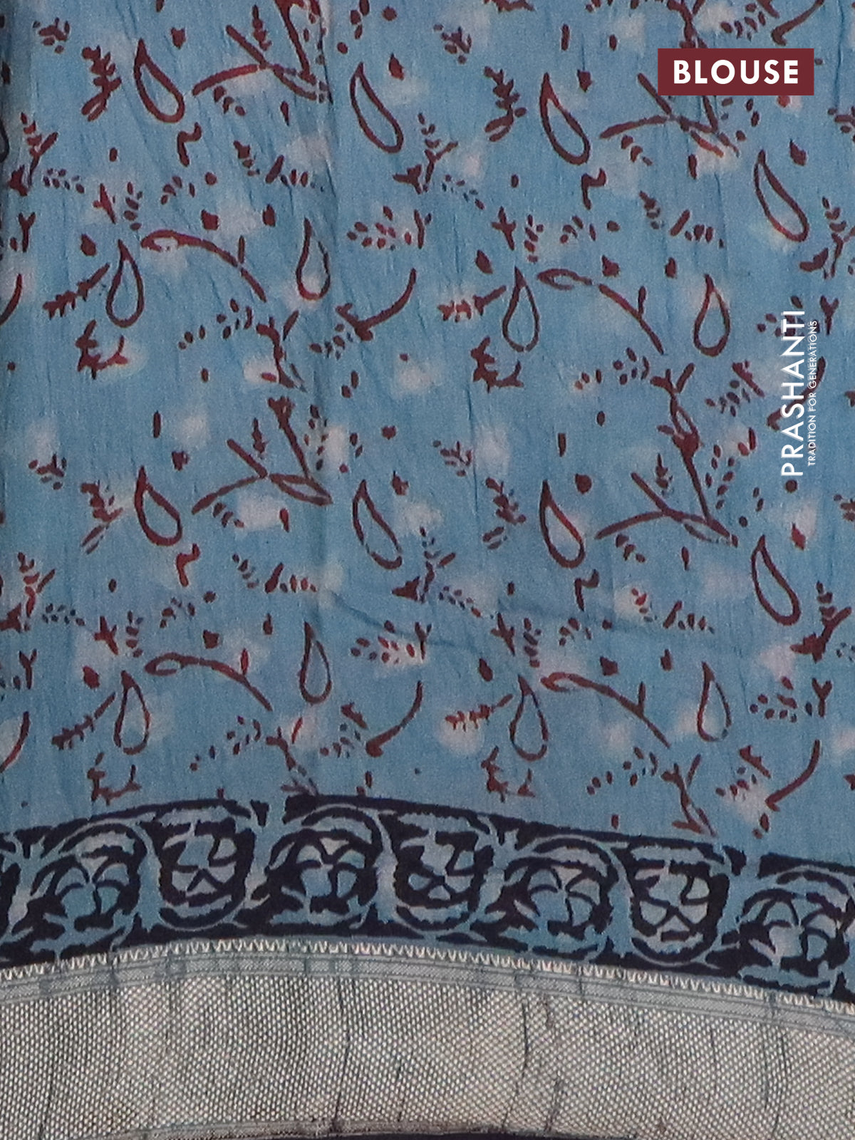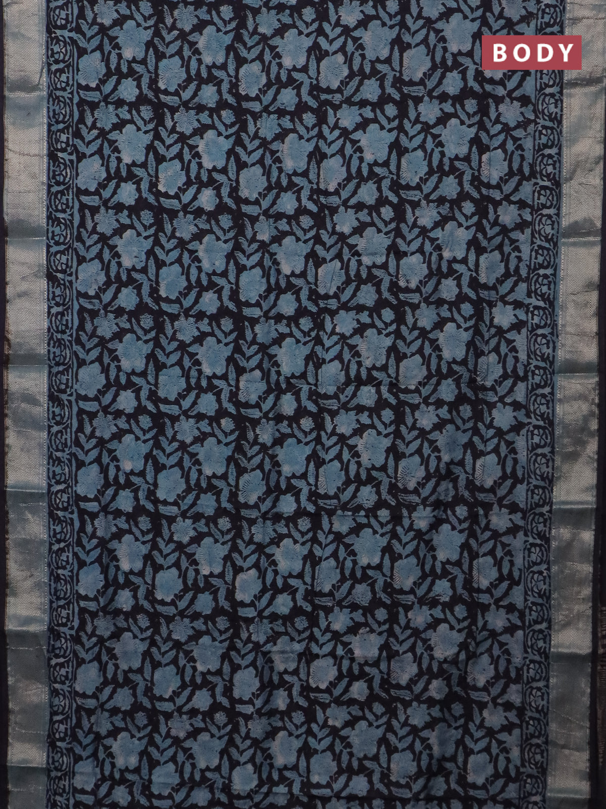 Semi chanderi saree pastel green and black with allover vanaspathi prints and zari woven border