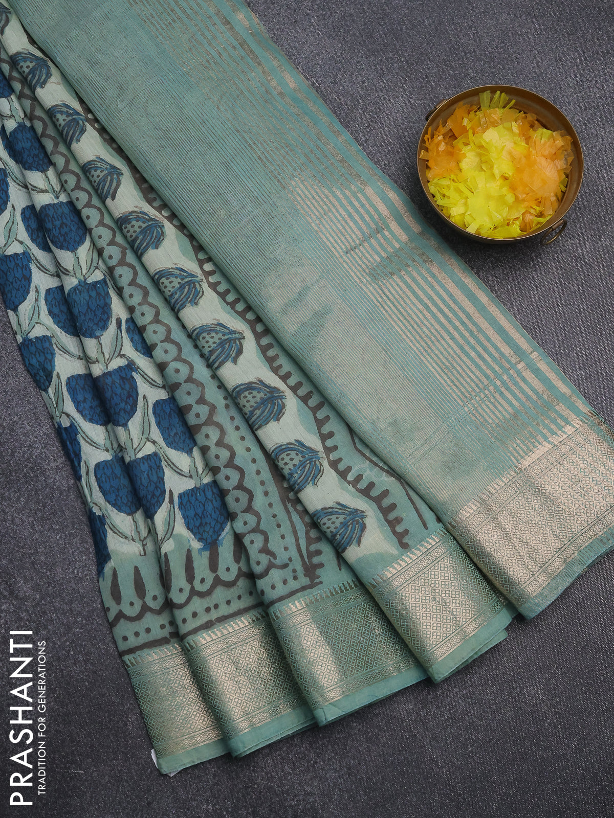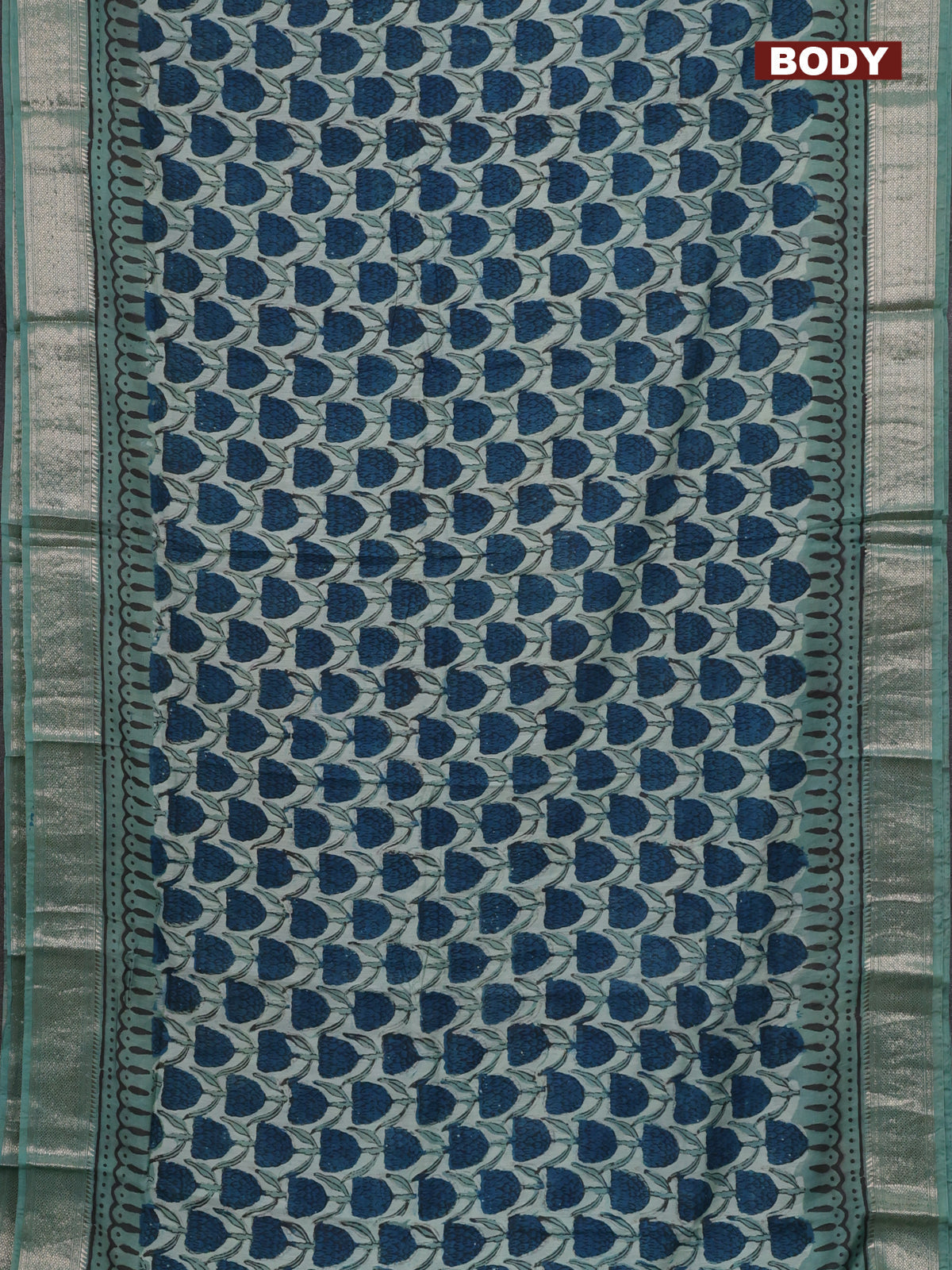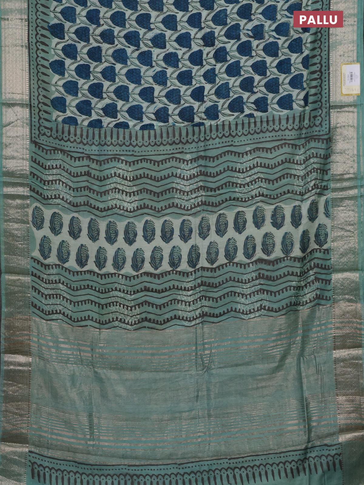 Semi chanderi saree pastel green with allover ajrakh prints and zari woven border