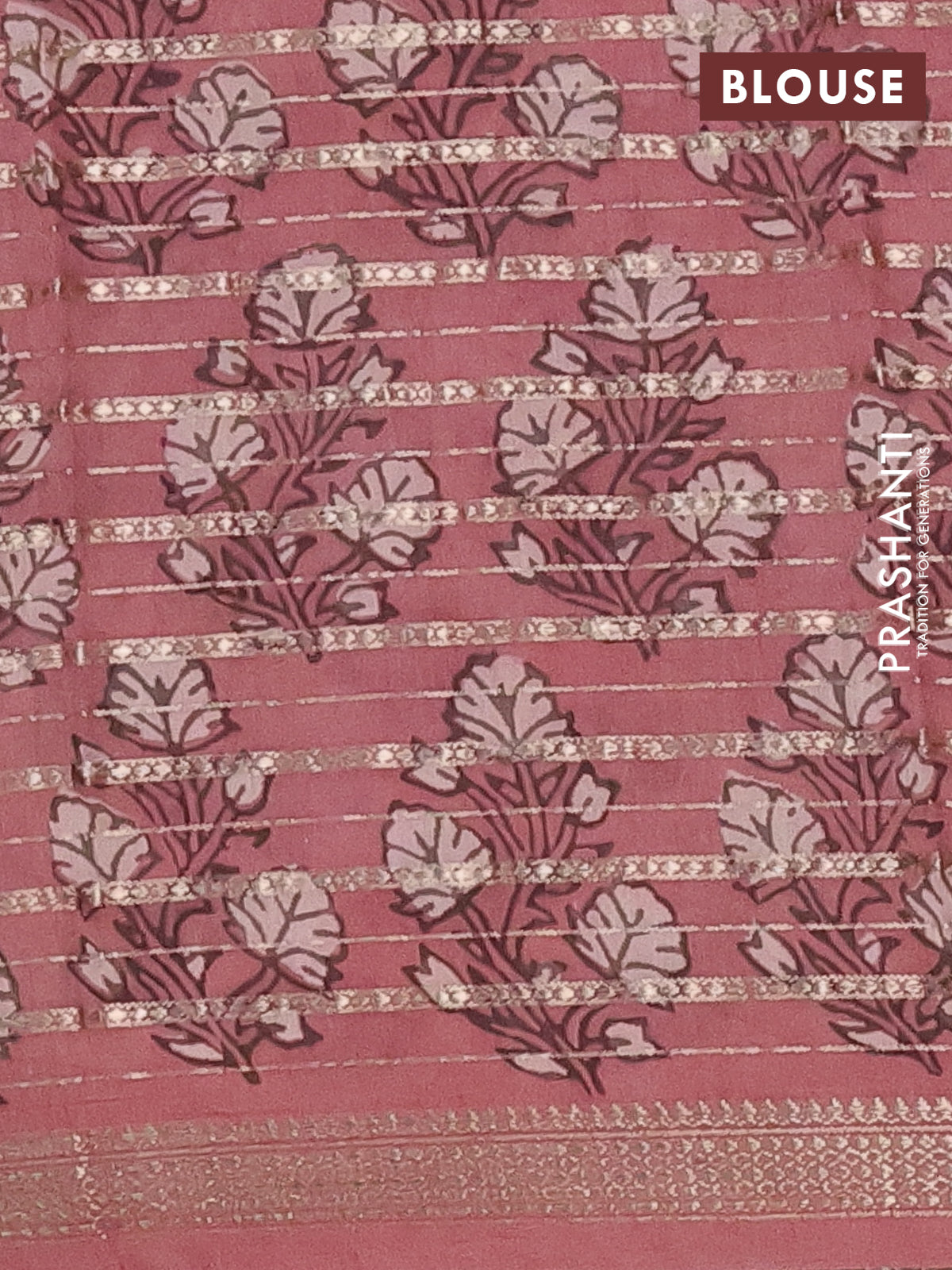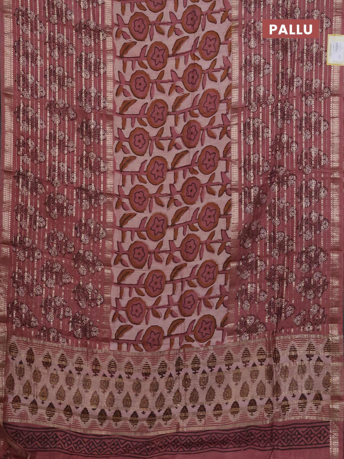 Semi chanderi saree pastel peach with allover ajrakh prints and long printed zari border