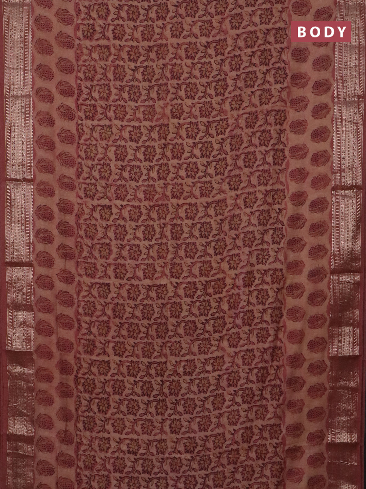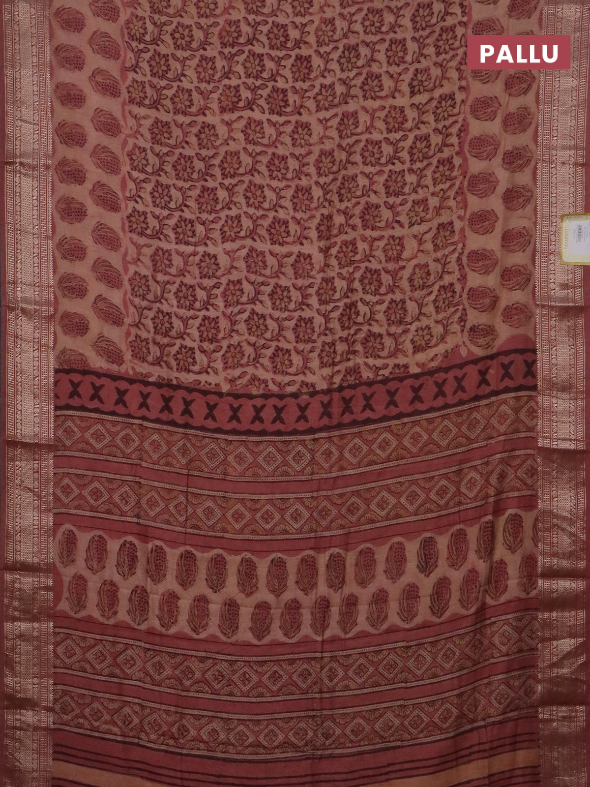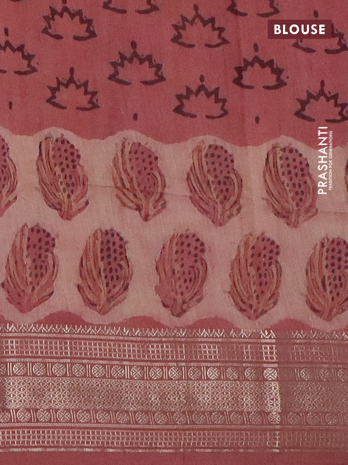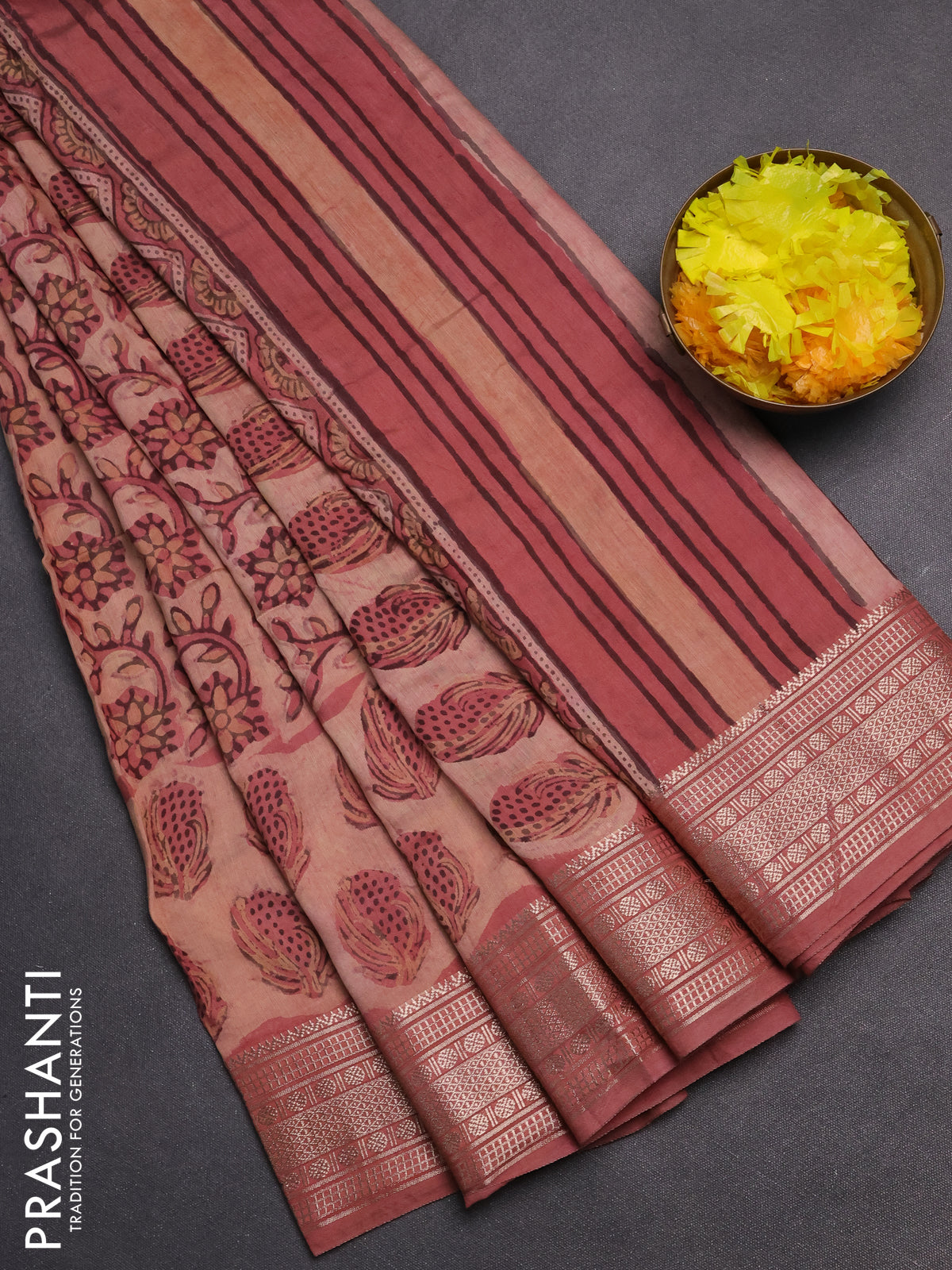 Semi chanderi saree pastel peach with allover vanaspathi prints and zari woven border