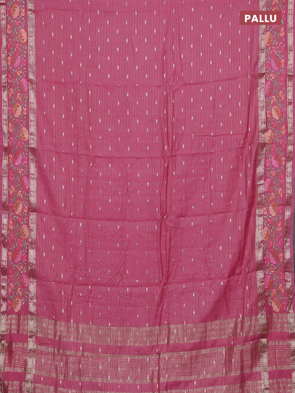Semi chanderi saree pink shade with allover zari weaves & buttas and floral embroidery border