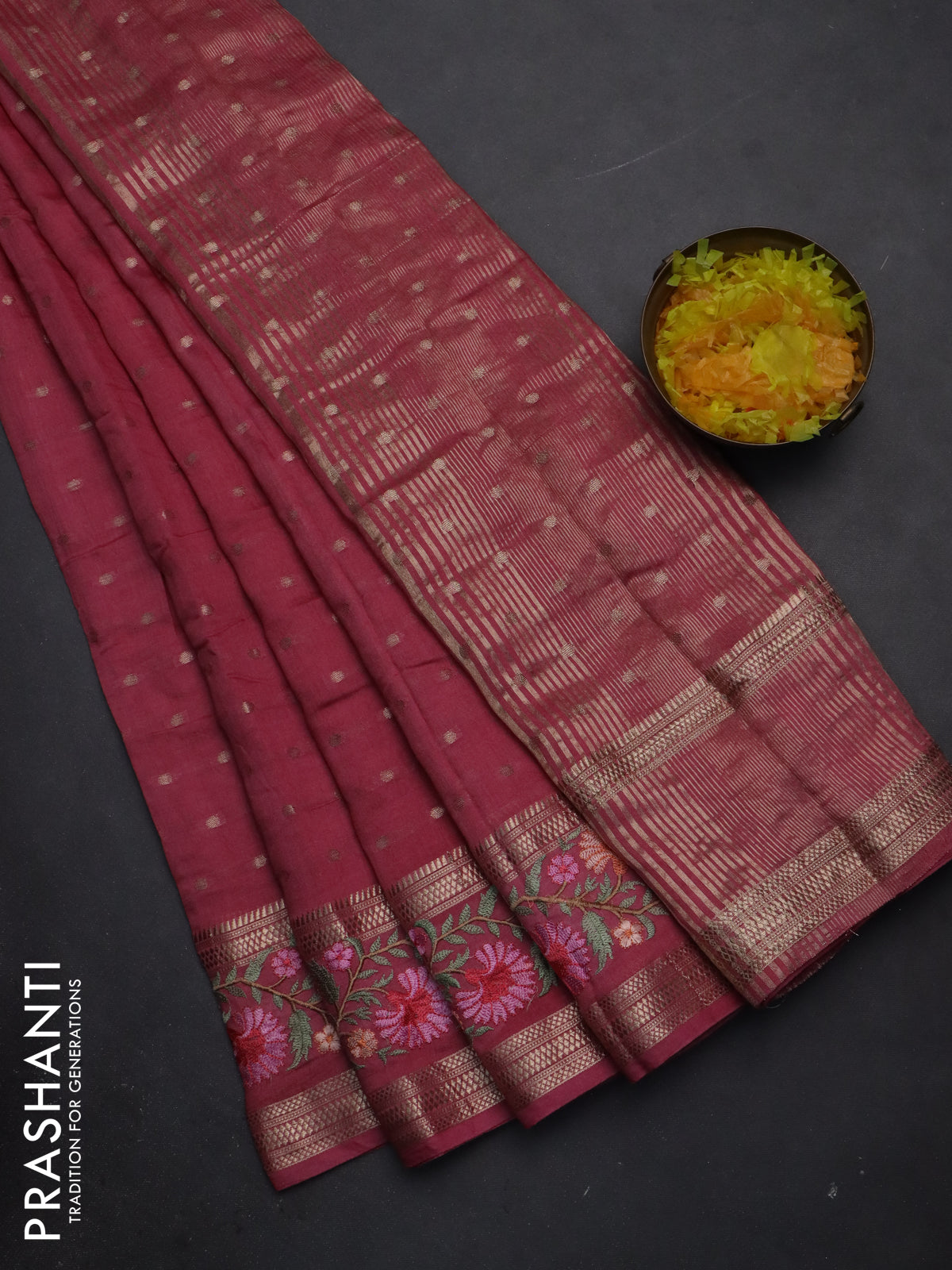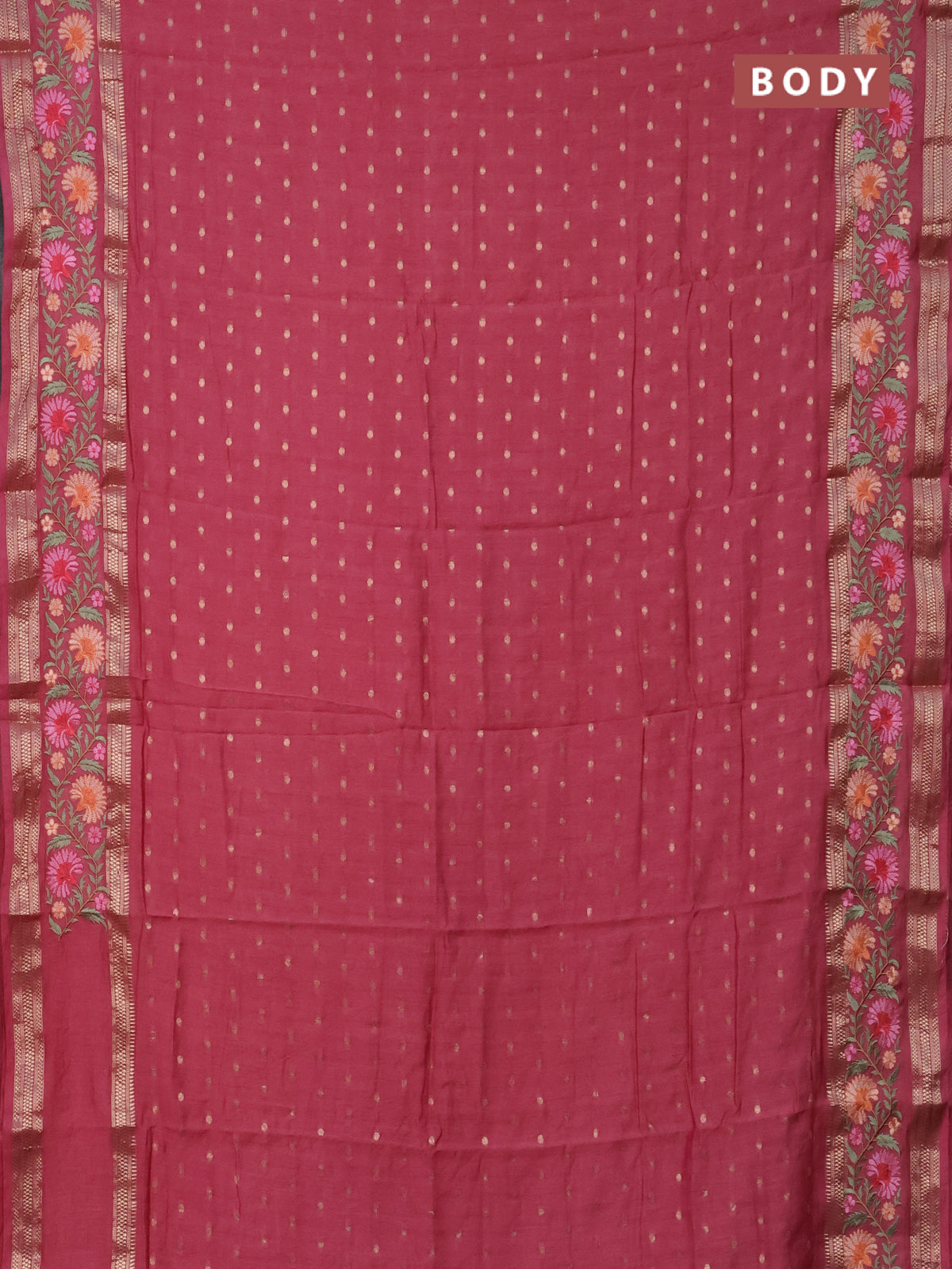 Semi chanderi saree pink shade with zari woven buttas and floral embroidery border
