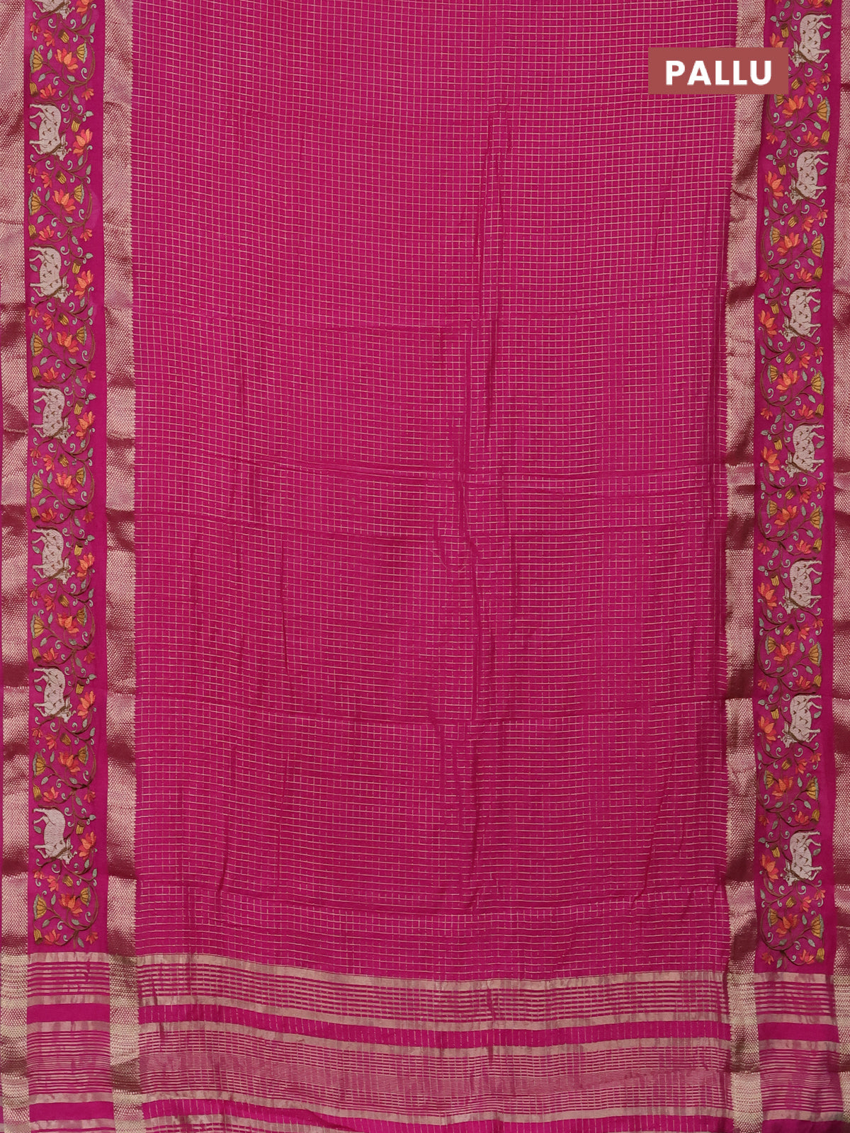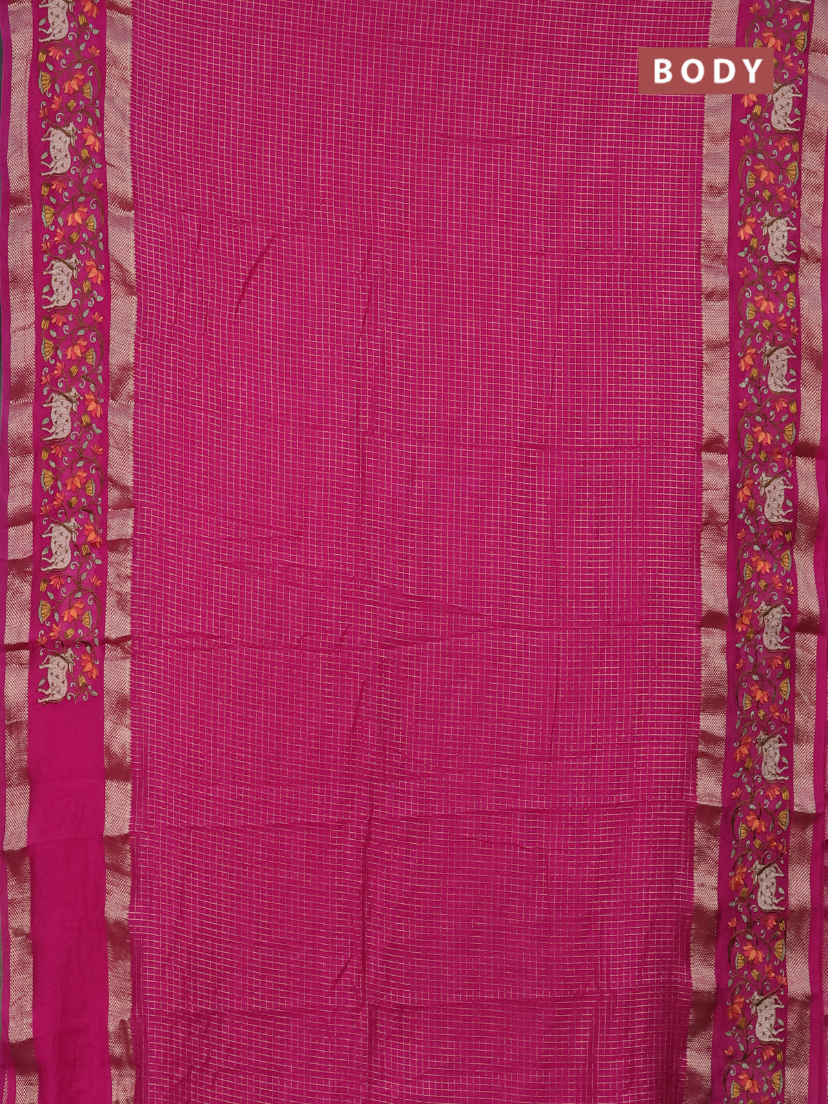 Semi chanderi saree pink with allover zari checked pattern and pichwai embroidery border