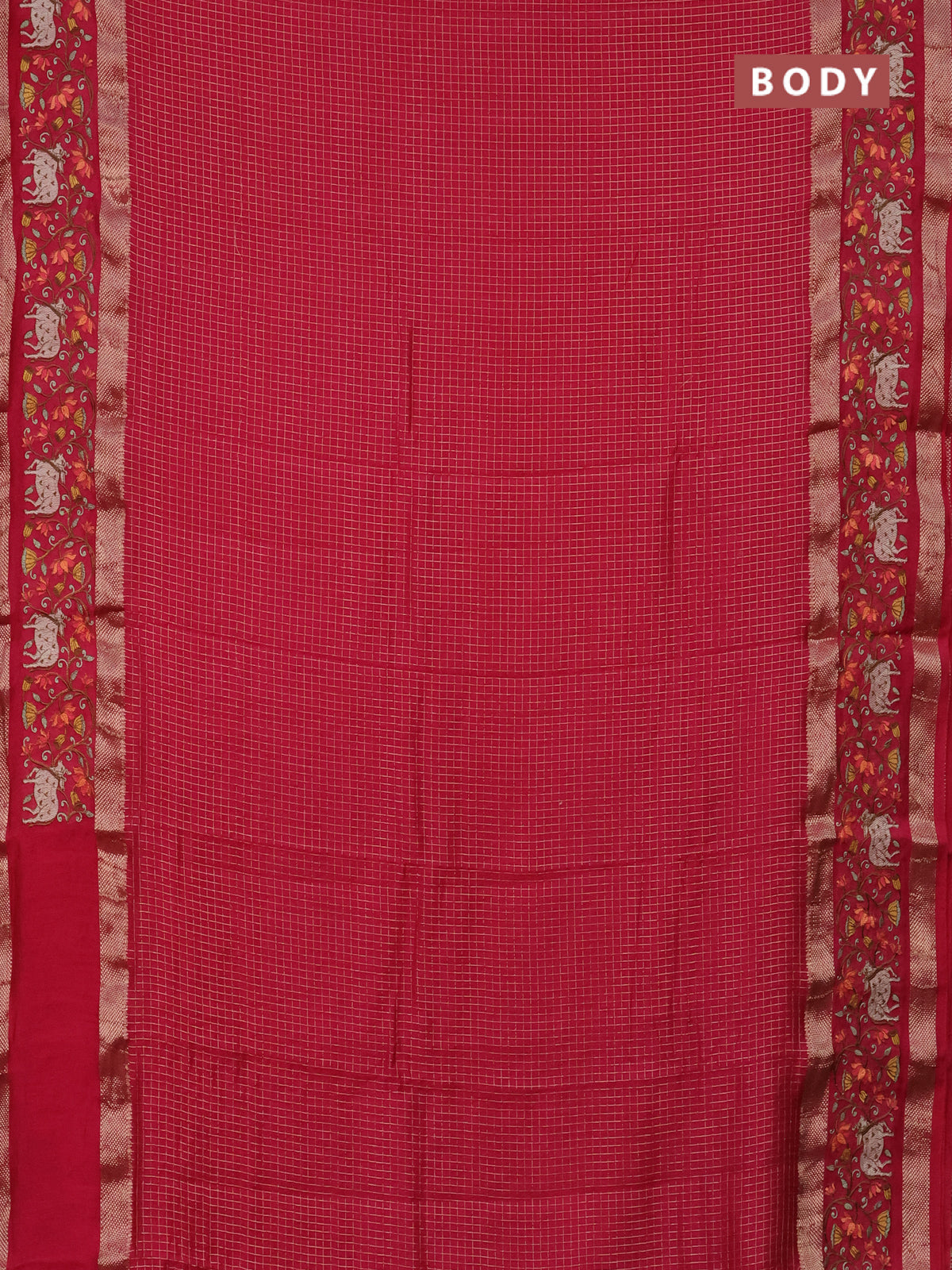 Semi chanderi saree pink with allover zari checked pattern and pichwai embroidery border