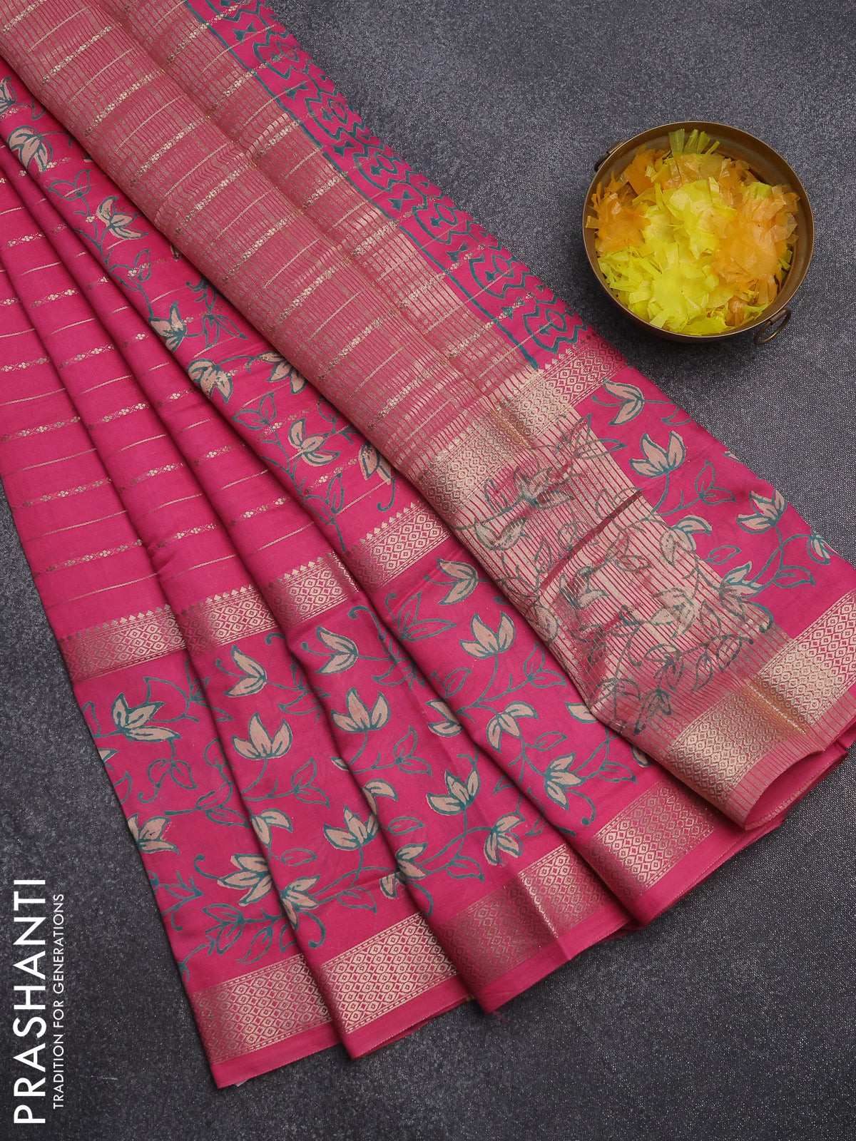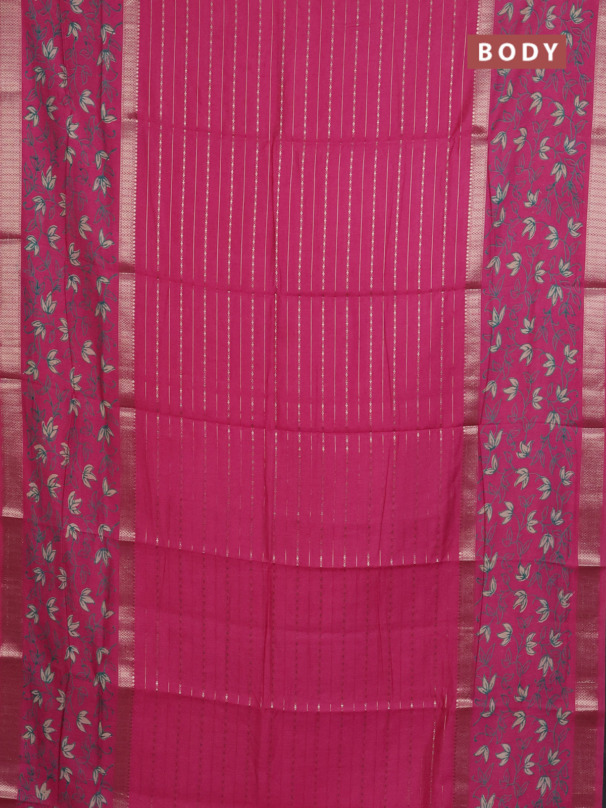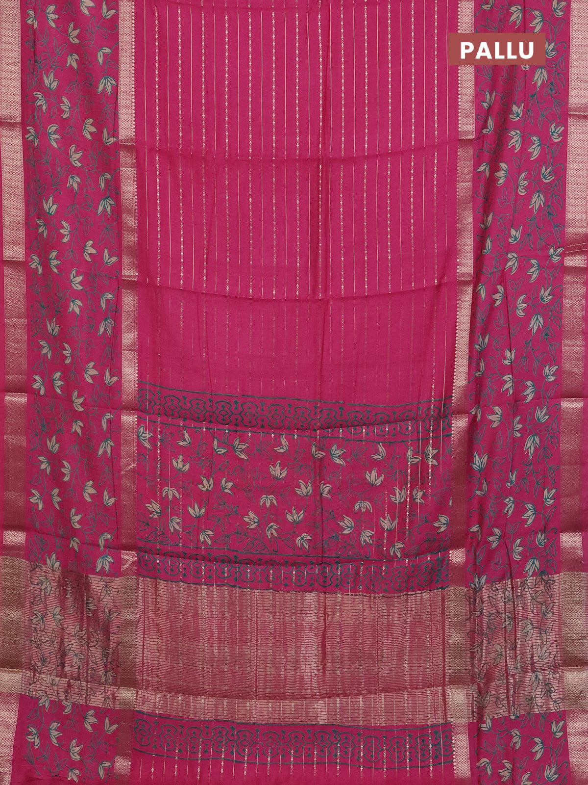 Semi chanderi saree pink with allover zari weaves and long rettapet zari woven printed border