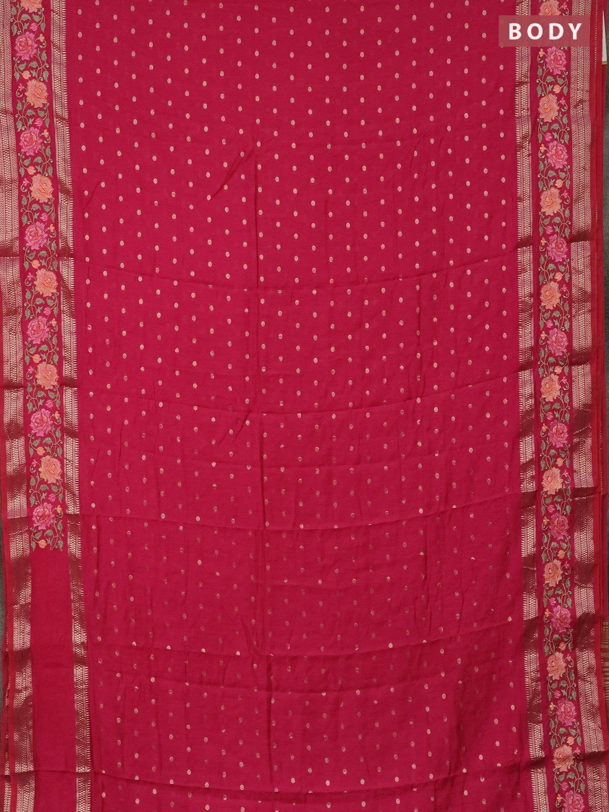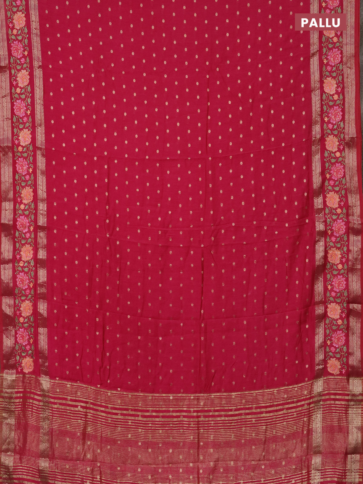 Semi chanderi saree pink with allover zari woven buttas and floral embroidery border