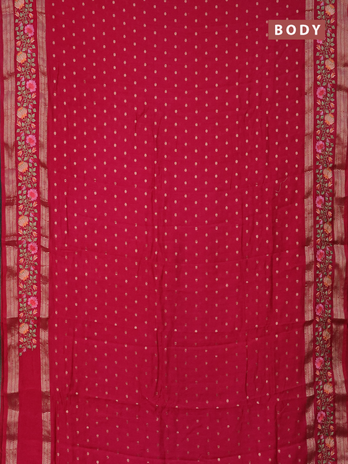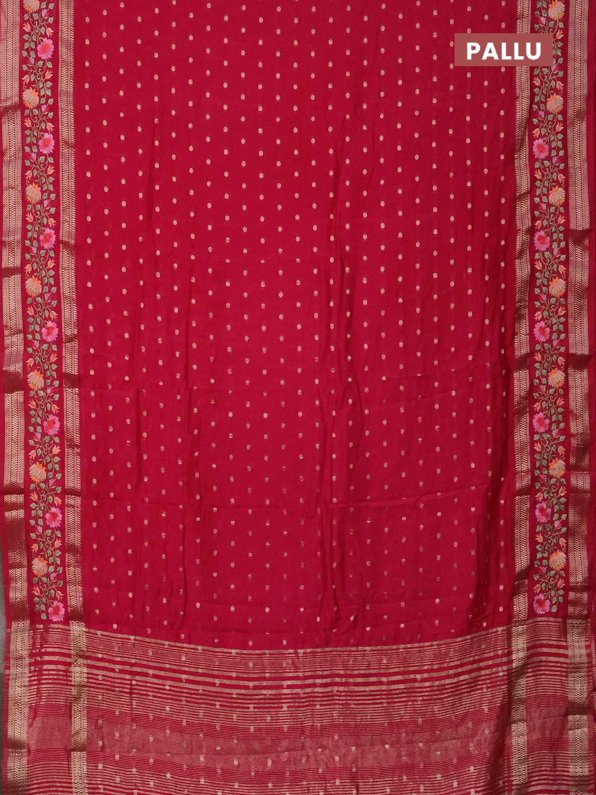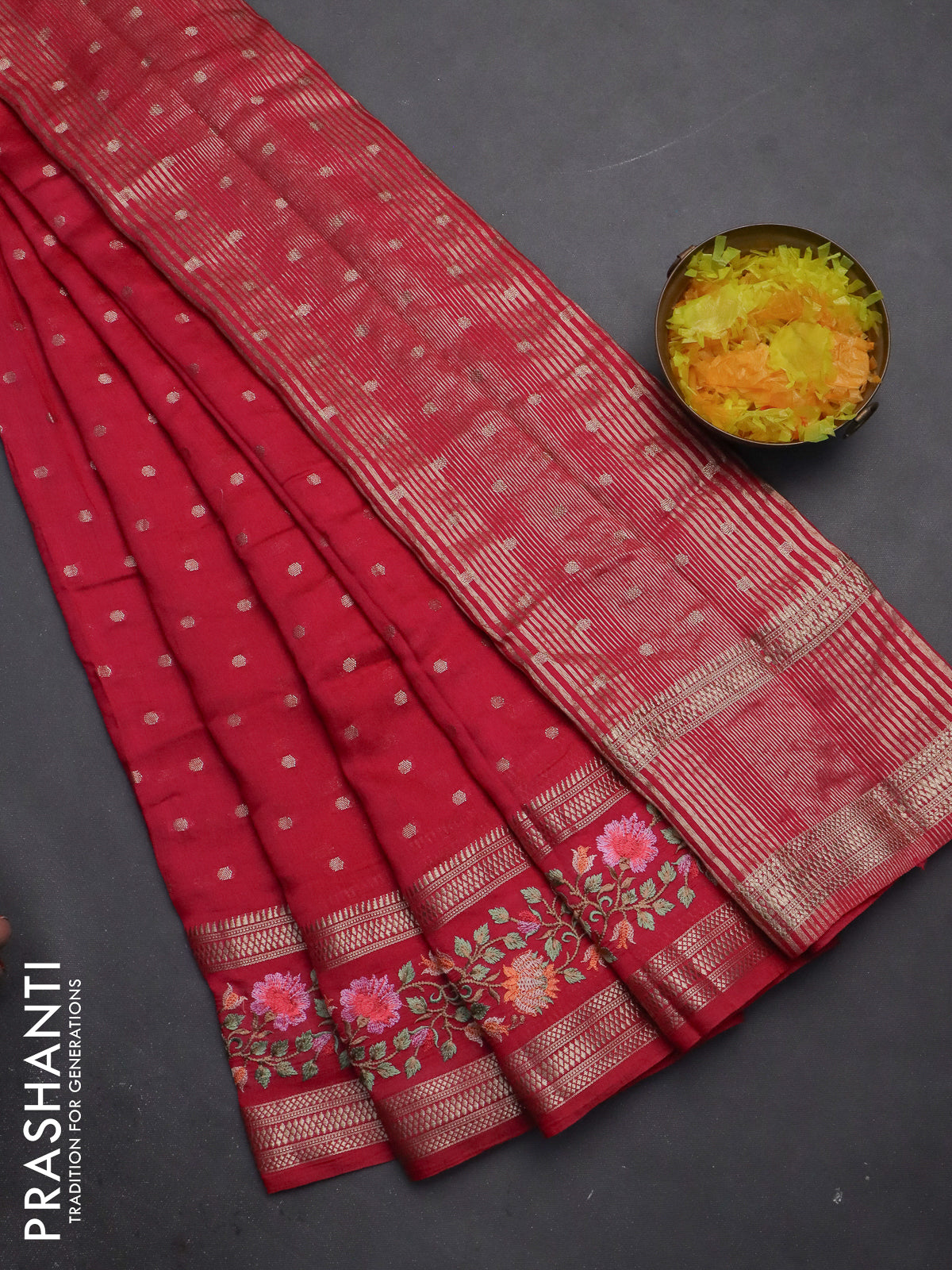 Semi chanderi saree pink with allover zari woven buttas and floral embroidery border