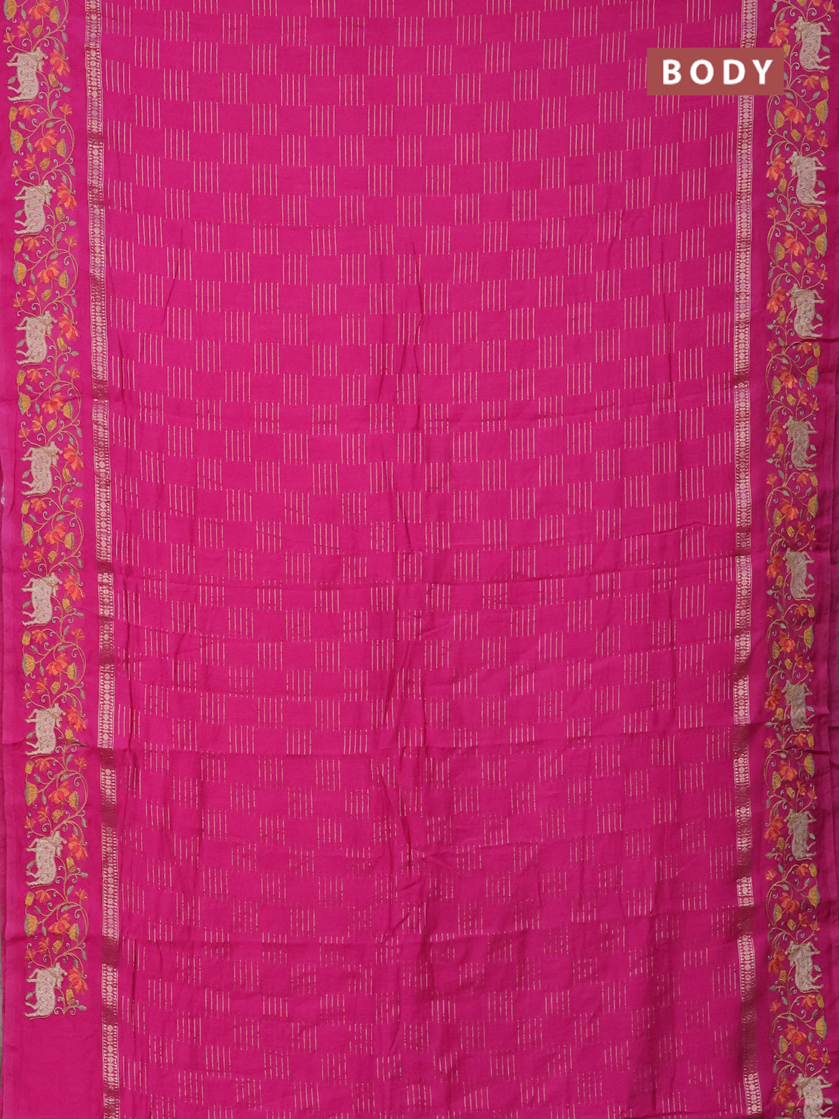Semi chanderi saree pink with allover zari woven geometric weaves and pichwai embroidery border