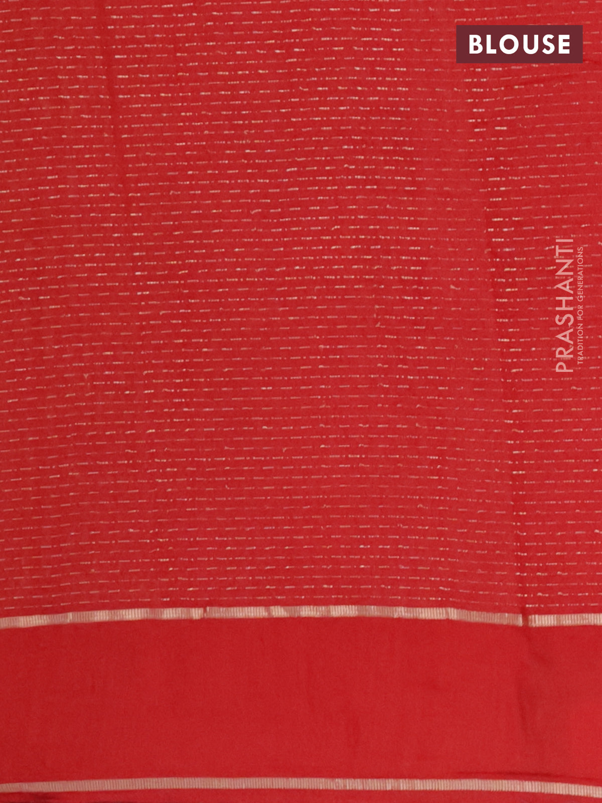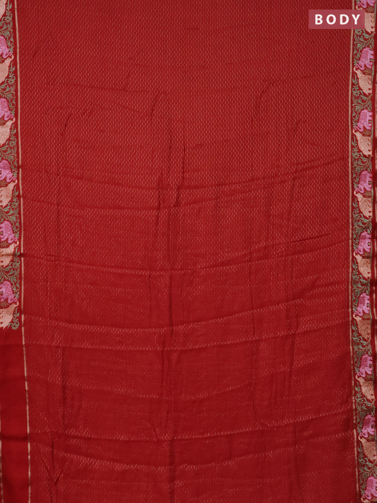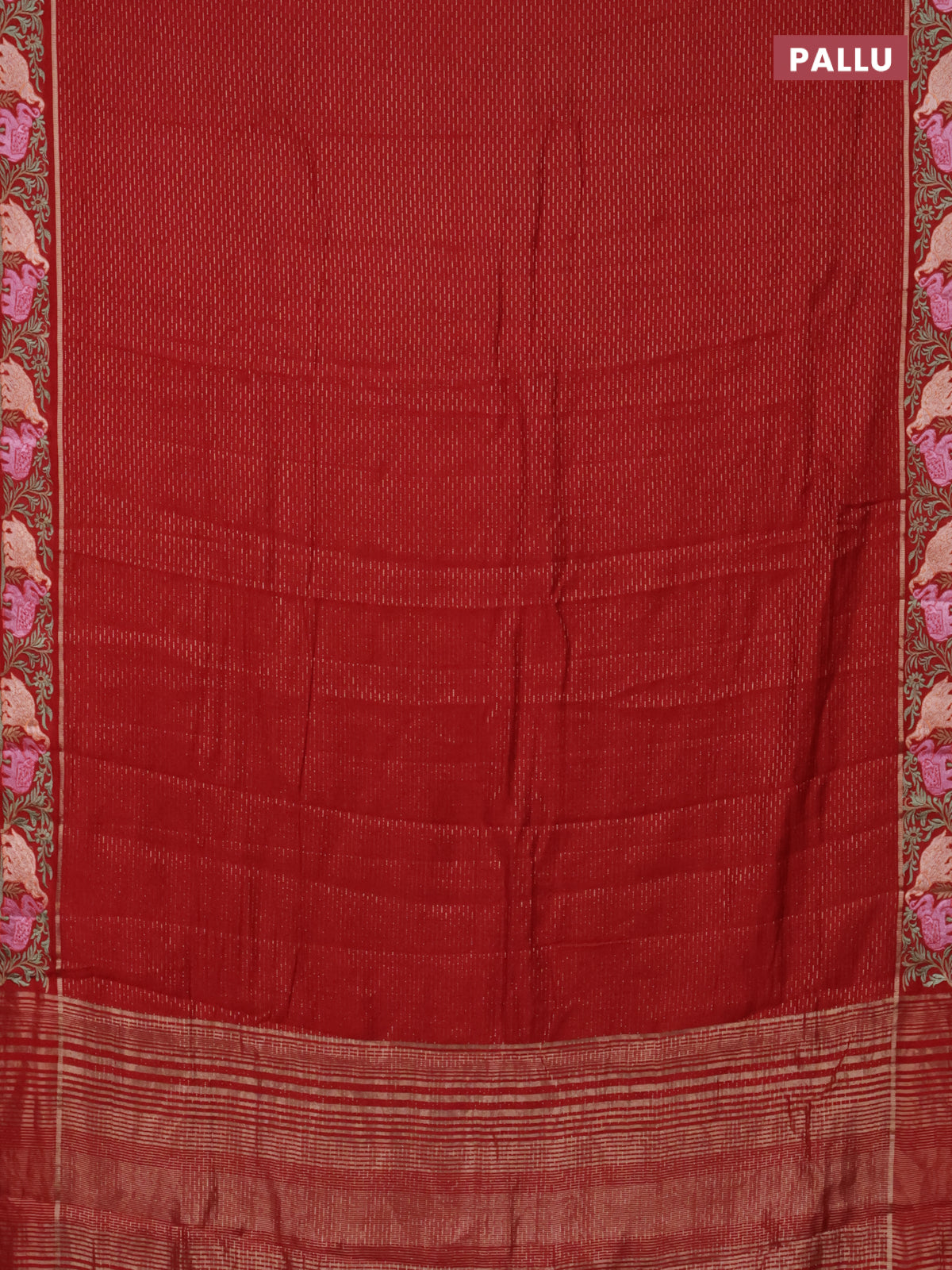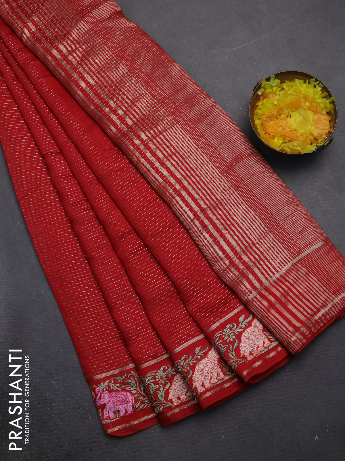 Semi chanderi saree red with allover zari weaves and floral embroidery border