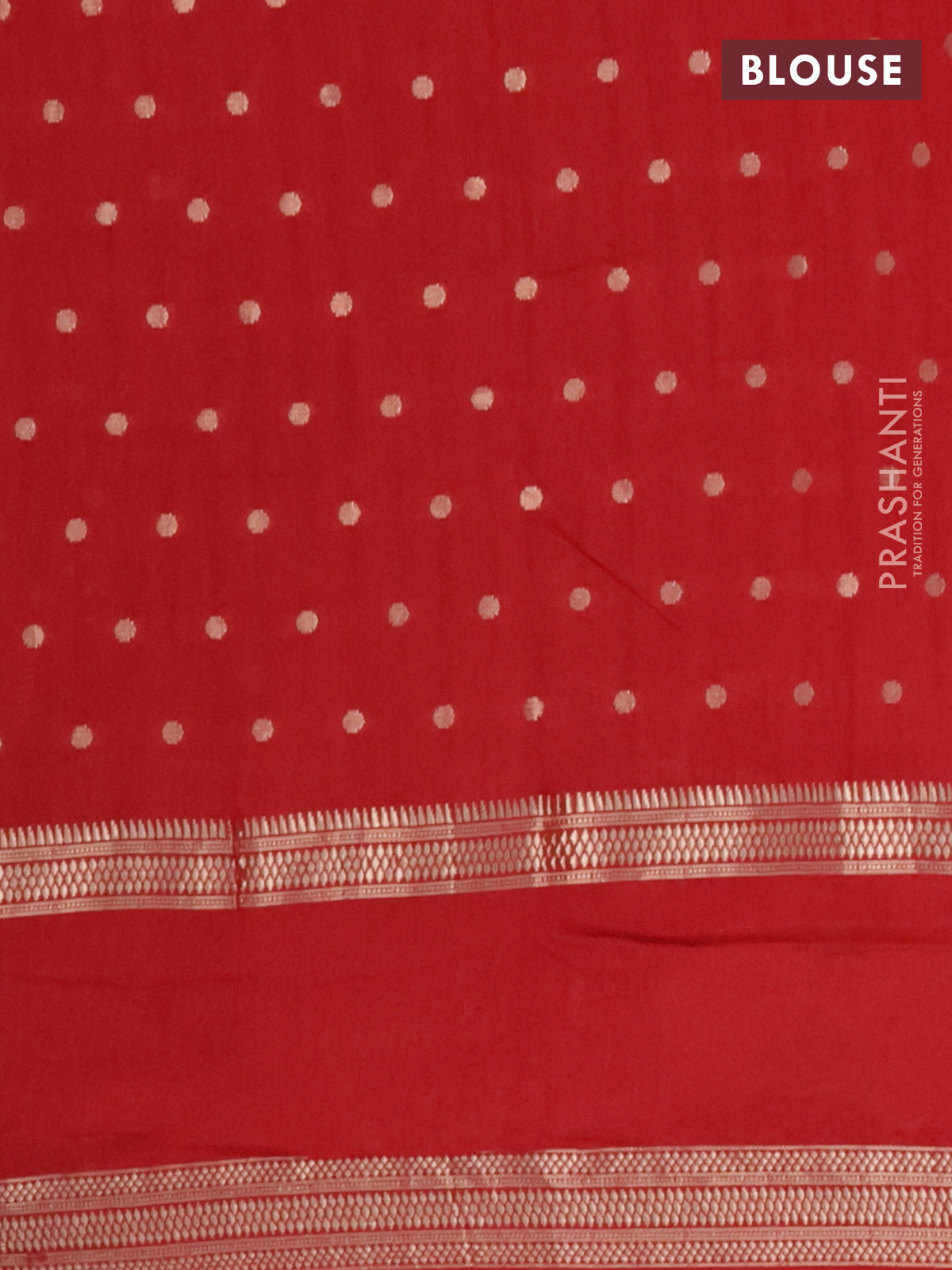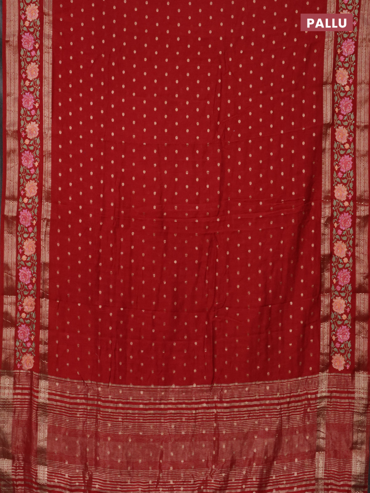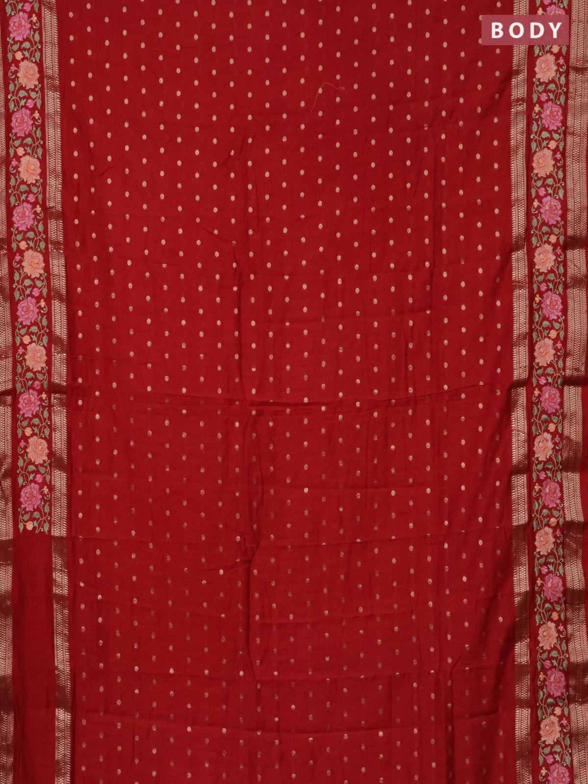 Semi chanderi saree red with allover zari woven buttas and floral embroidery border