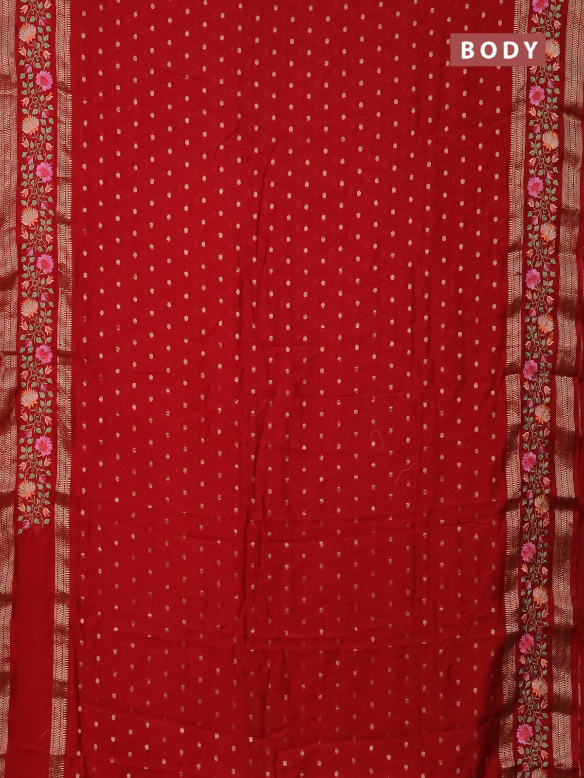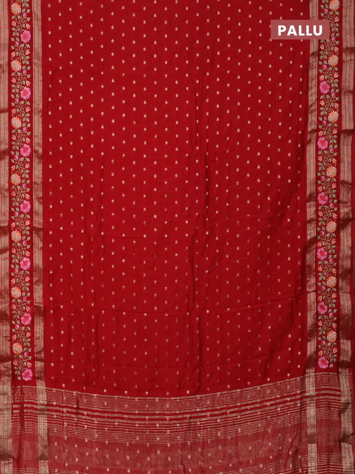Semi chanderi saree red with allover zari woven buttas and floral embroidery border