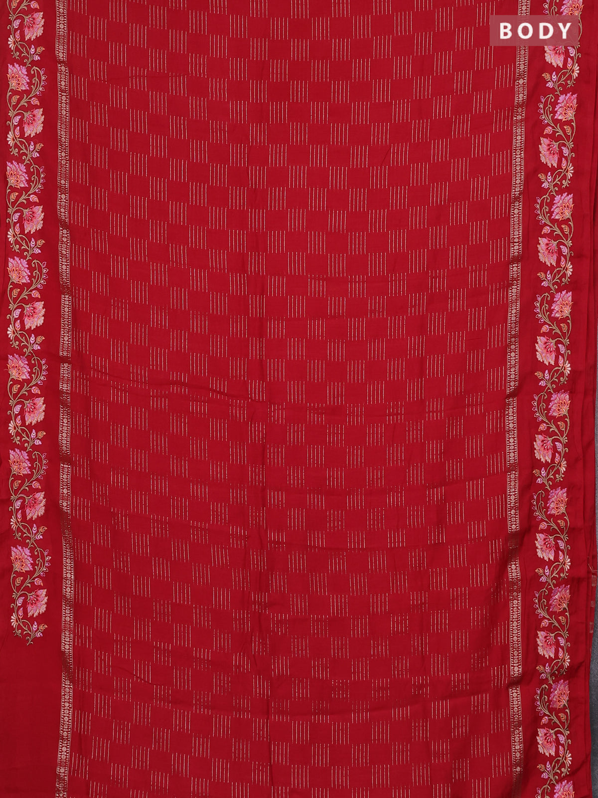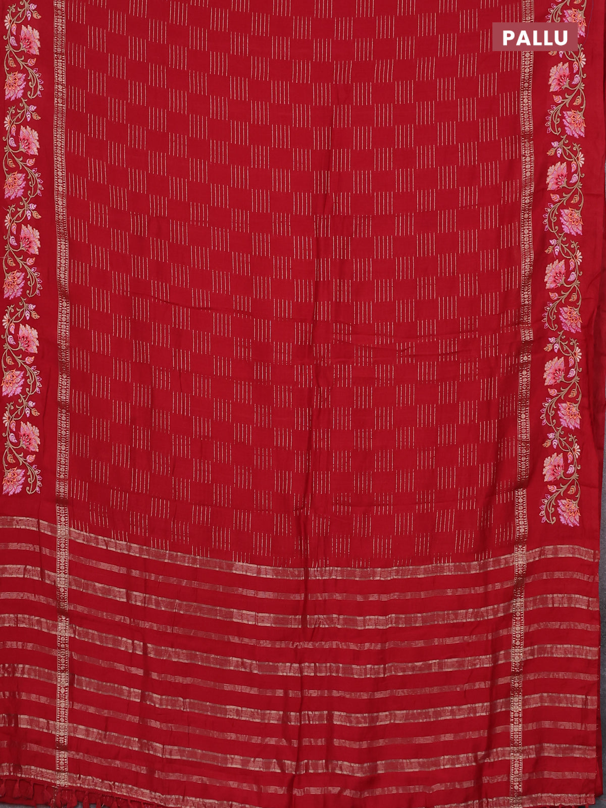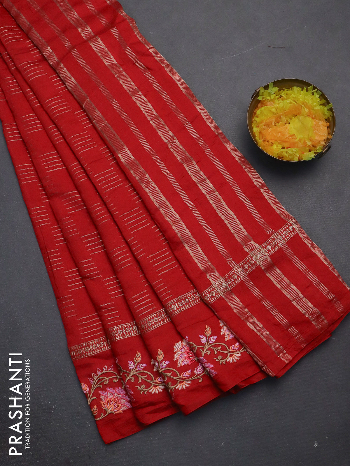 Semi chanderi saree red with allover zari woven geometric weaves and floral embroidery border