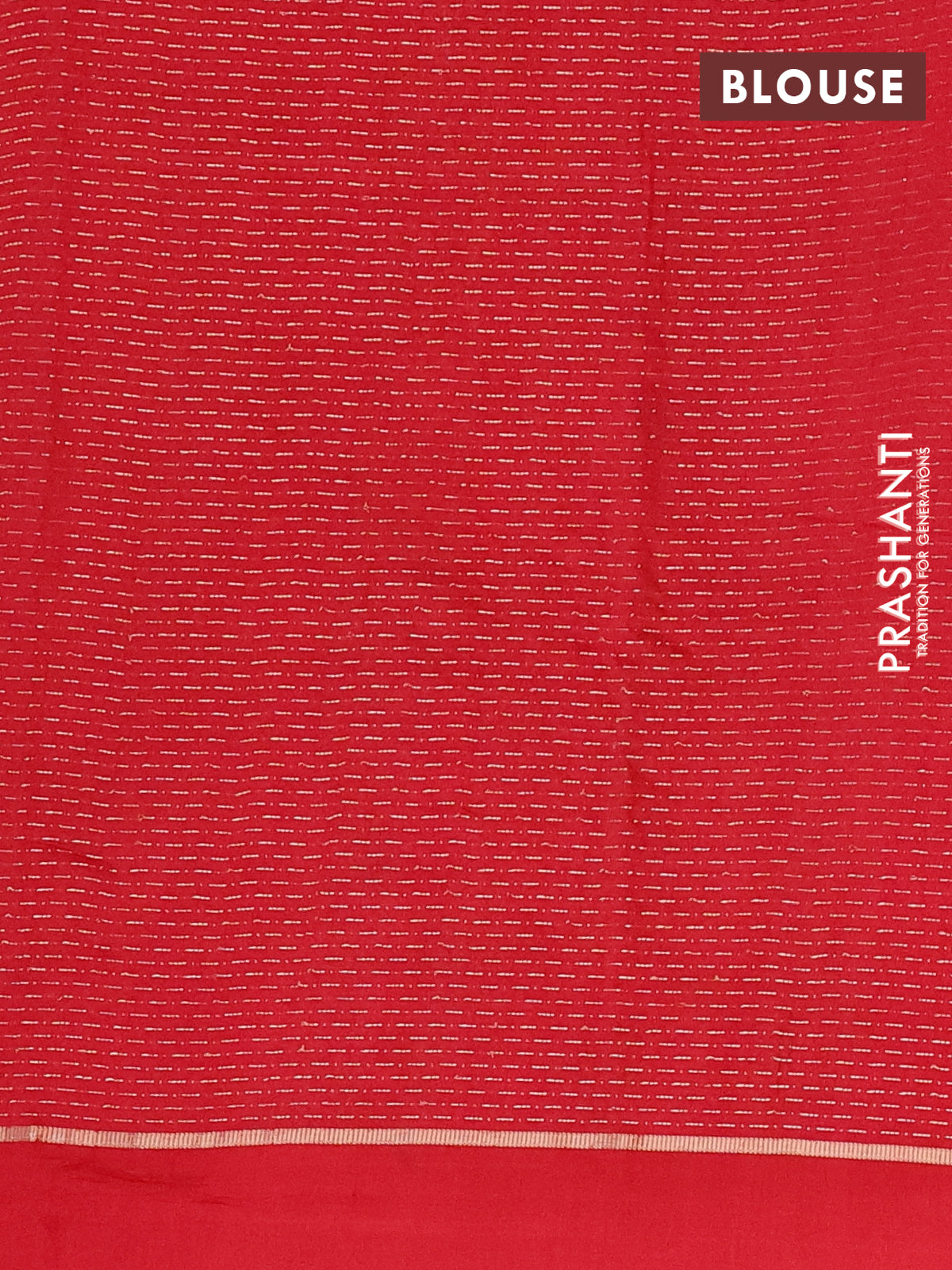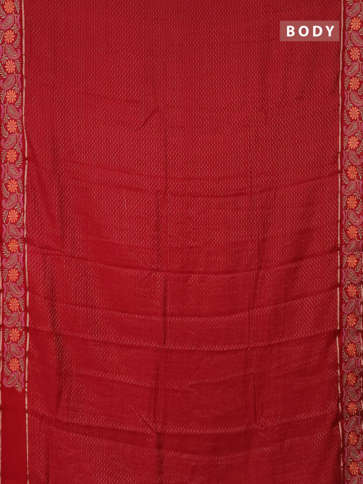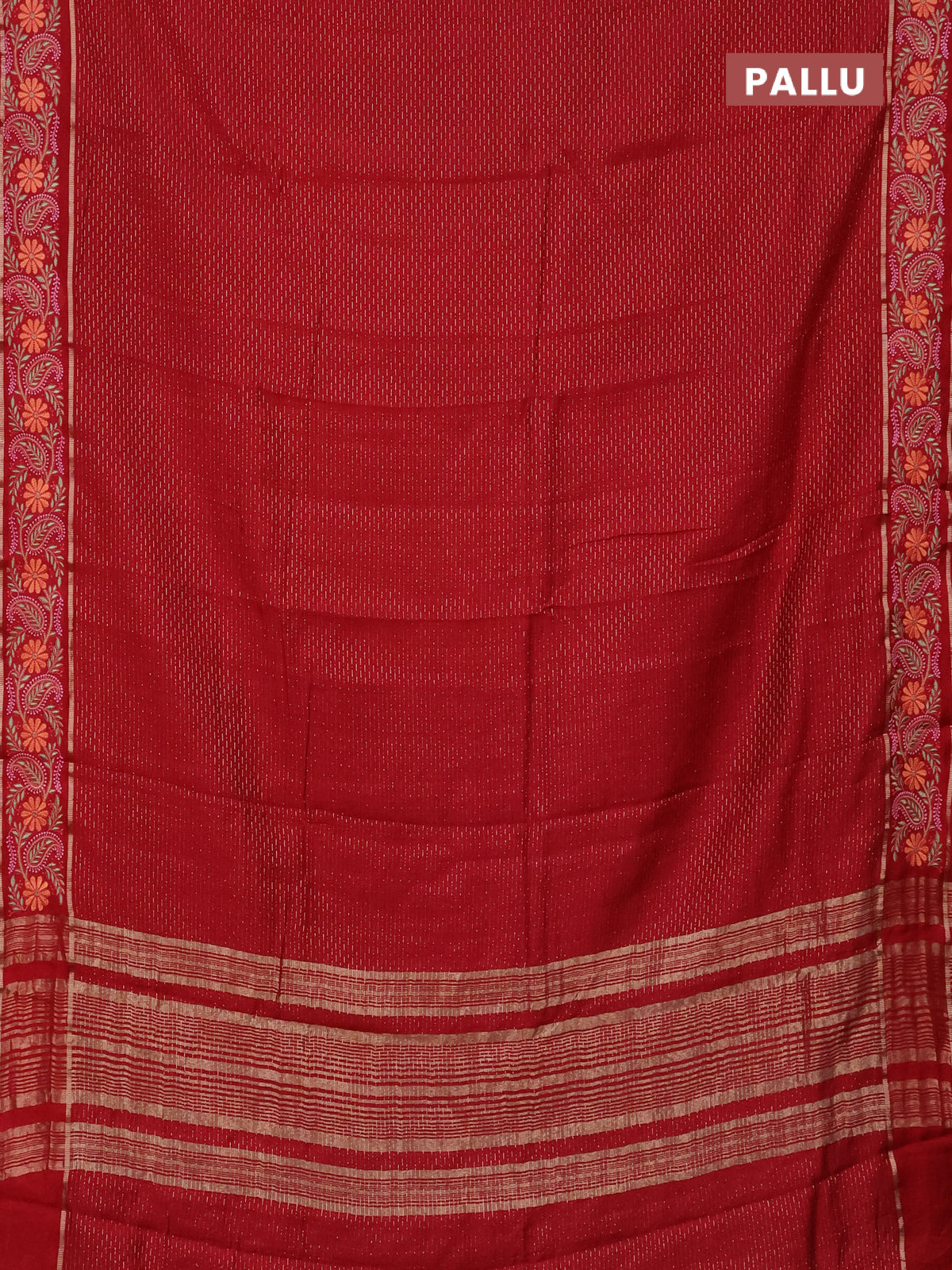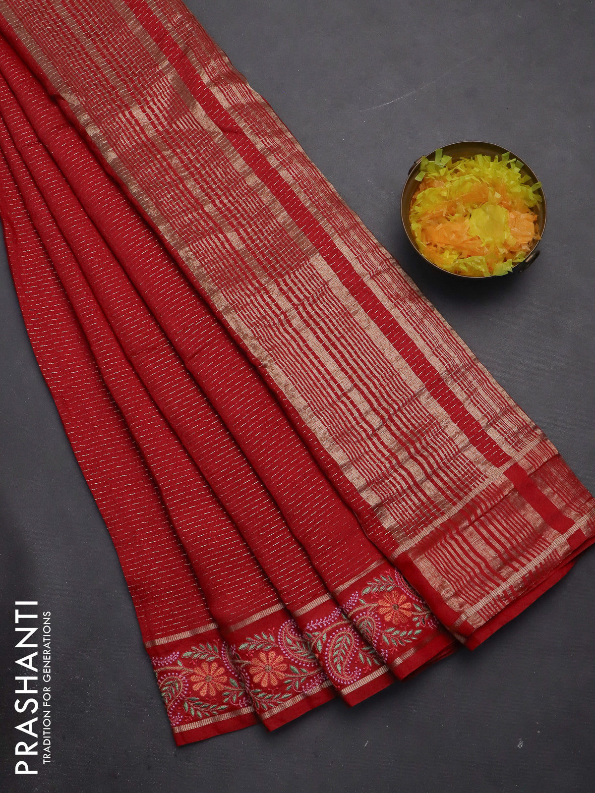 Semi chanderi saree red with allover zari woven stripes pattern and embroidery border