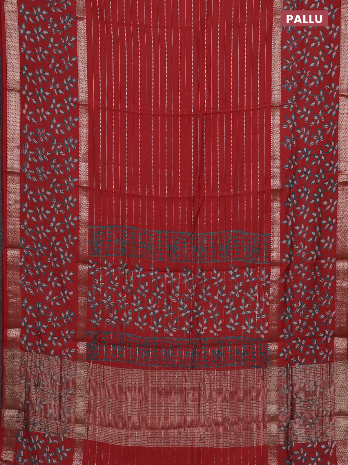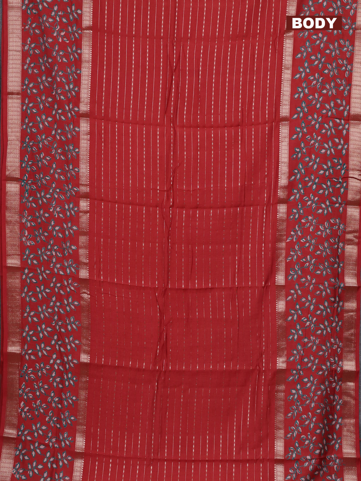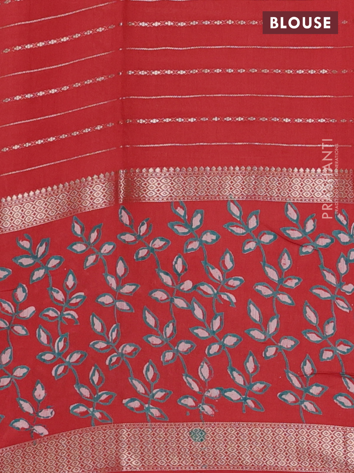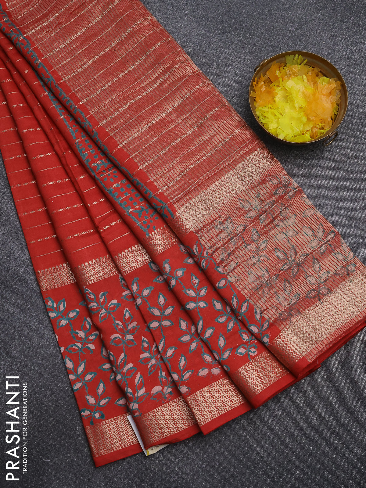 Semi chanderi saree rustic orange with allover zari weaves and long printed zari border