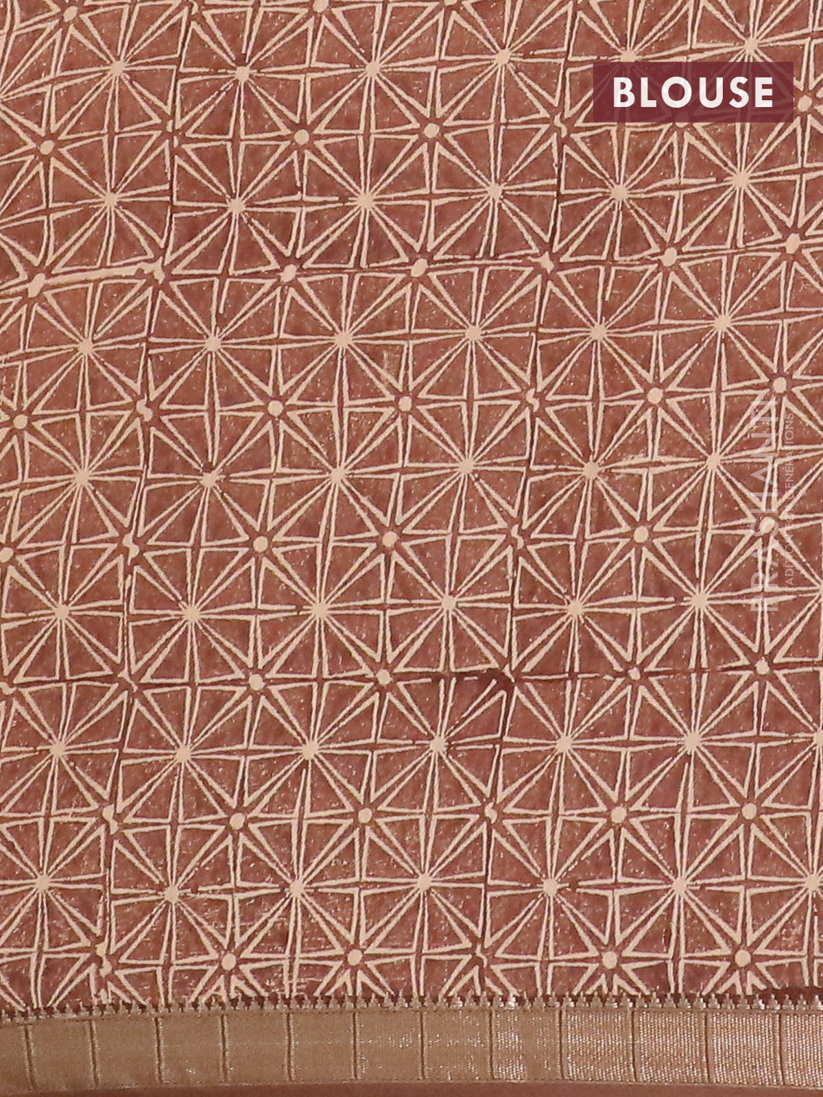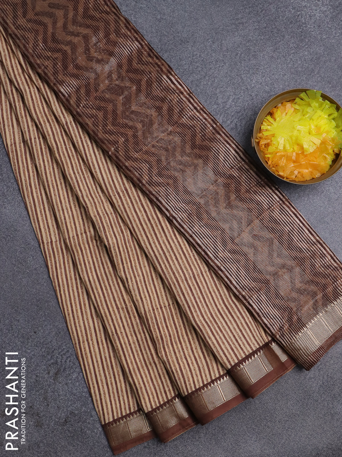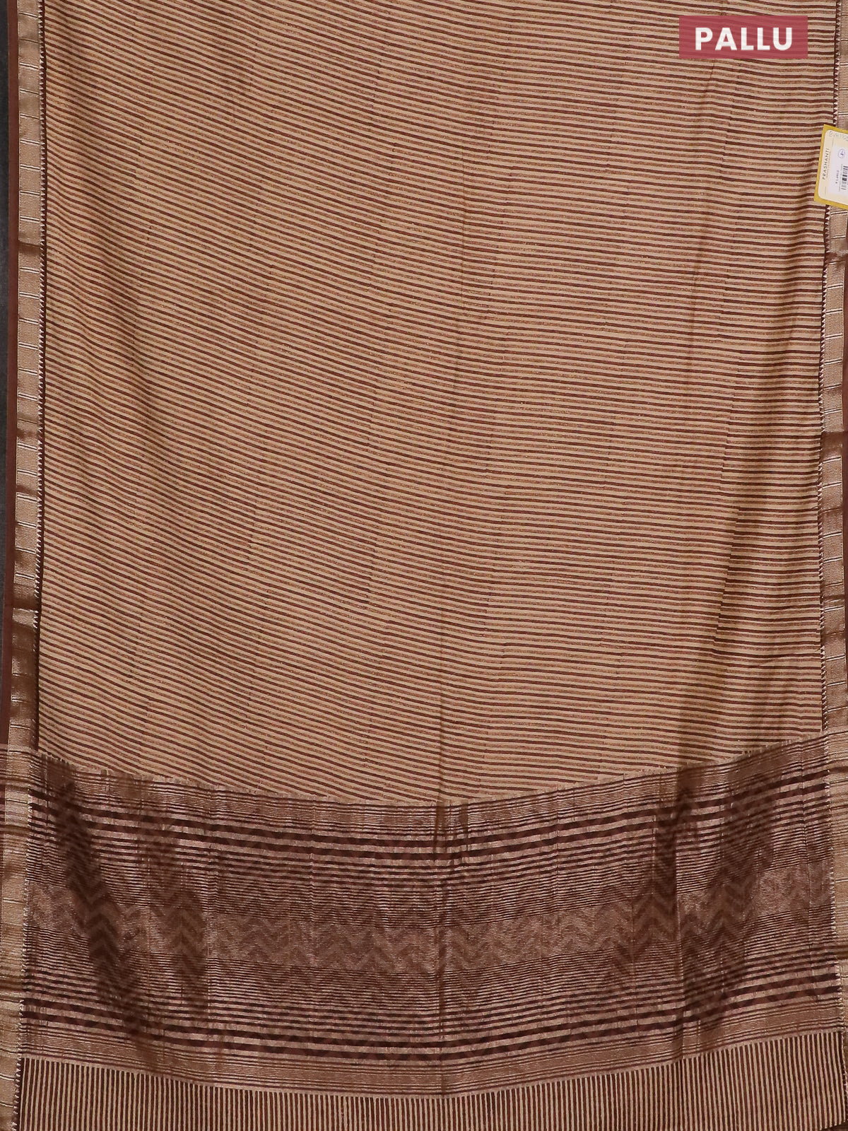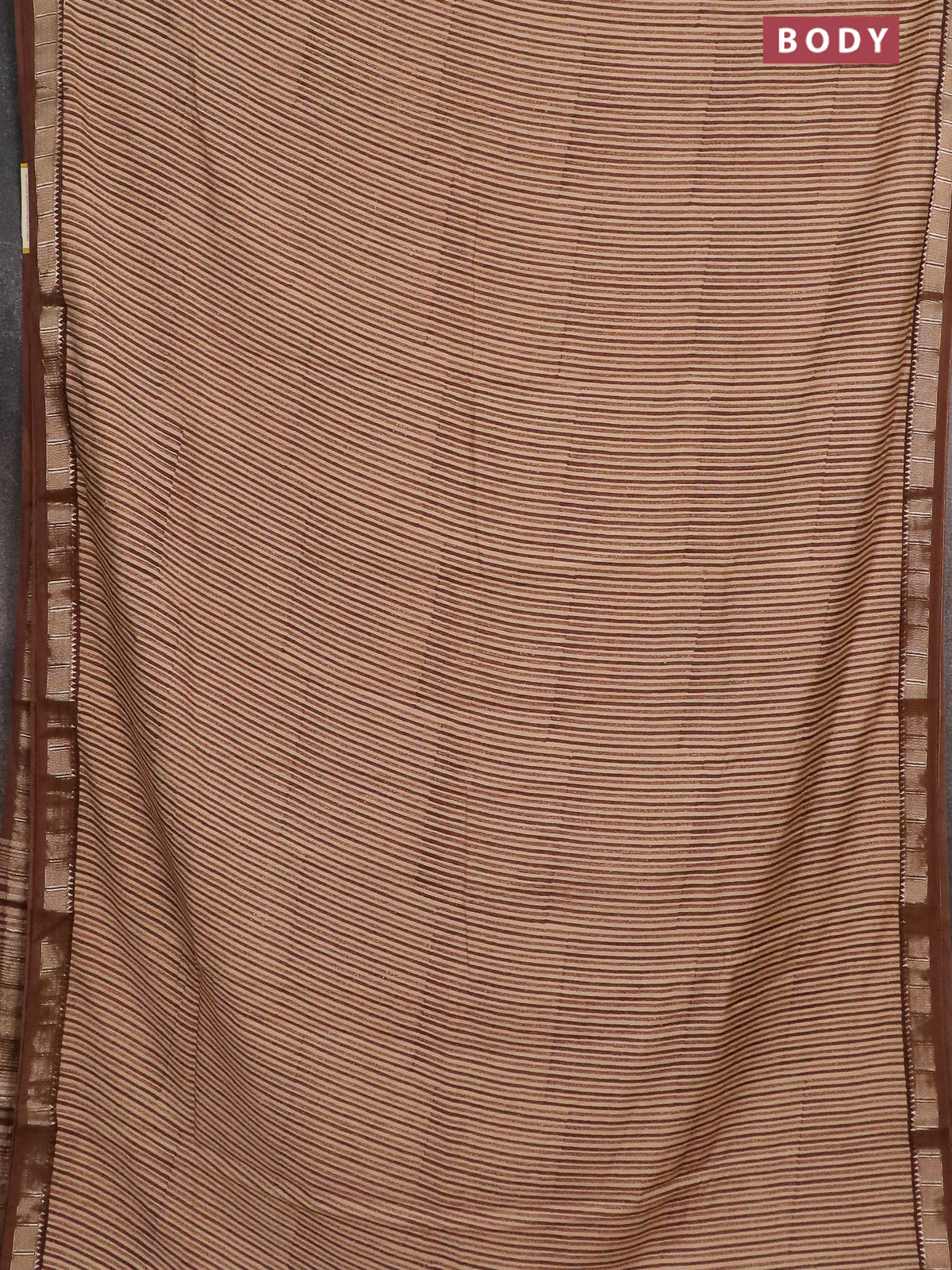 Semi chanderi saree sandal and brown shade with allover stripe pattern and zari woven border