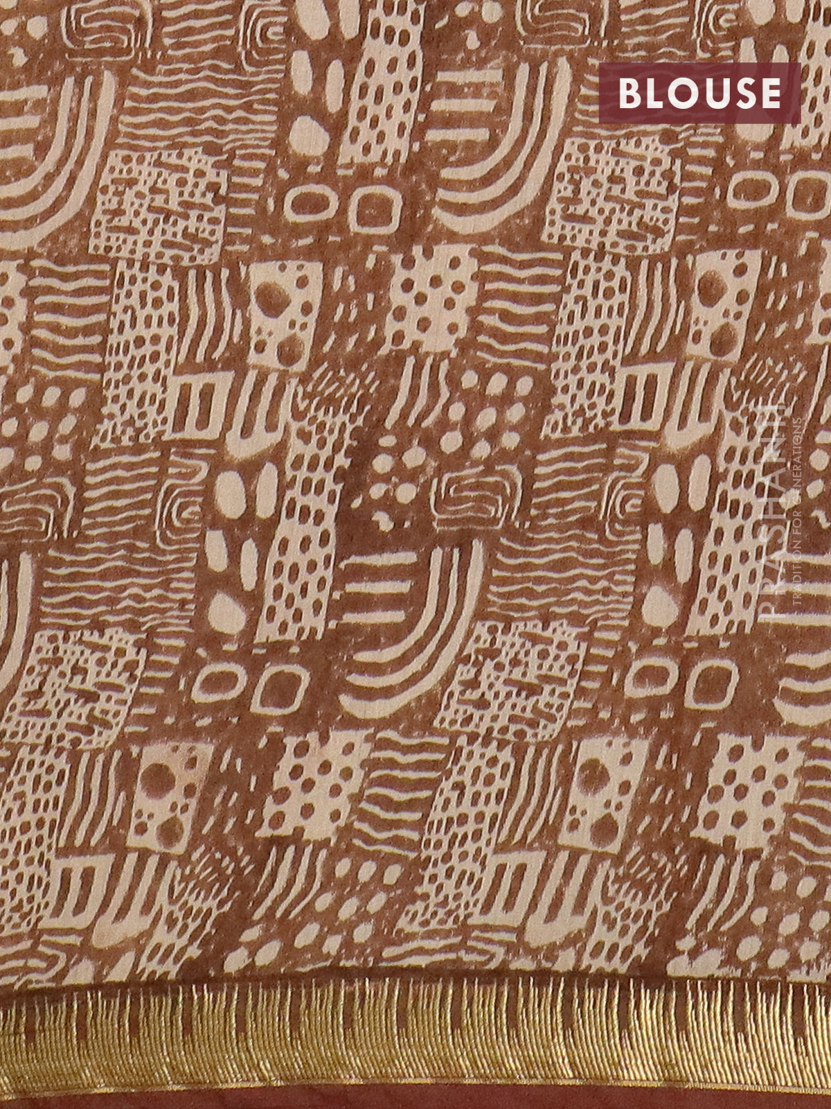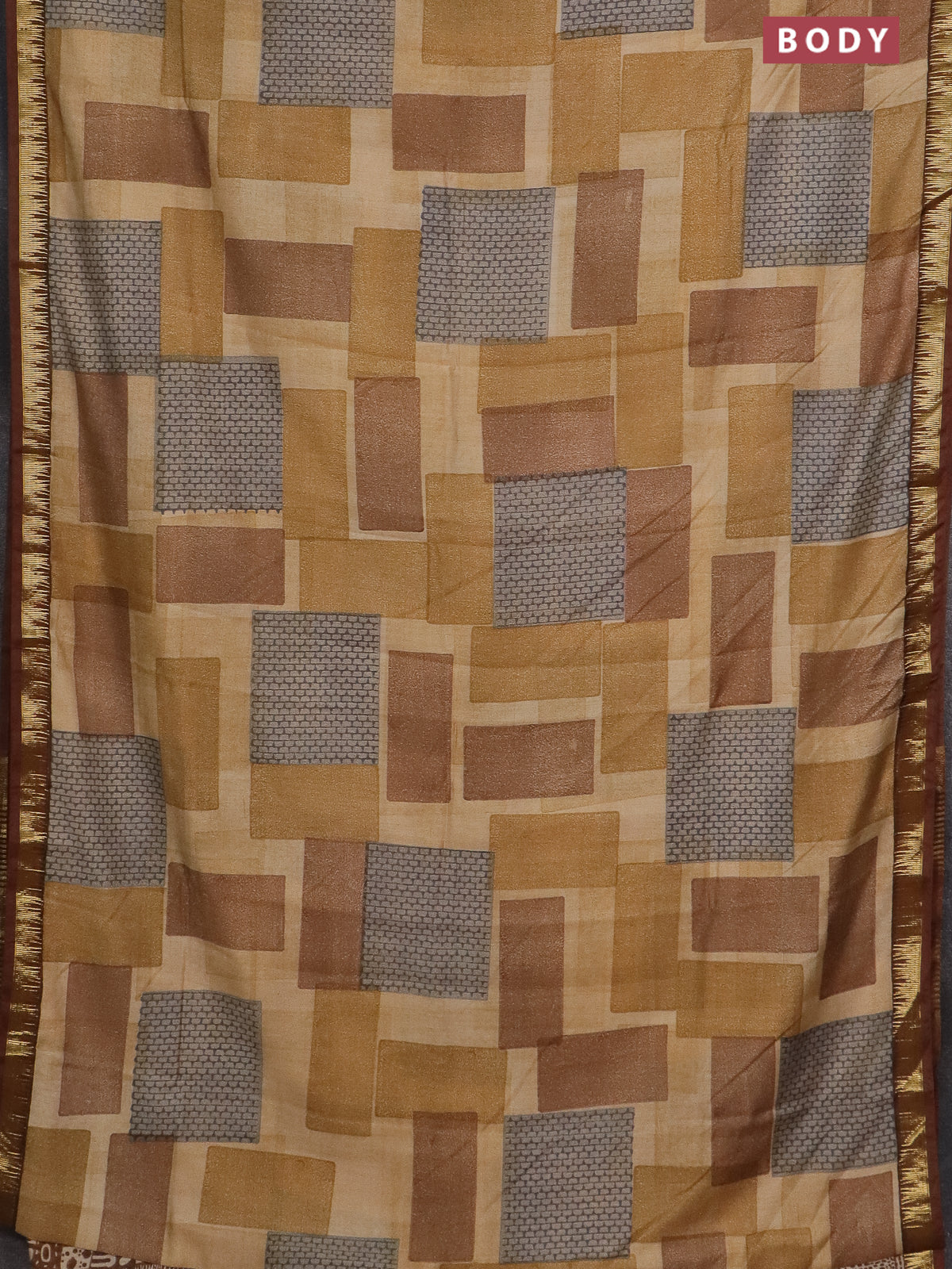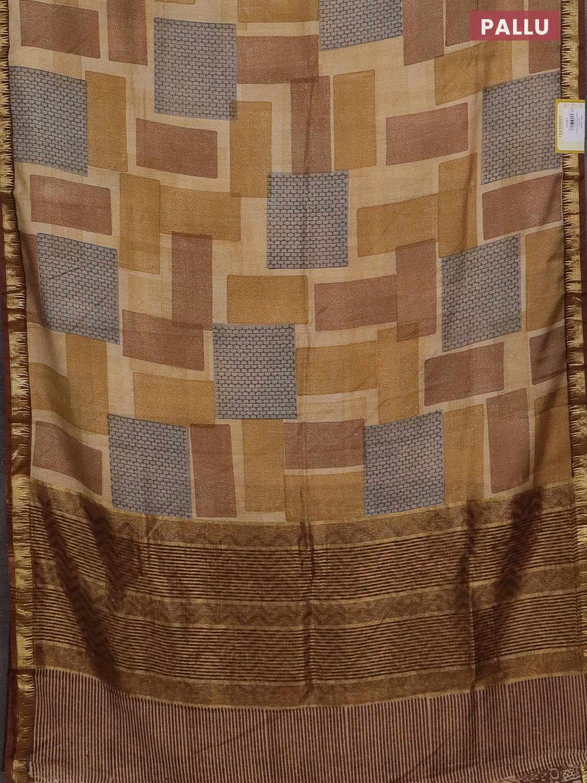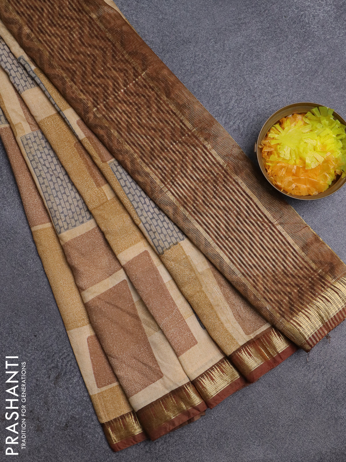 Semi chanderi saree sandal and maroon shade with geometric prints and zari woven border