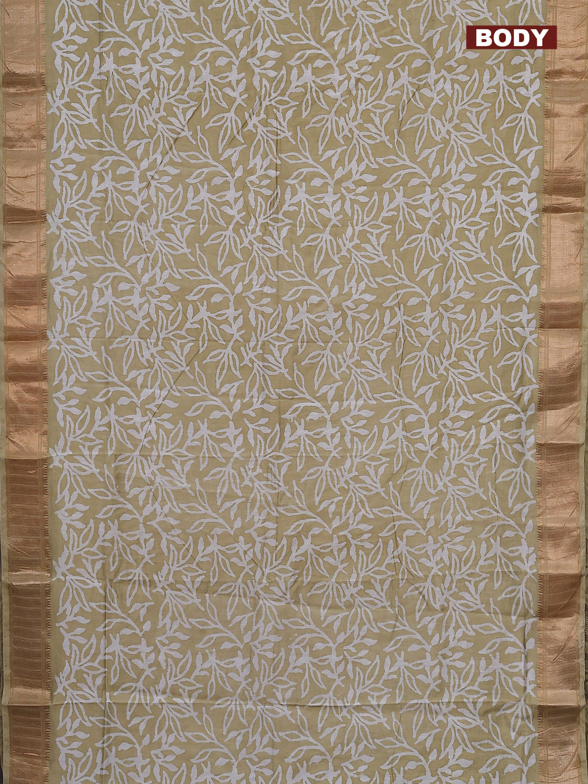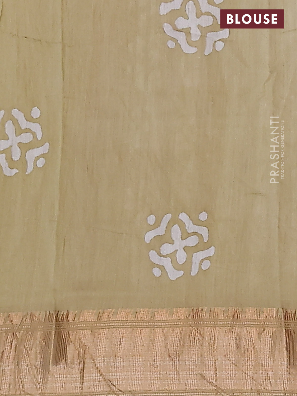 Semi chanderi saree sandal and off white with allover batik prints and zari woven border