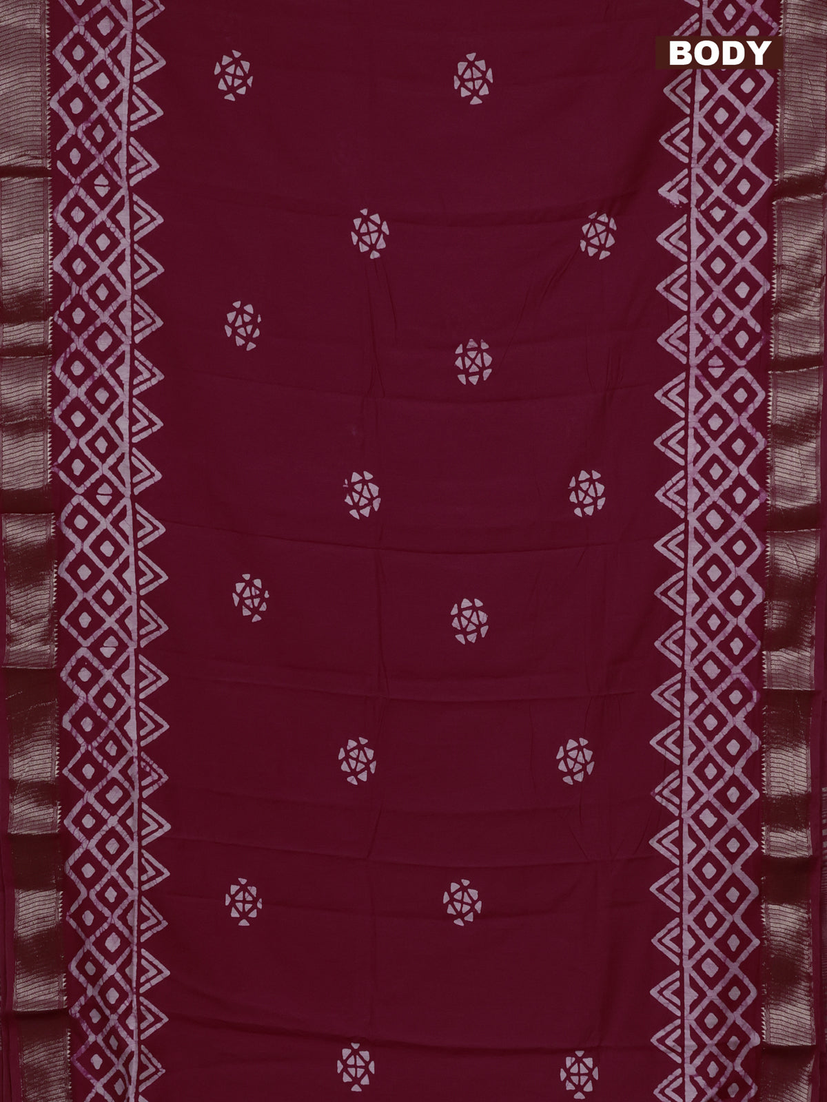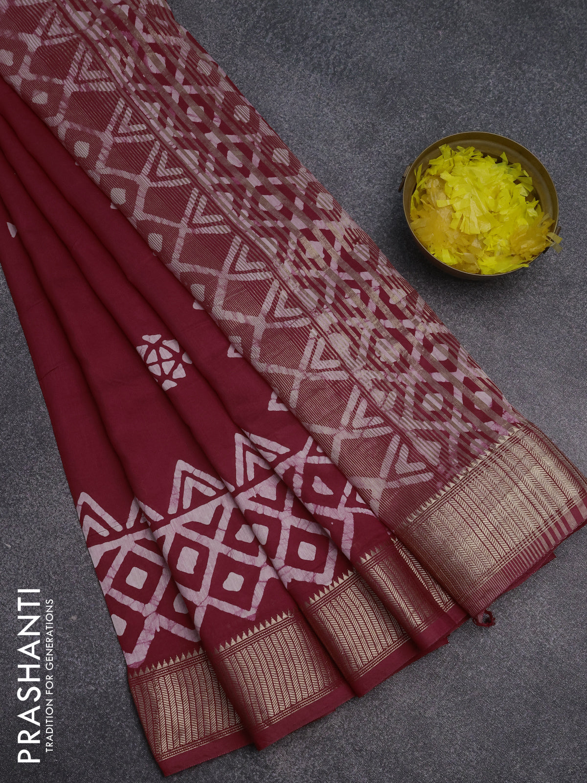 Semi chanderi saree tomato red with batik butta prints and zari woven border