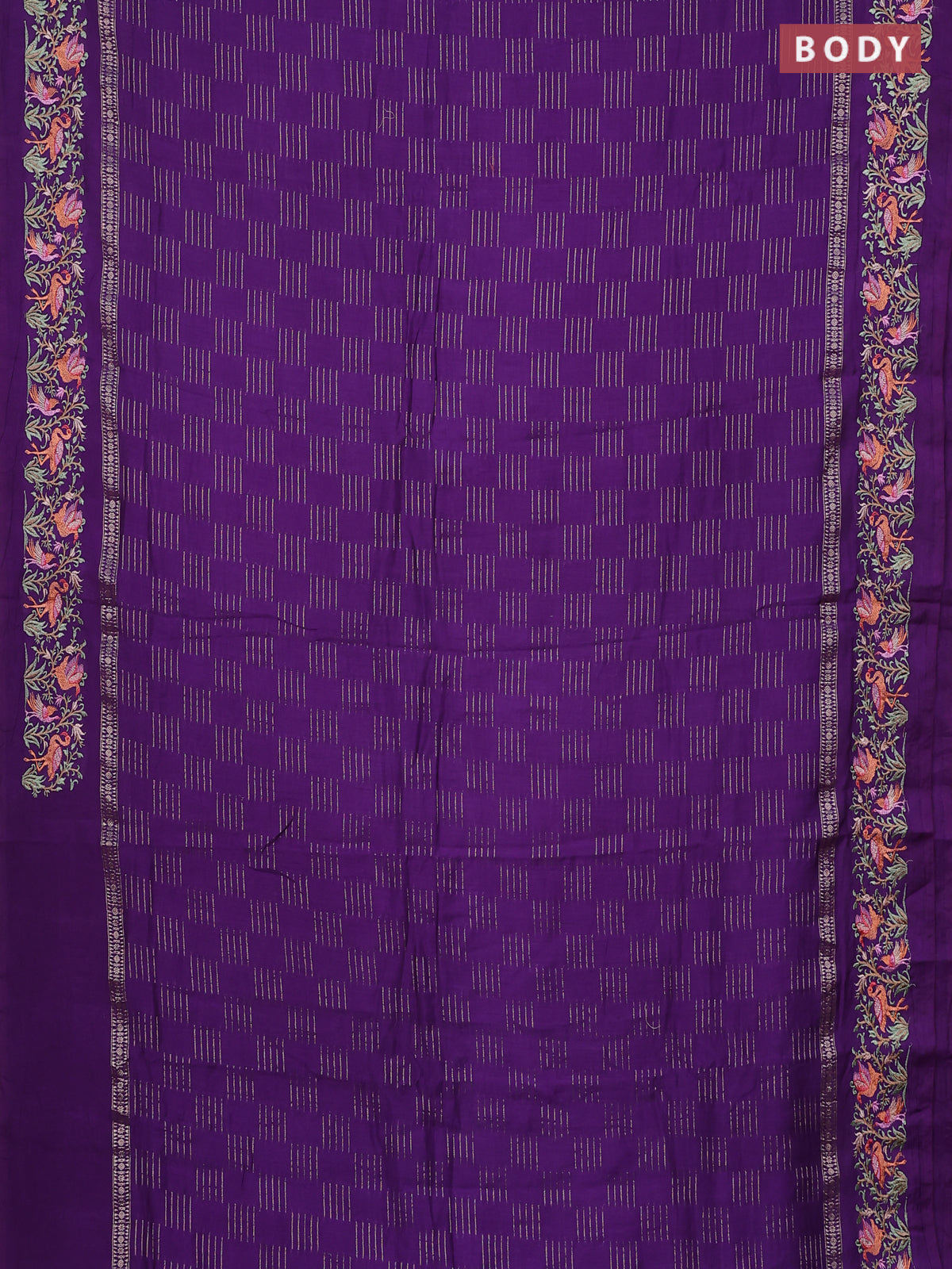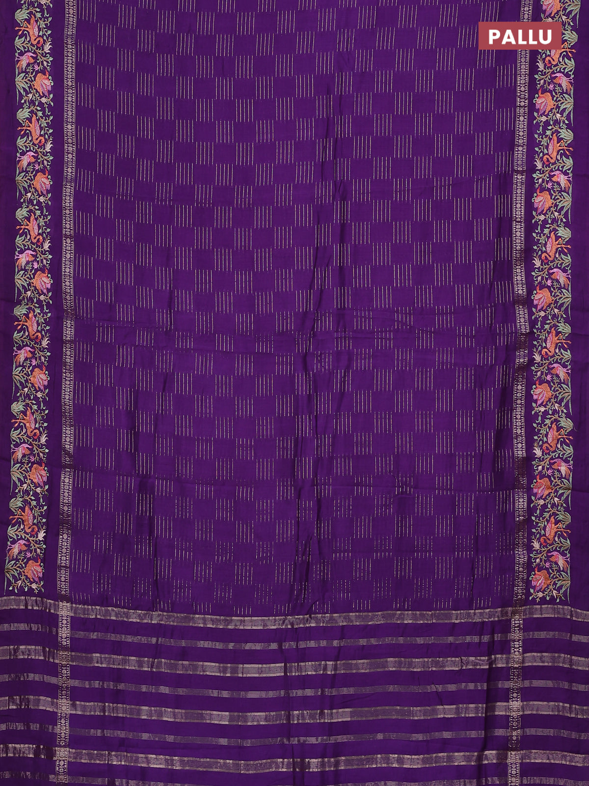 Semi chanderi saree violet with allover zari weaves and embroidery border