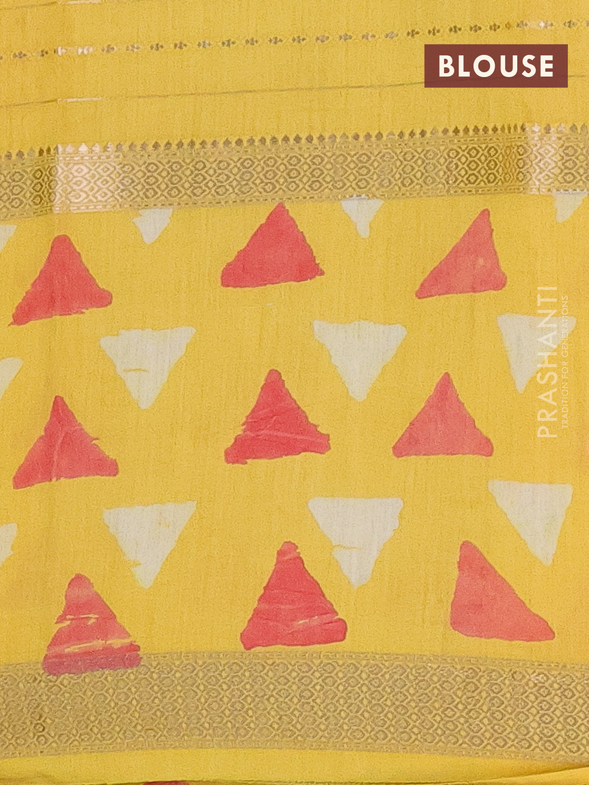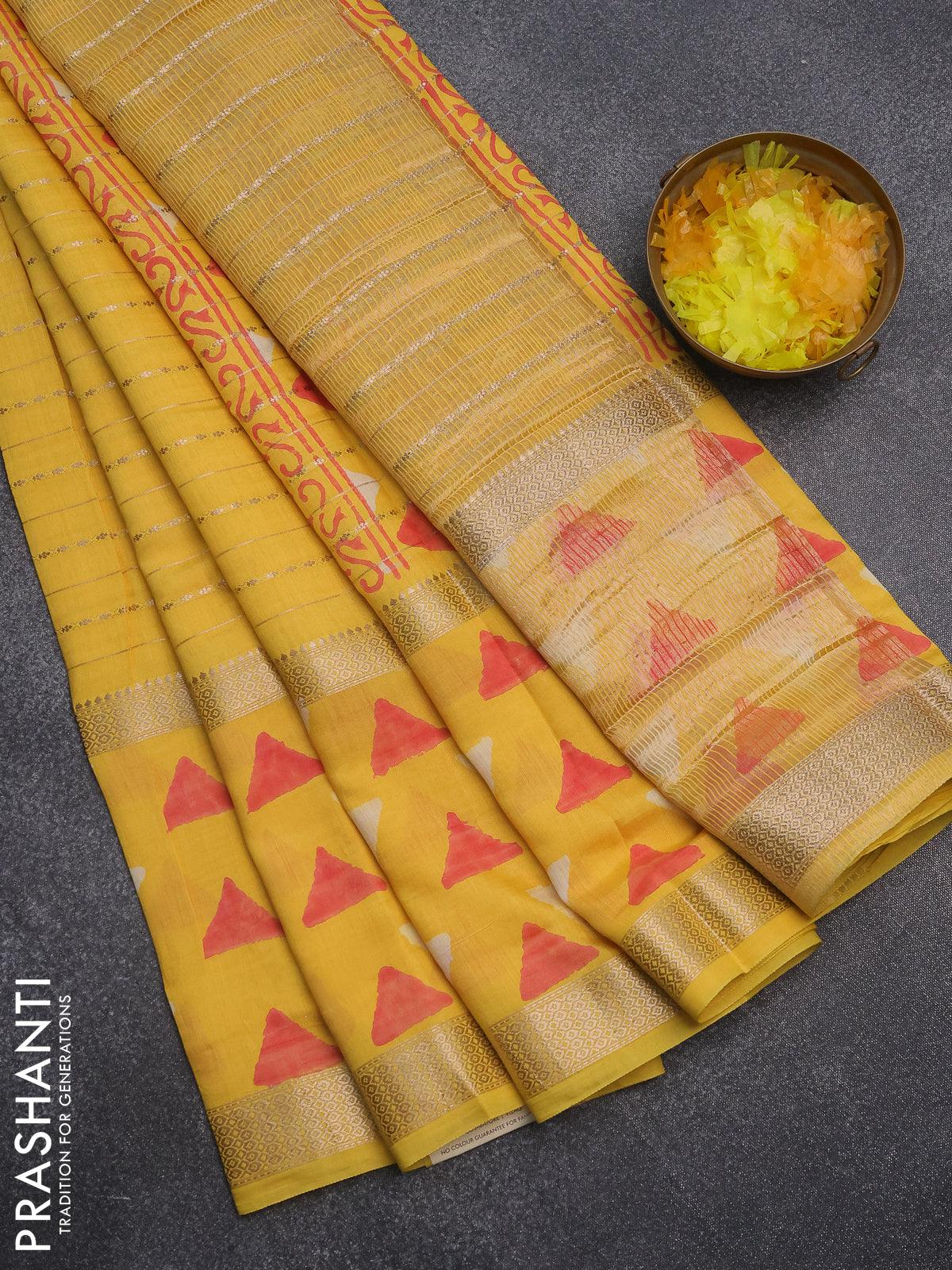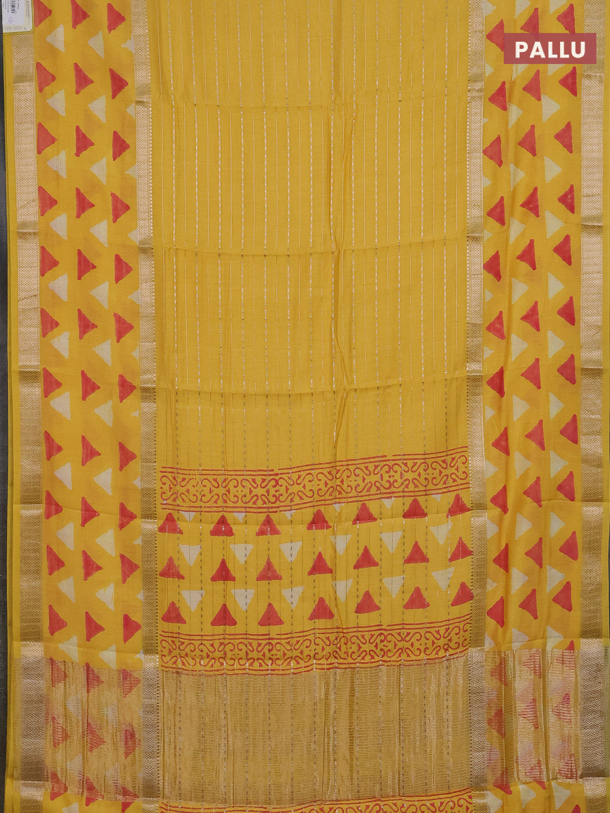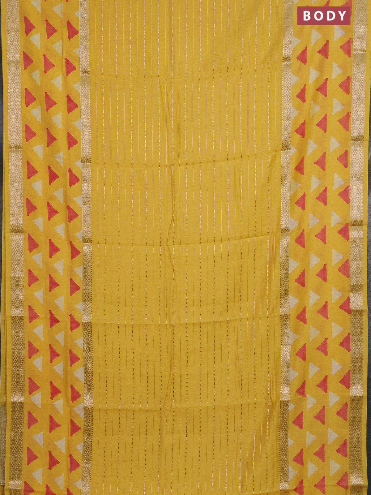 Semi chanderi saree yellow with allover zari weaves and long printed zari border