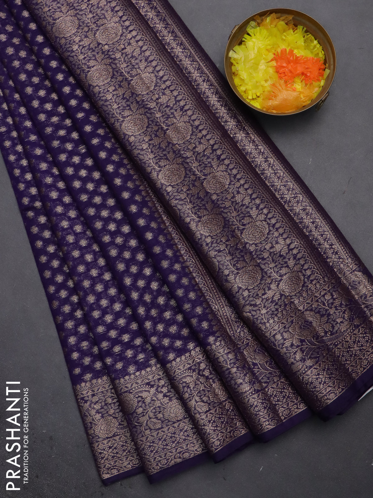 Semi chiniya saree deep violet with woven buttas and woven border