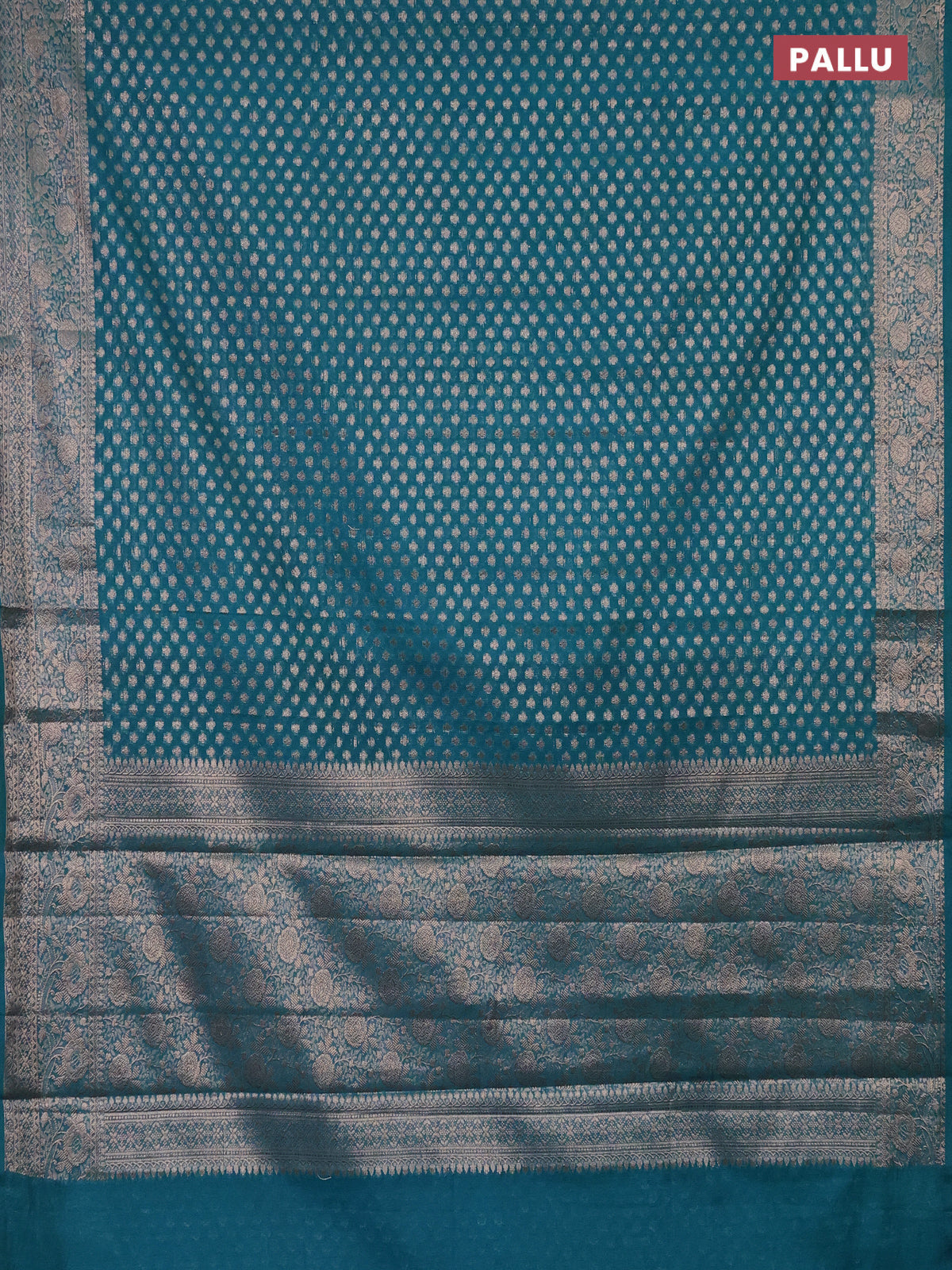 Semi chiniya saree teal blue with woven buttas and woven border