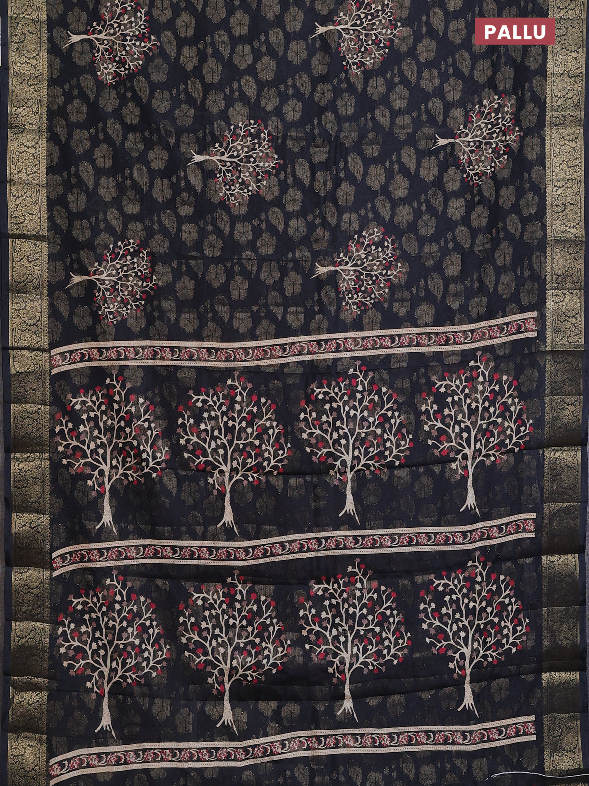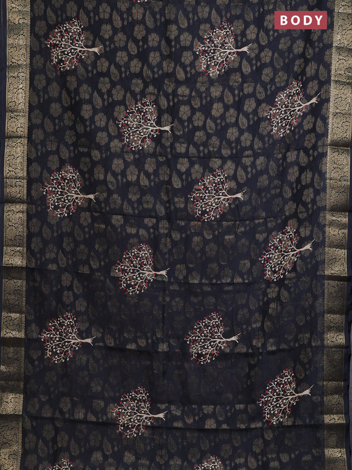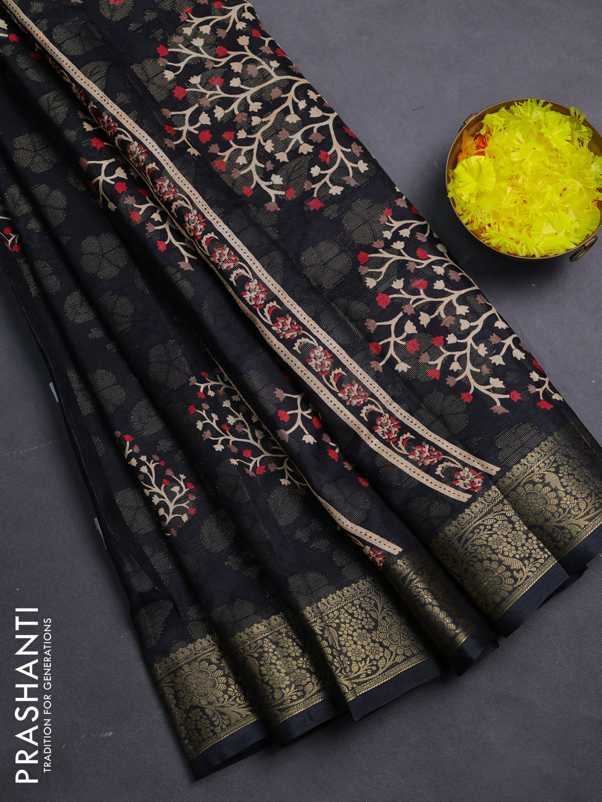 Semi dola saree black with butta prints & zari weaves and zari woven border