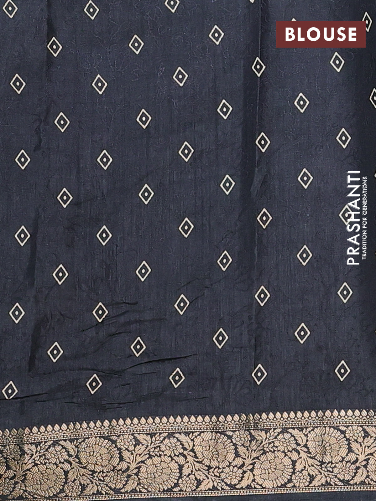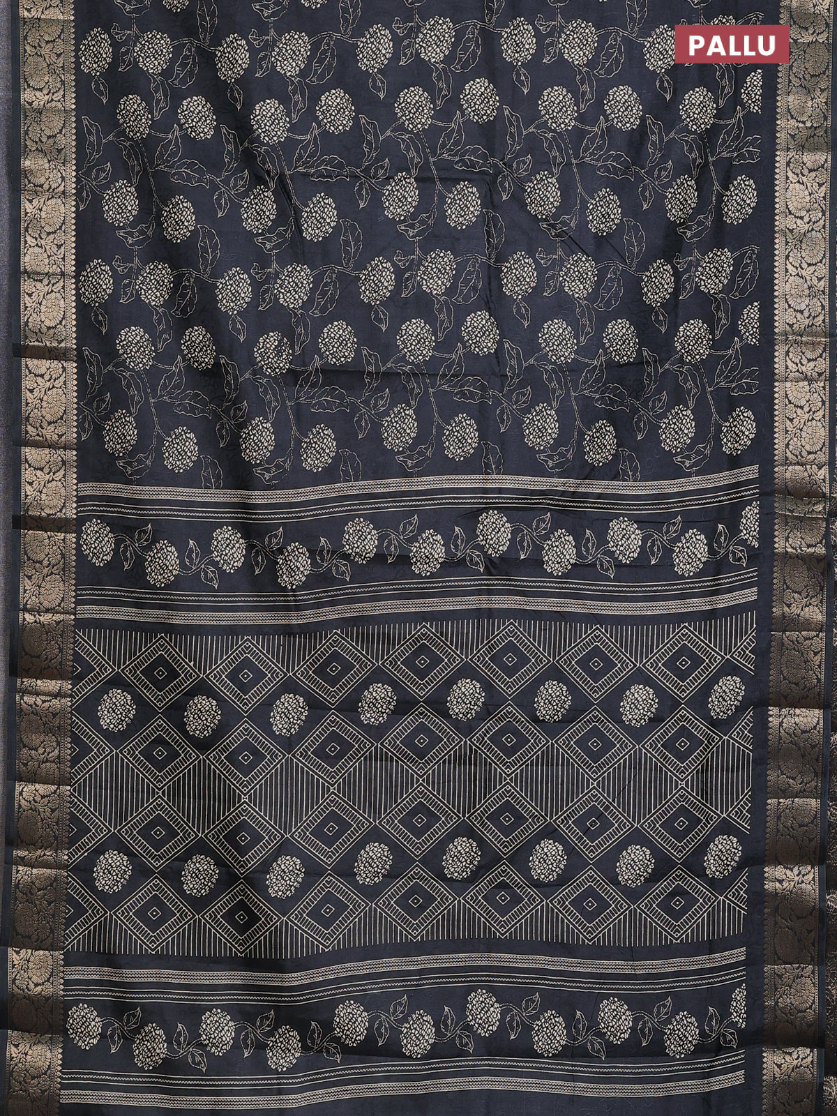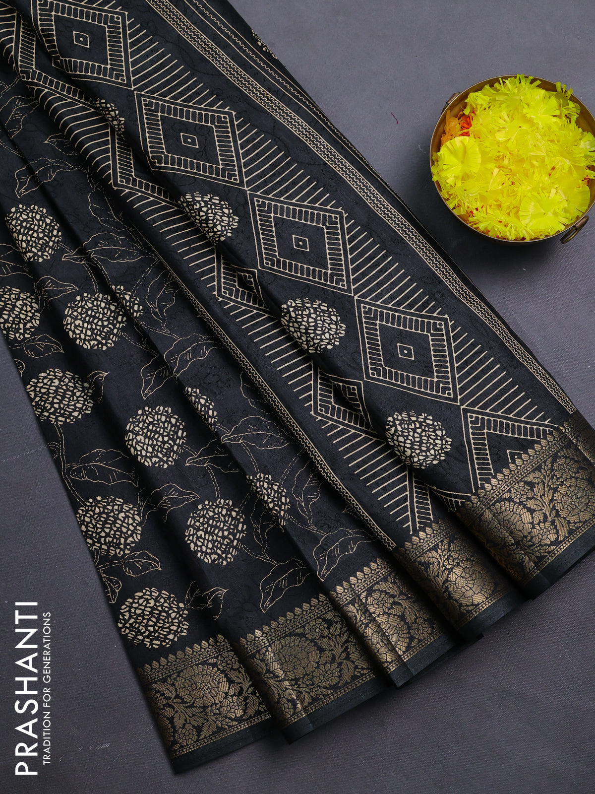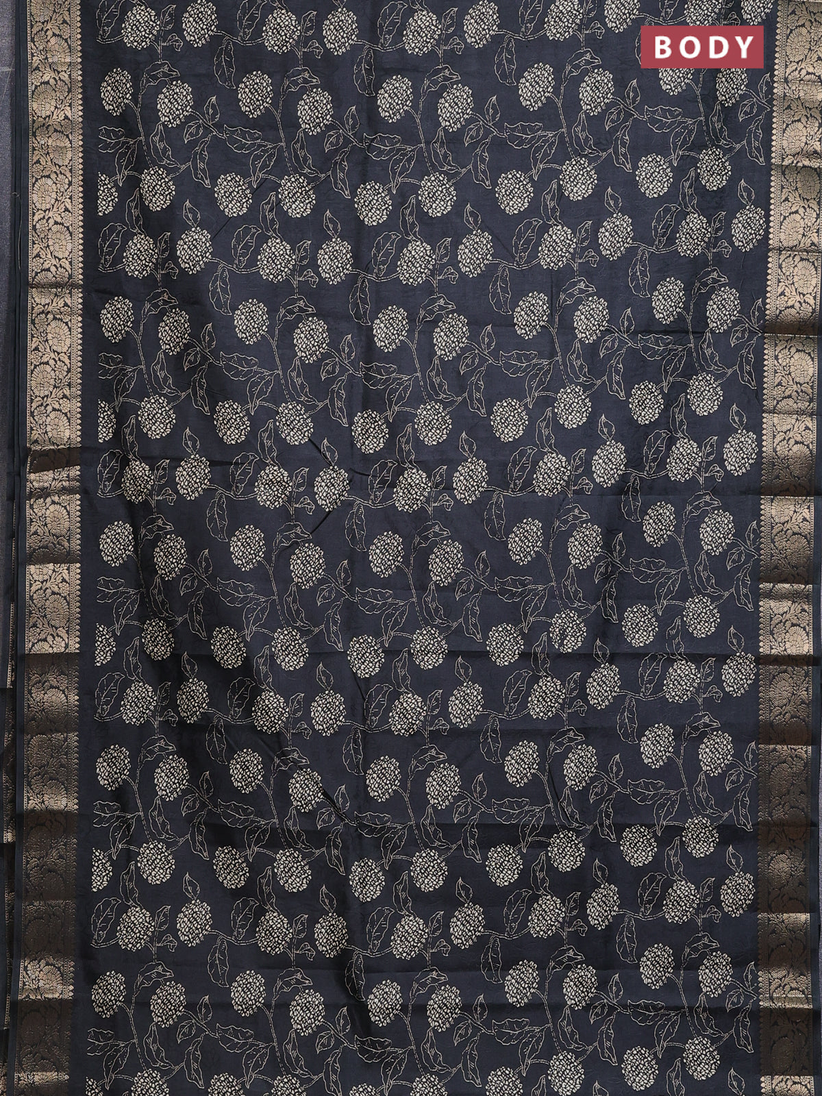 Semi dola saree black with floral prints & self emboss and zari woven border