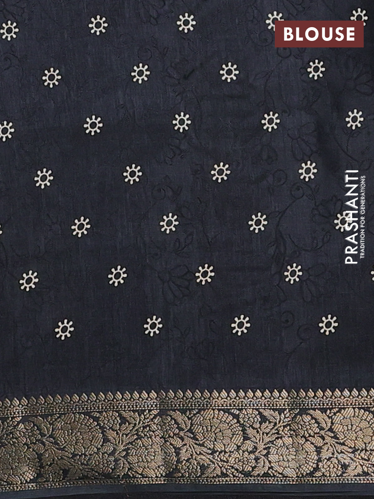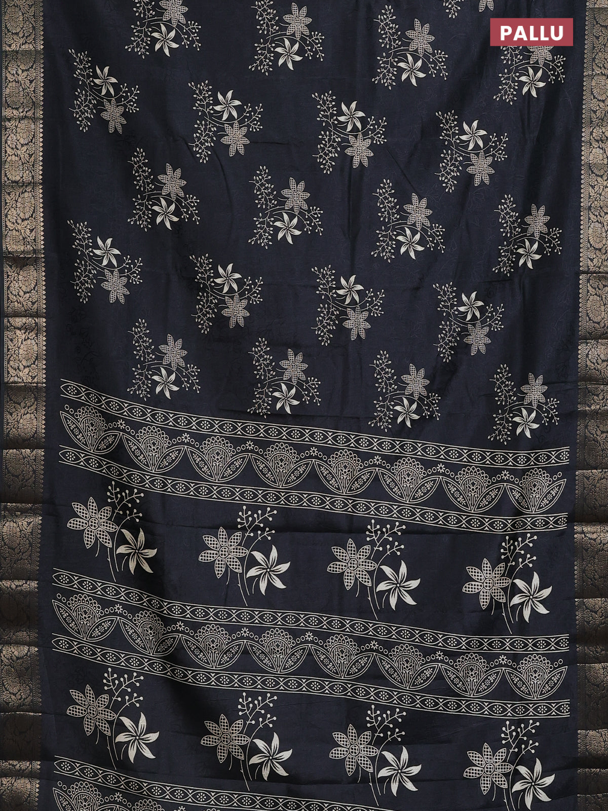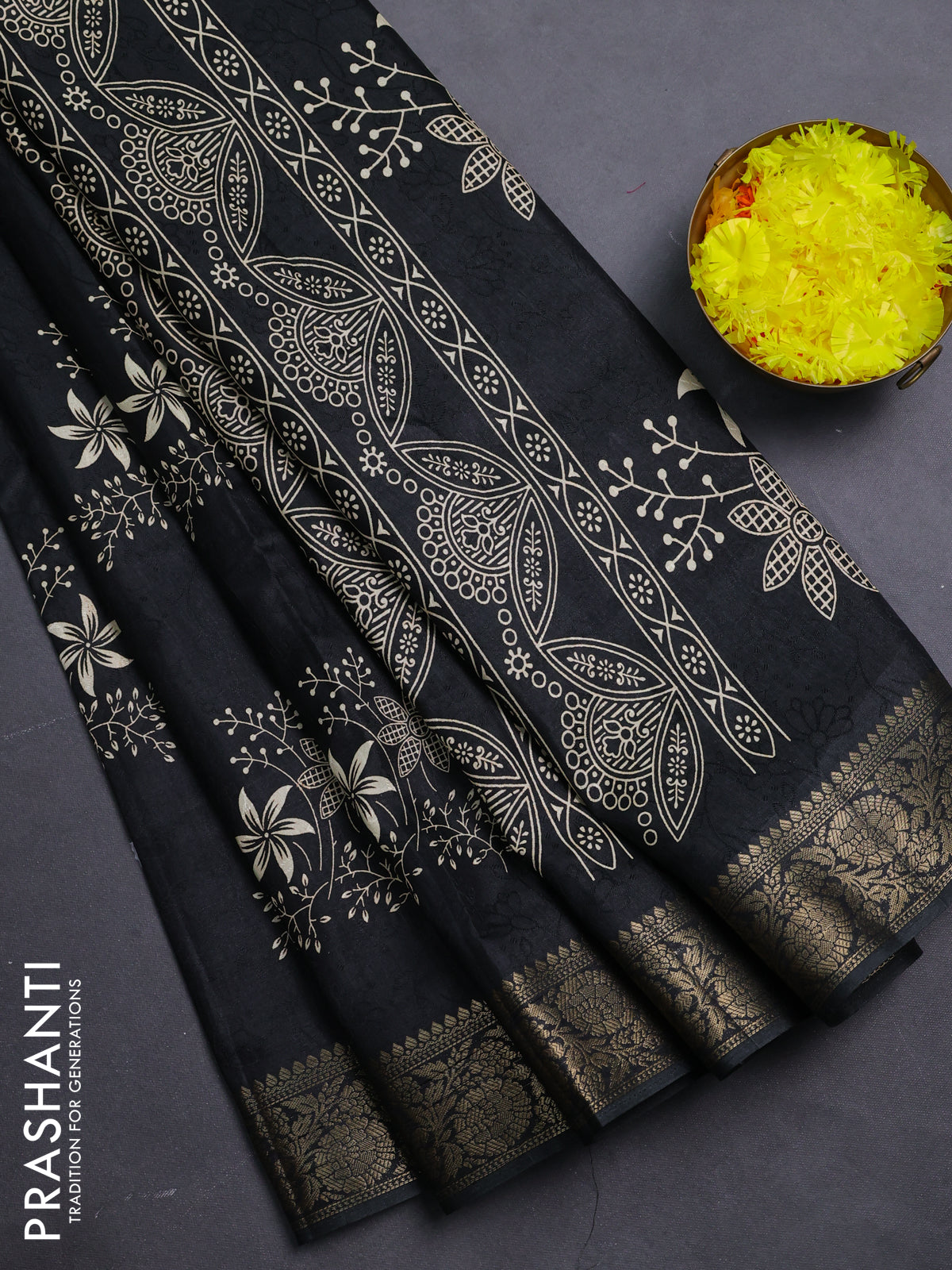 Semi dola saree black with floral prints & self emboss and zari woven border