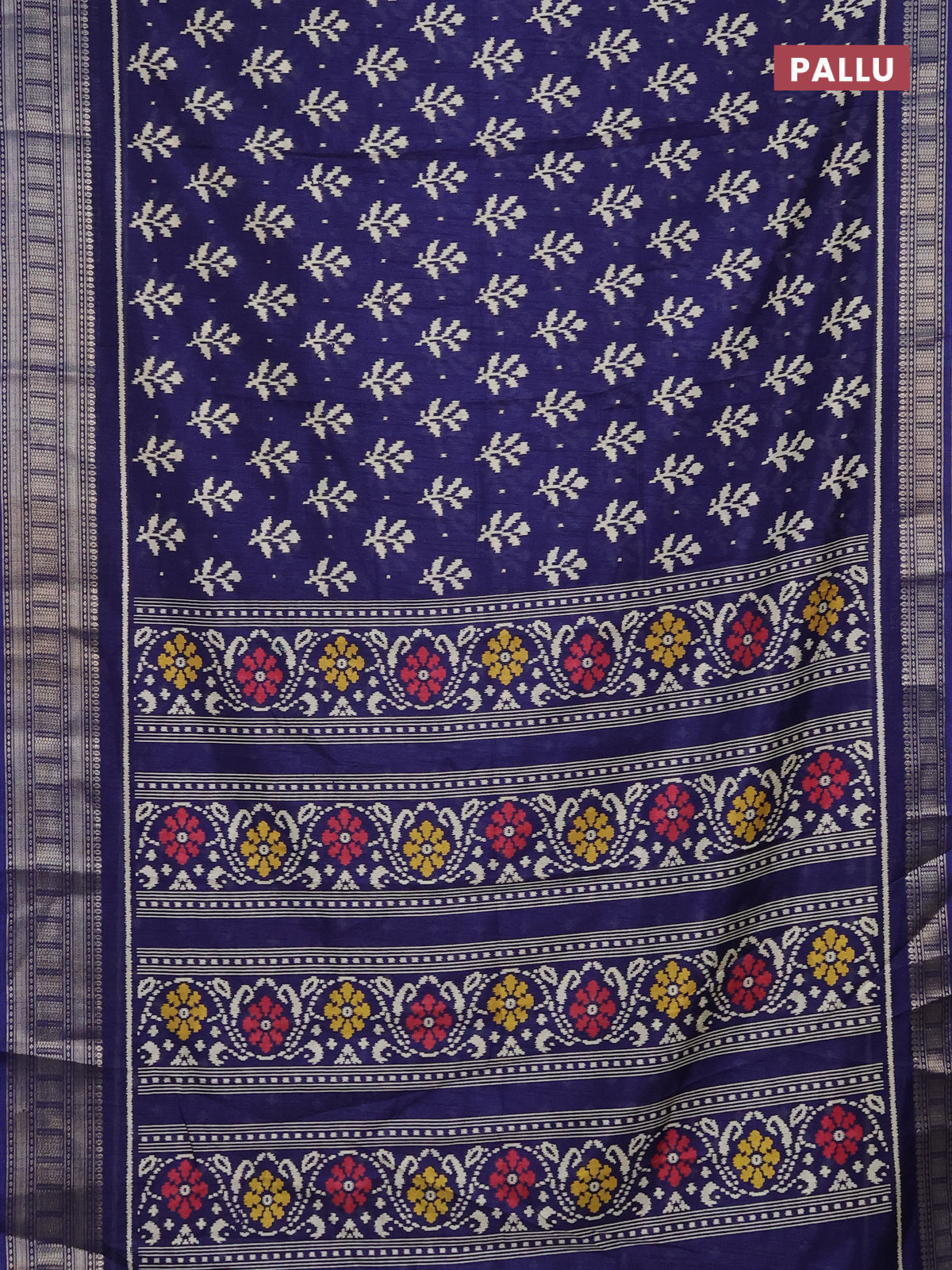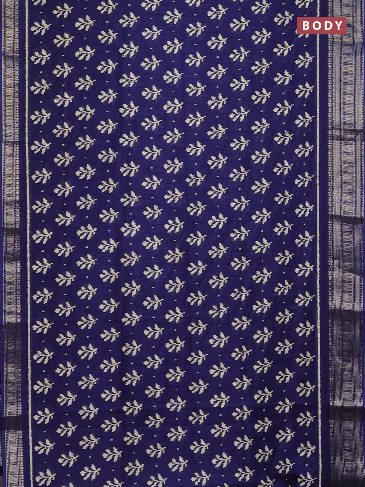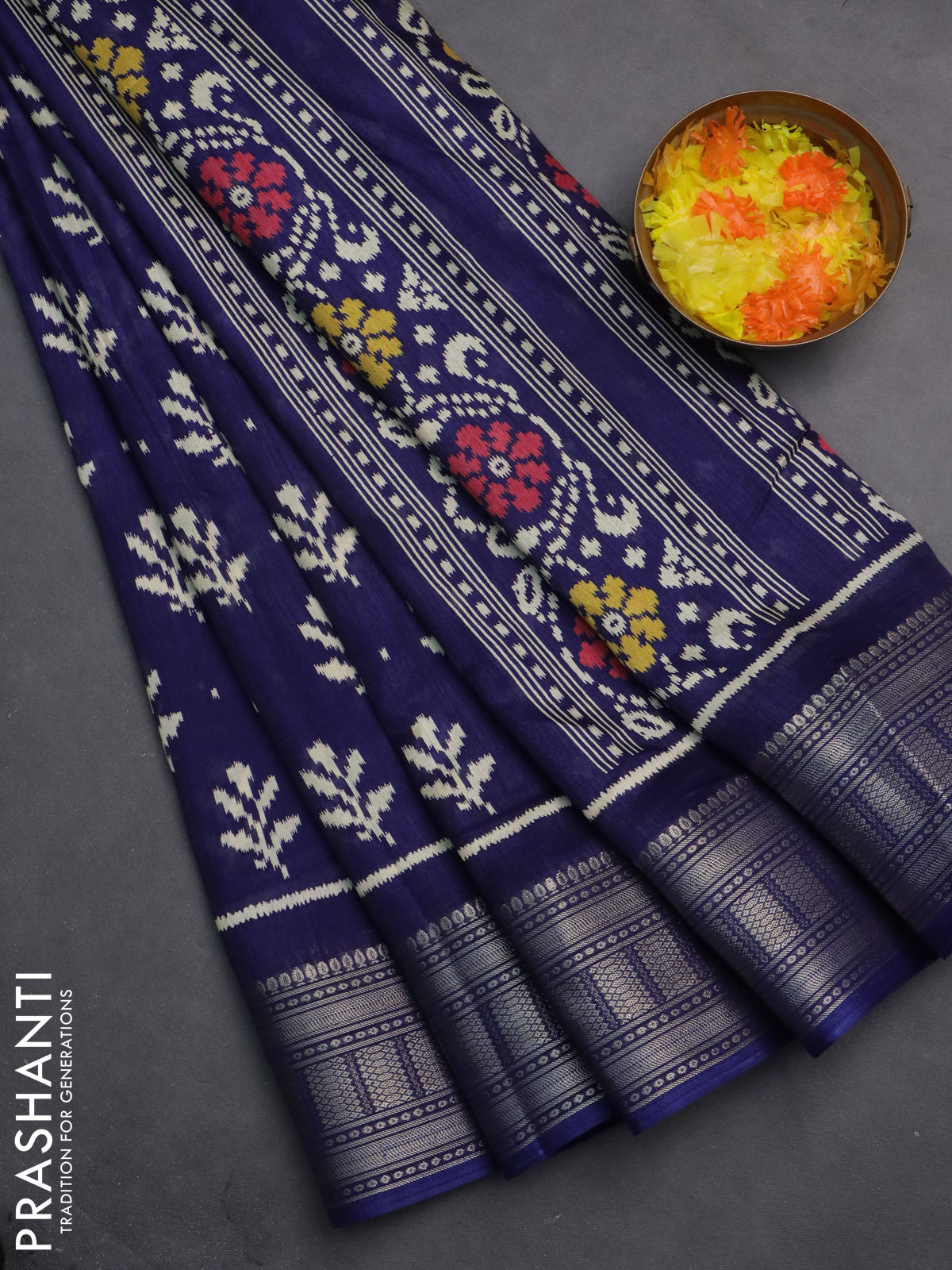 Semi dola saree blue with allover ikat butta prints and zari woven border