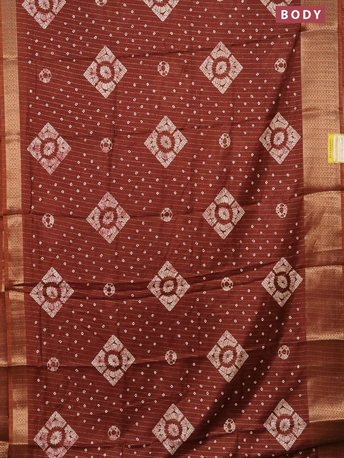 Semi dola saree brown with allover zari weaves & batik prints and zari woven border