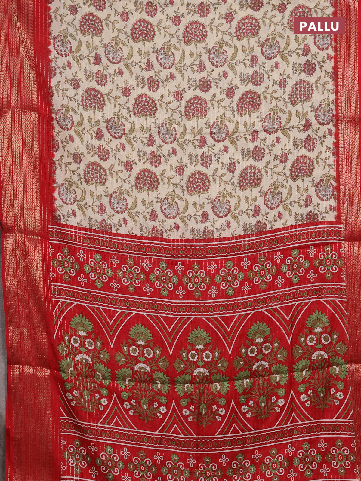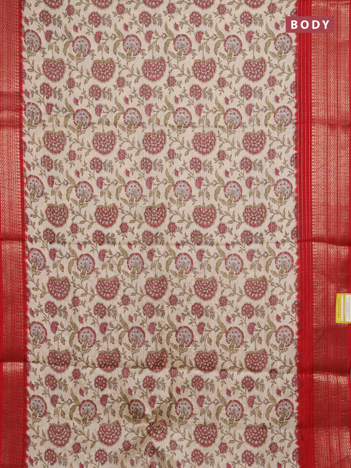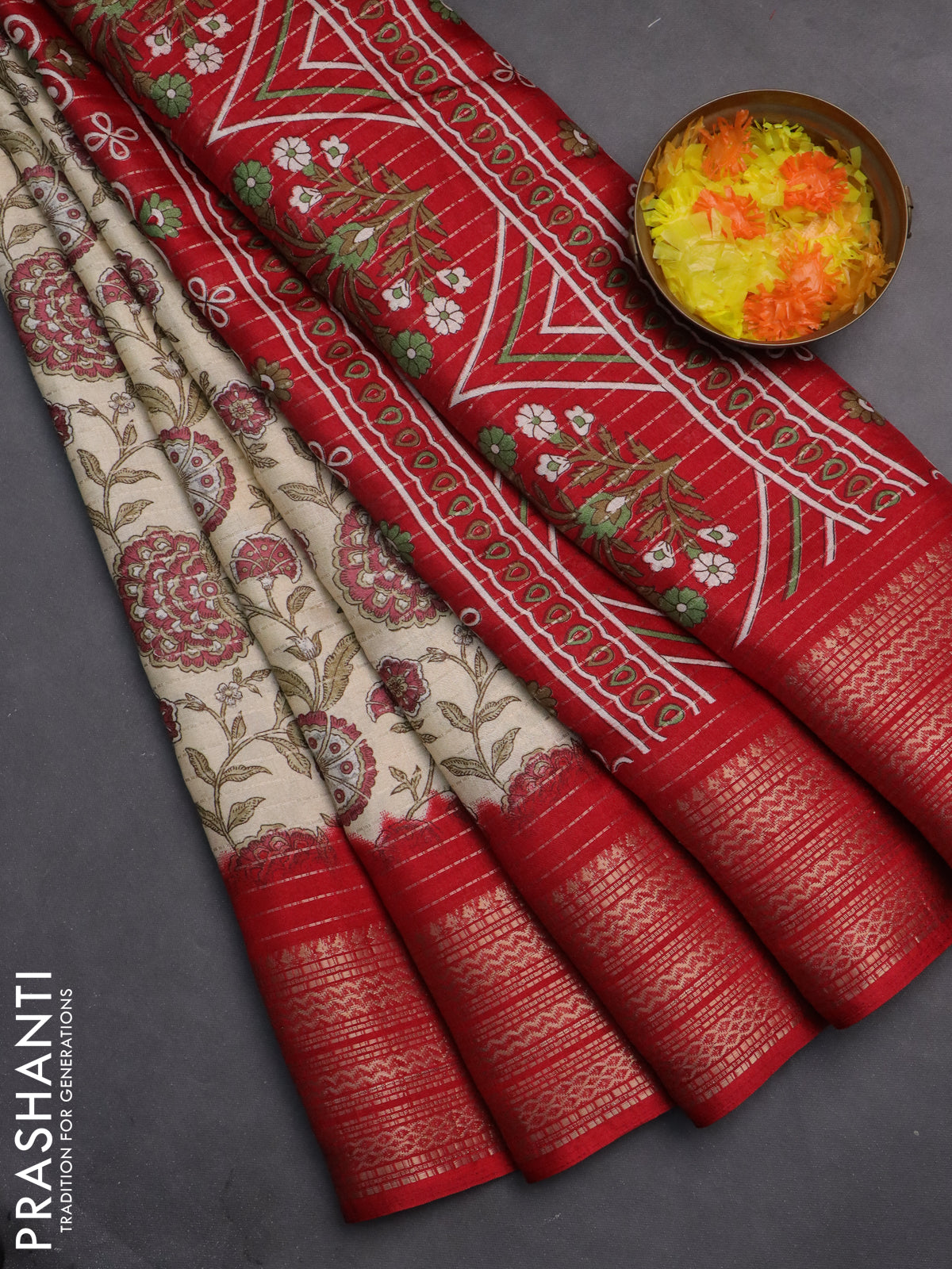 Semi dola saree cream and maroon with allover zari weaves & kalamkari prints and zari woven border