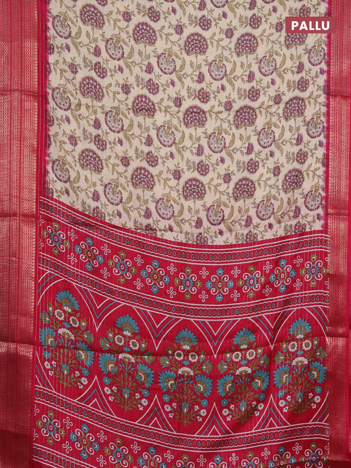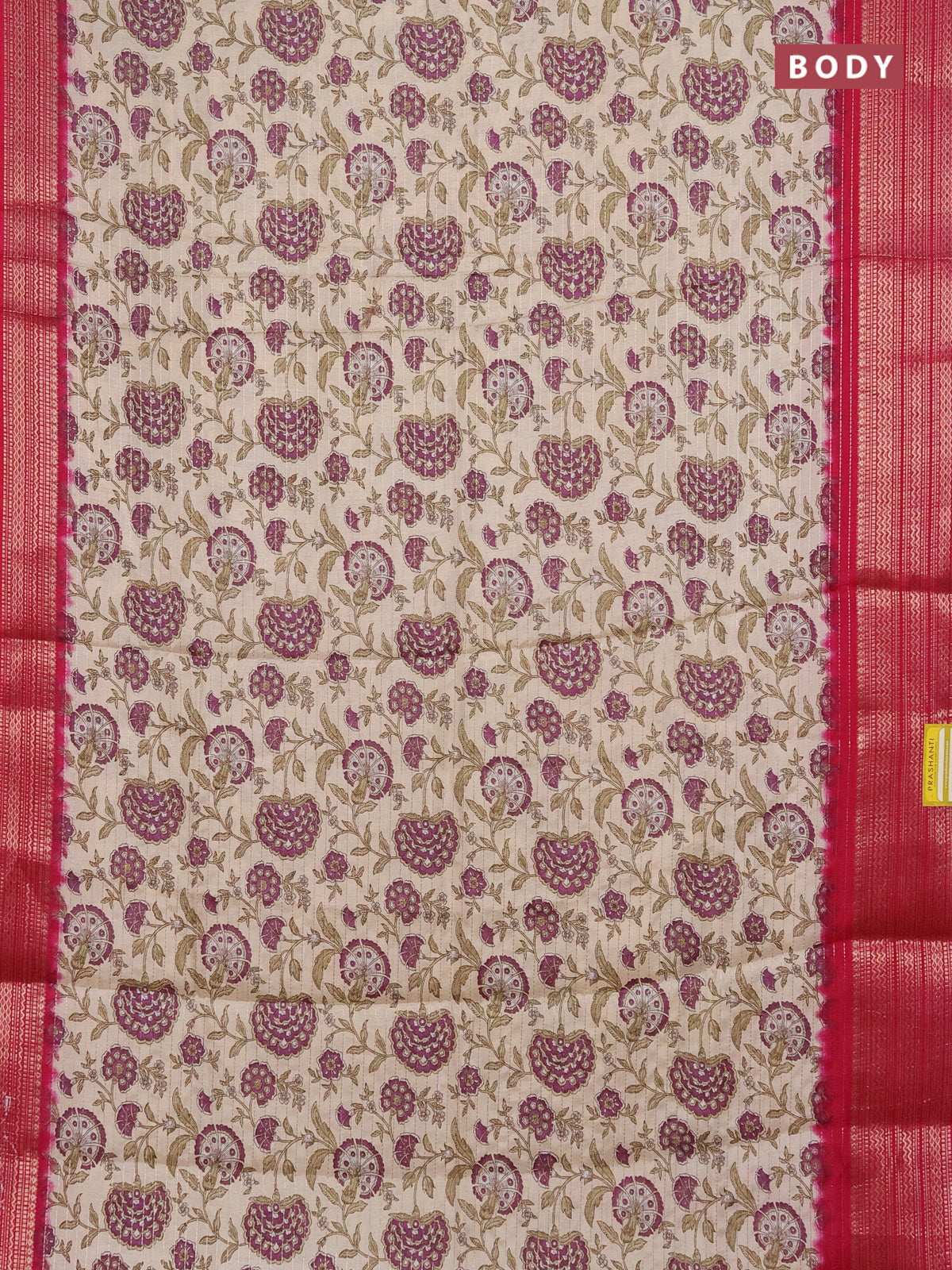Semi dola saree cream and pink with allover zari weaves & kalamkari prints and zari woven border