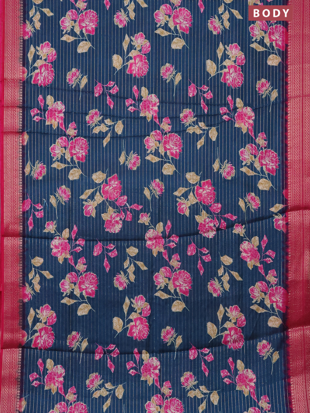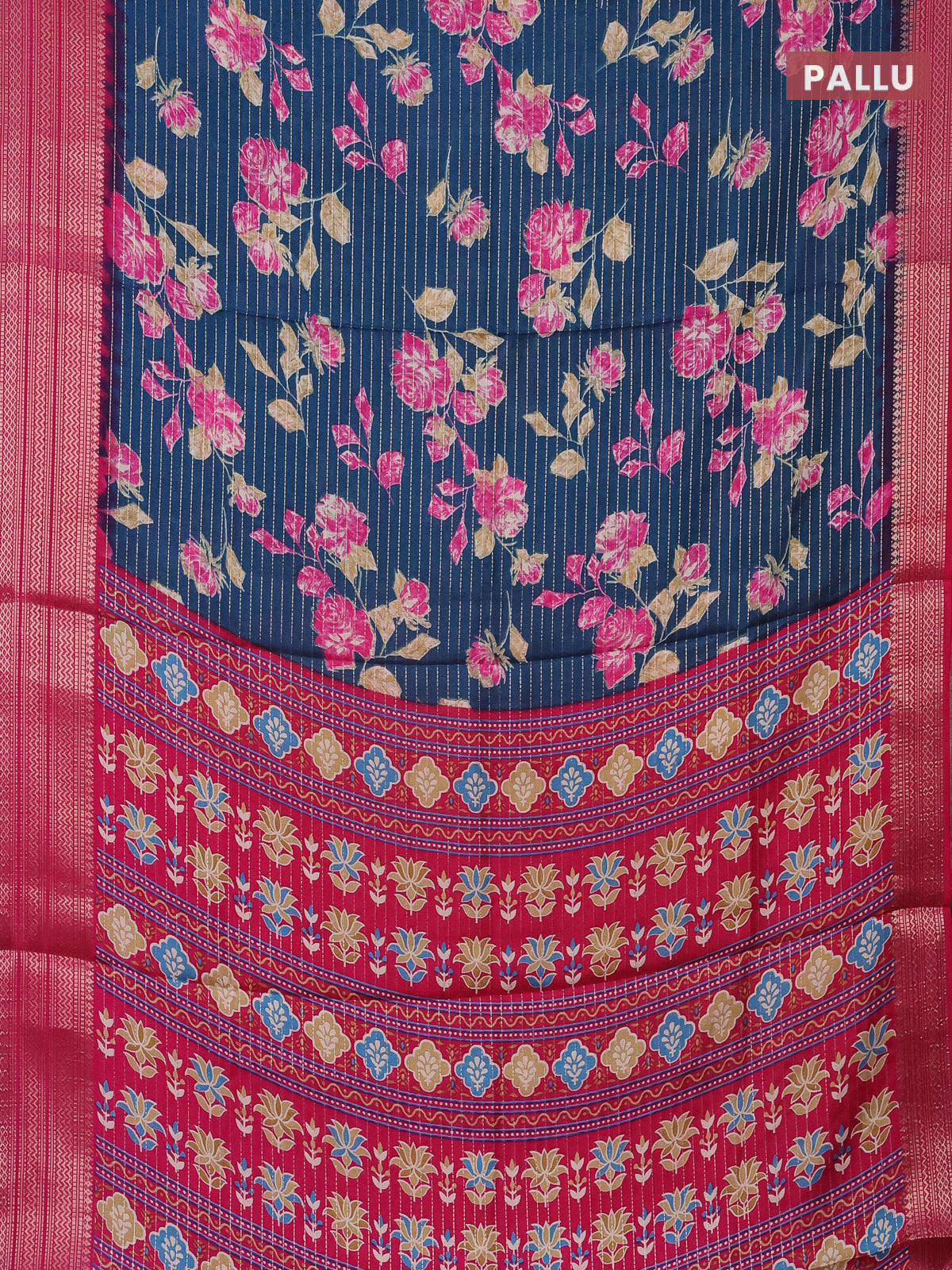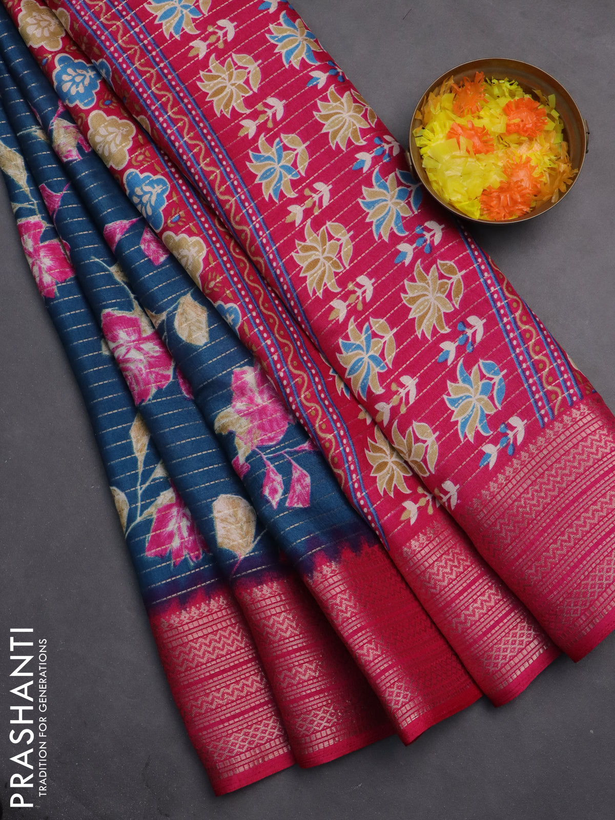 Semi dola saree cs blue and pink with allover zari weaves & floral prints and zari woven border