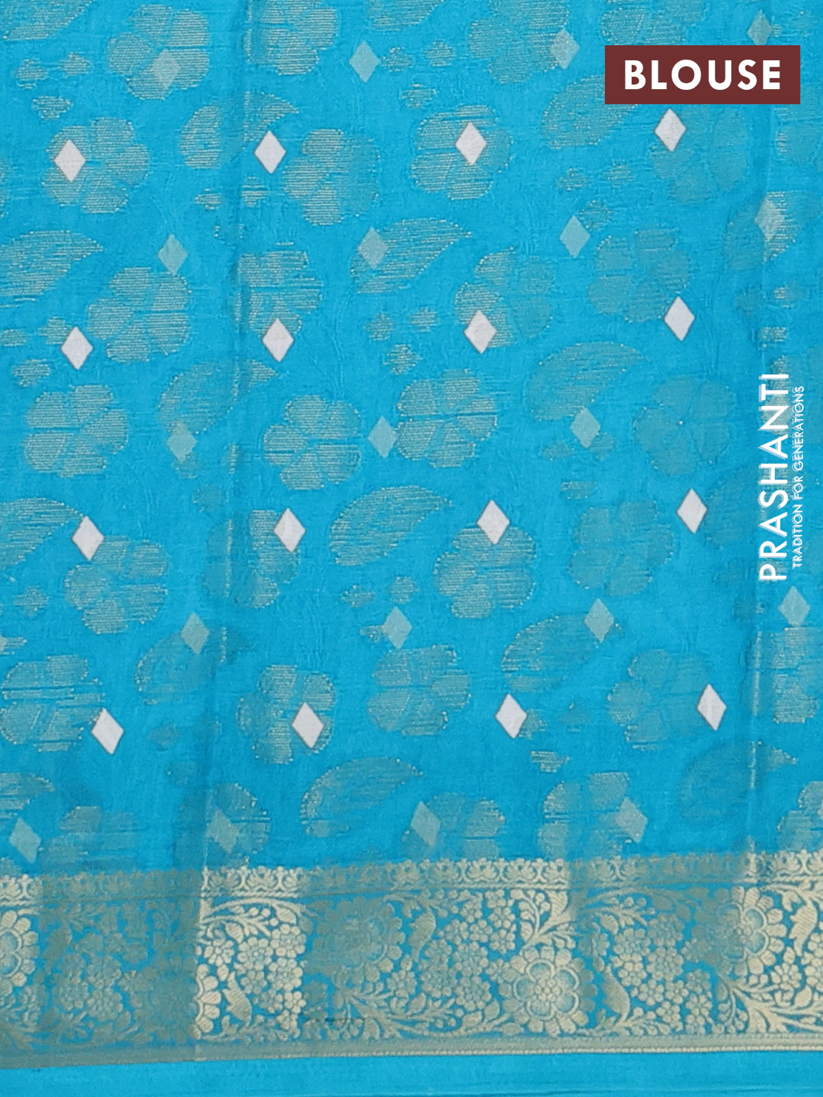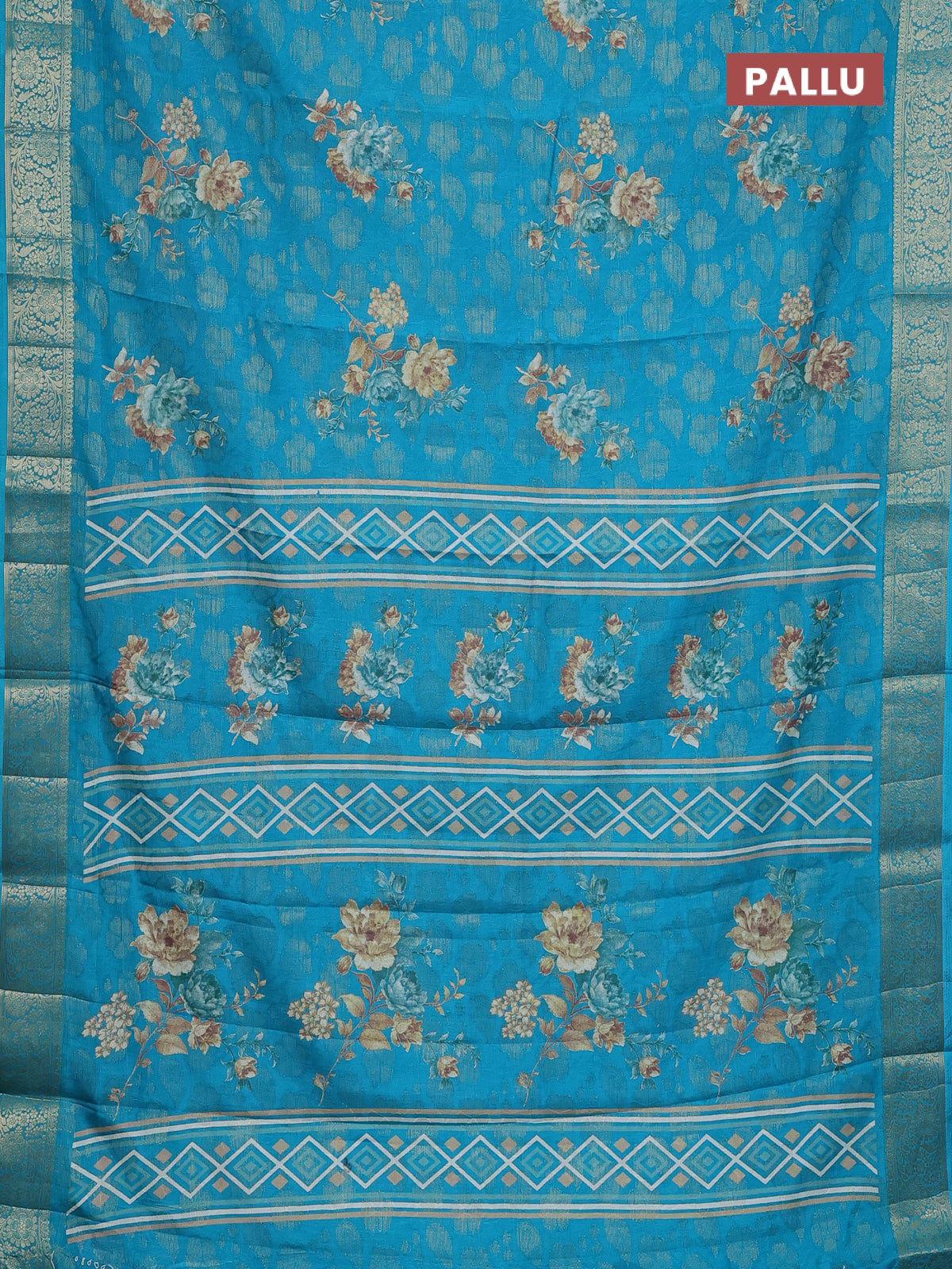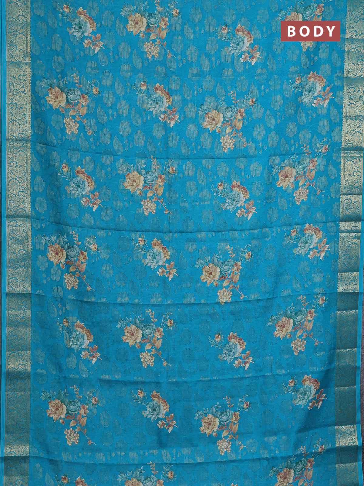 Semi dola saree cs blue with floral prints & zari weaves and zari woven border