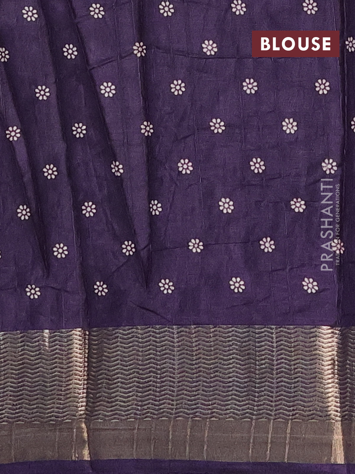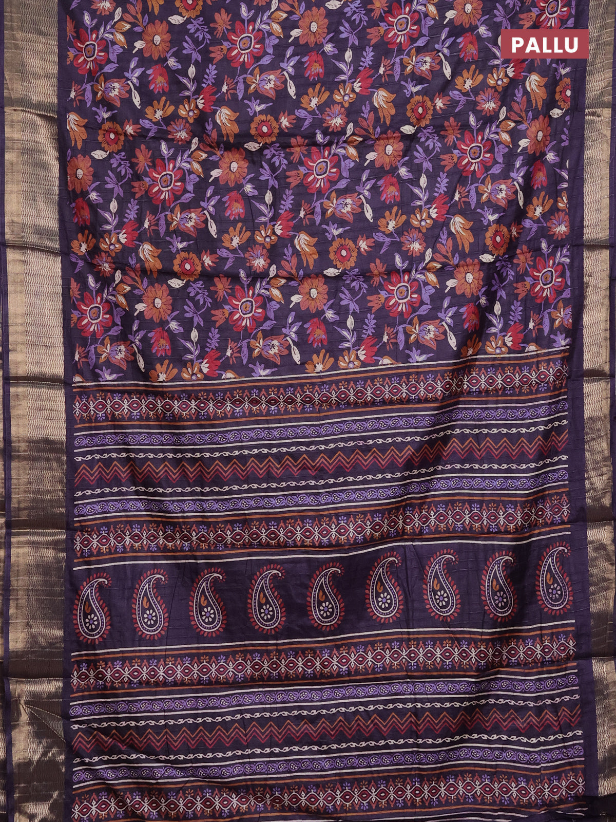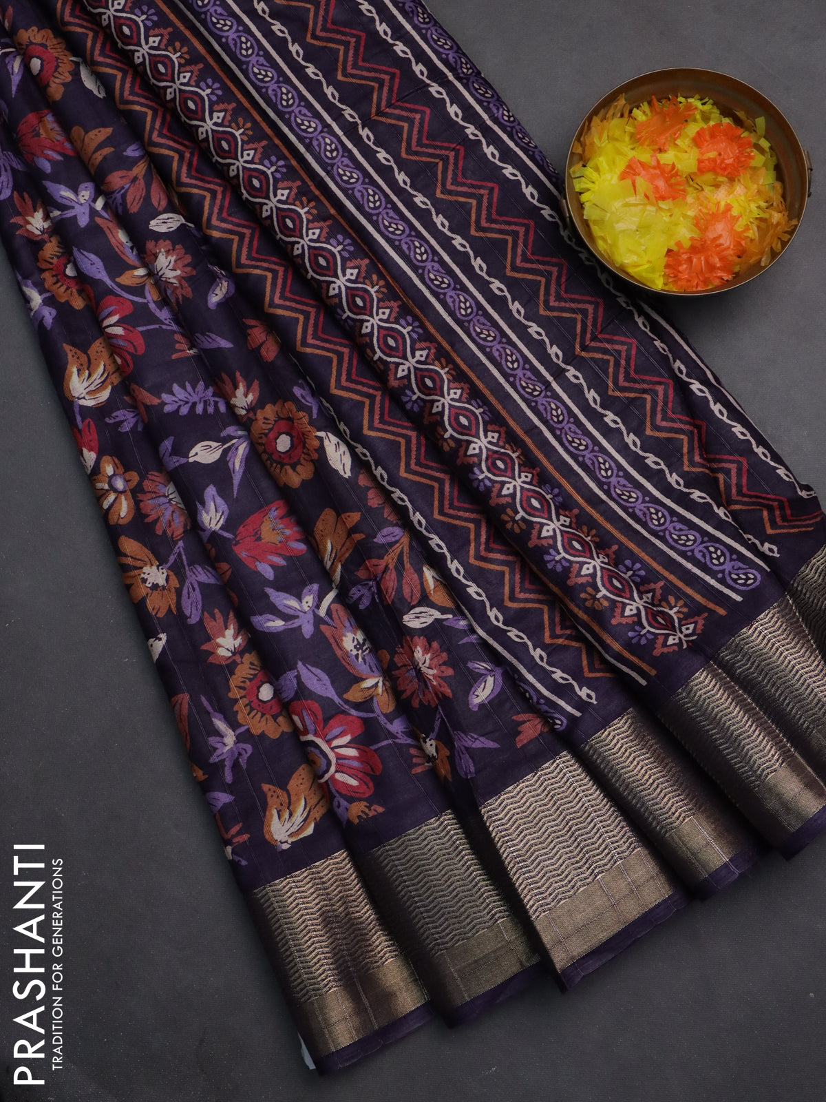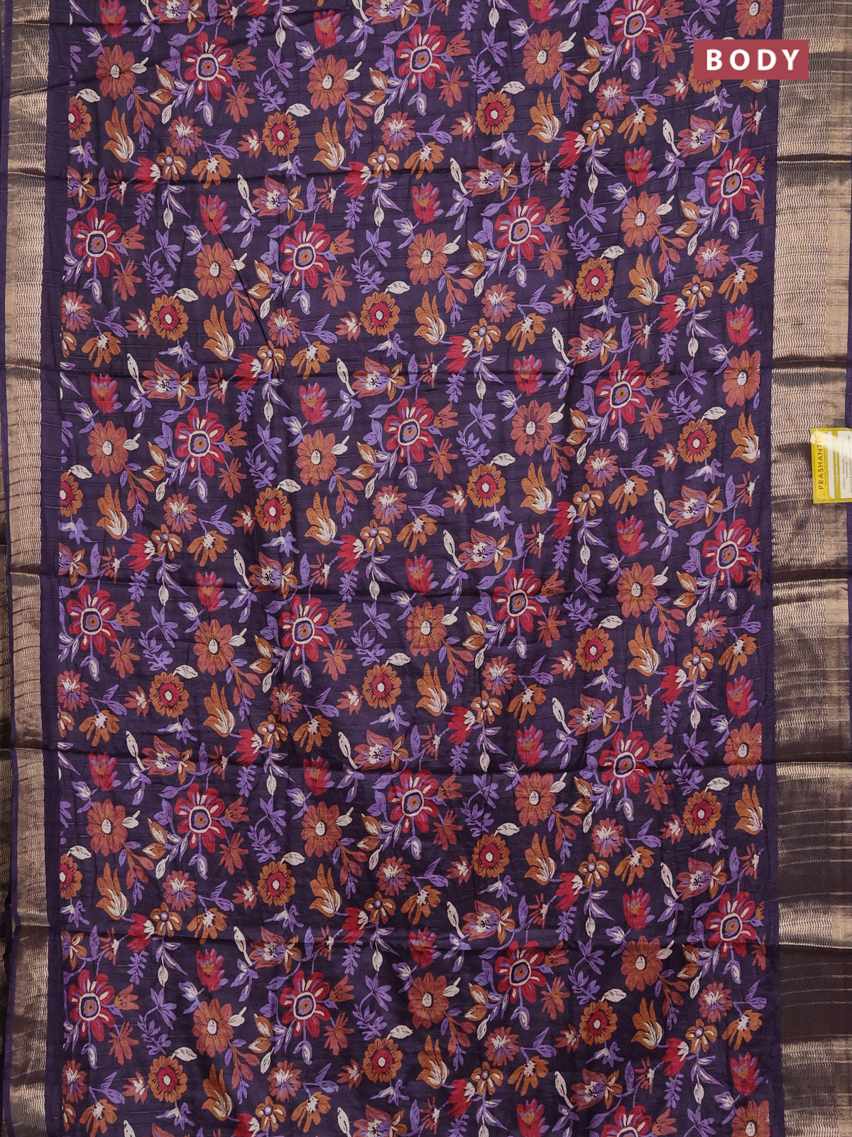 Semi dola saree deep jamun with allover floral prints and zari woven border