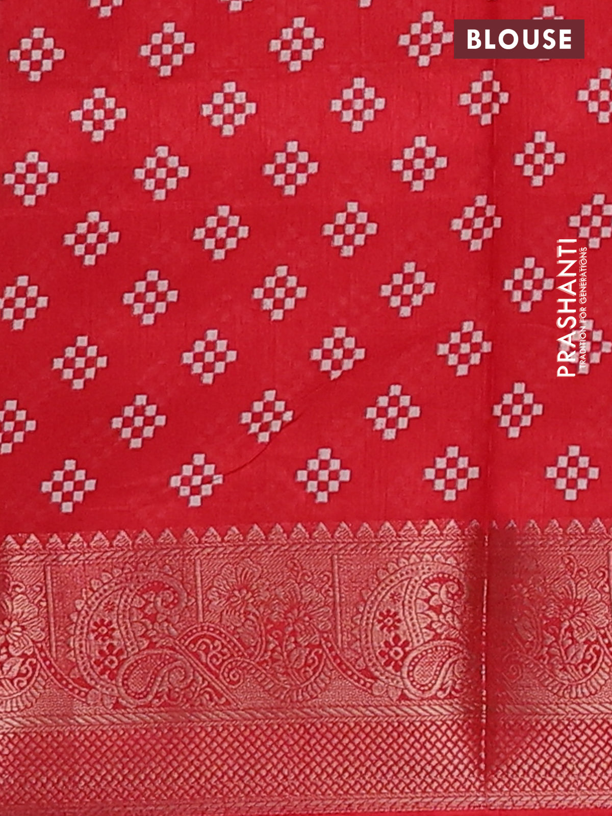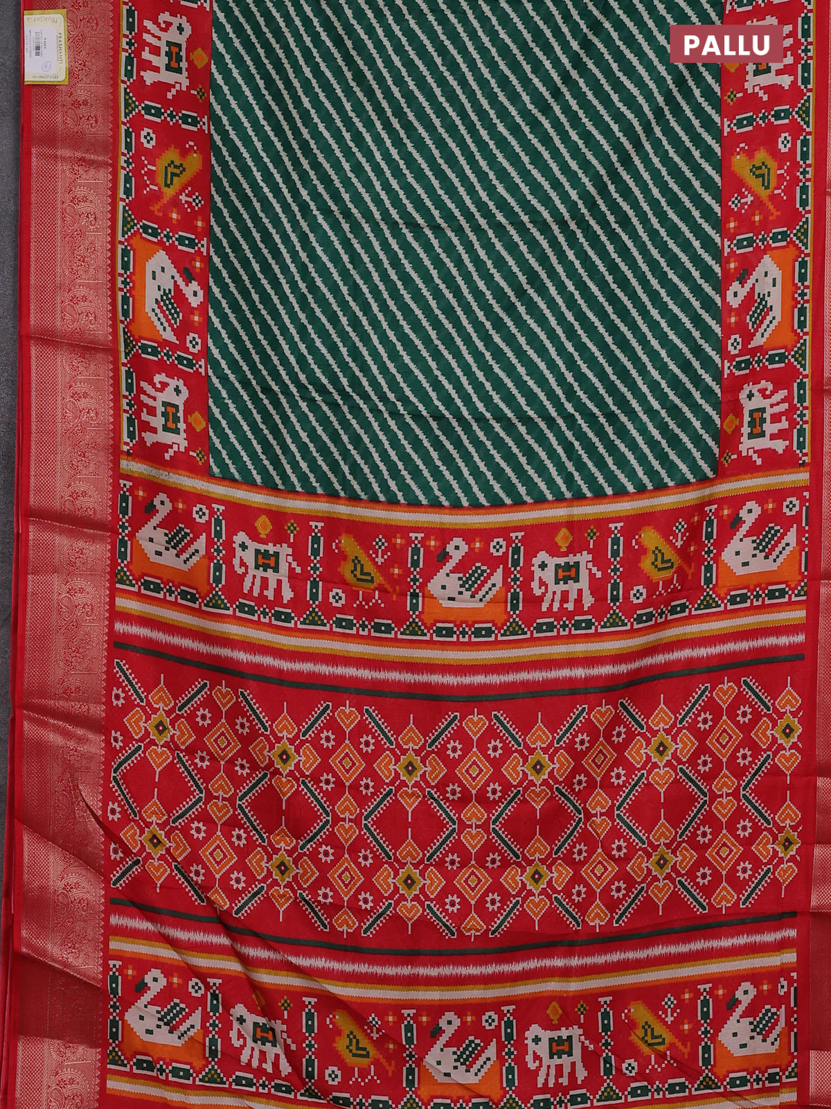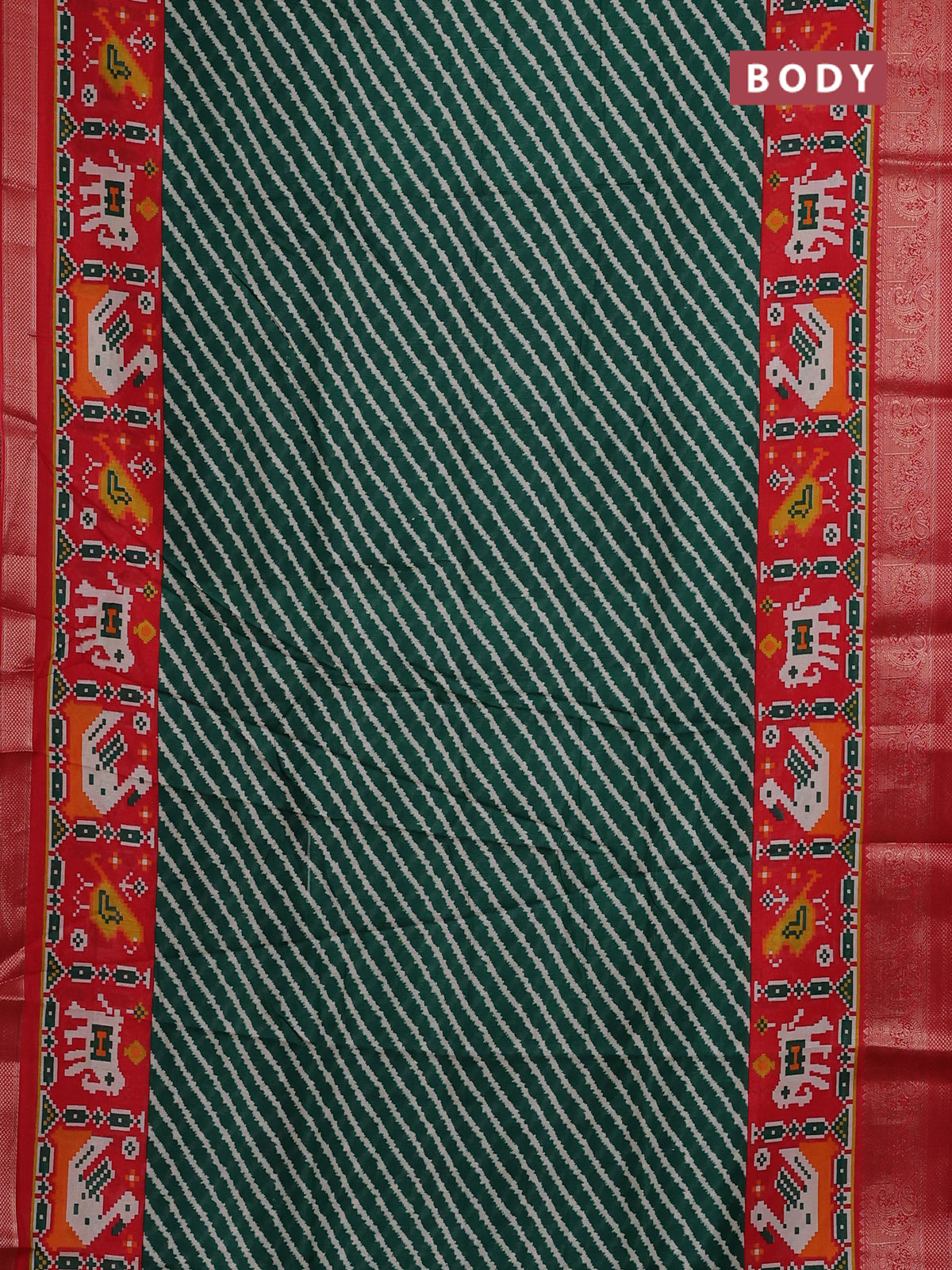 Semi dola saree green and red with allover leheriya prints and long ikat printed zari border